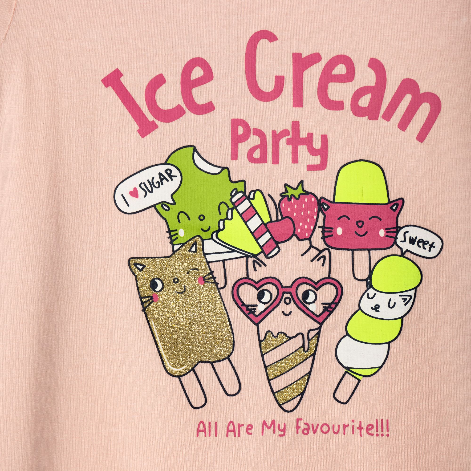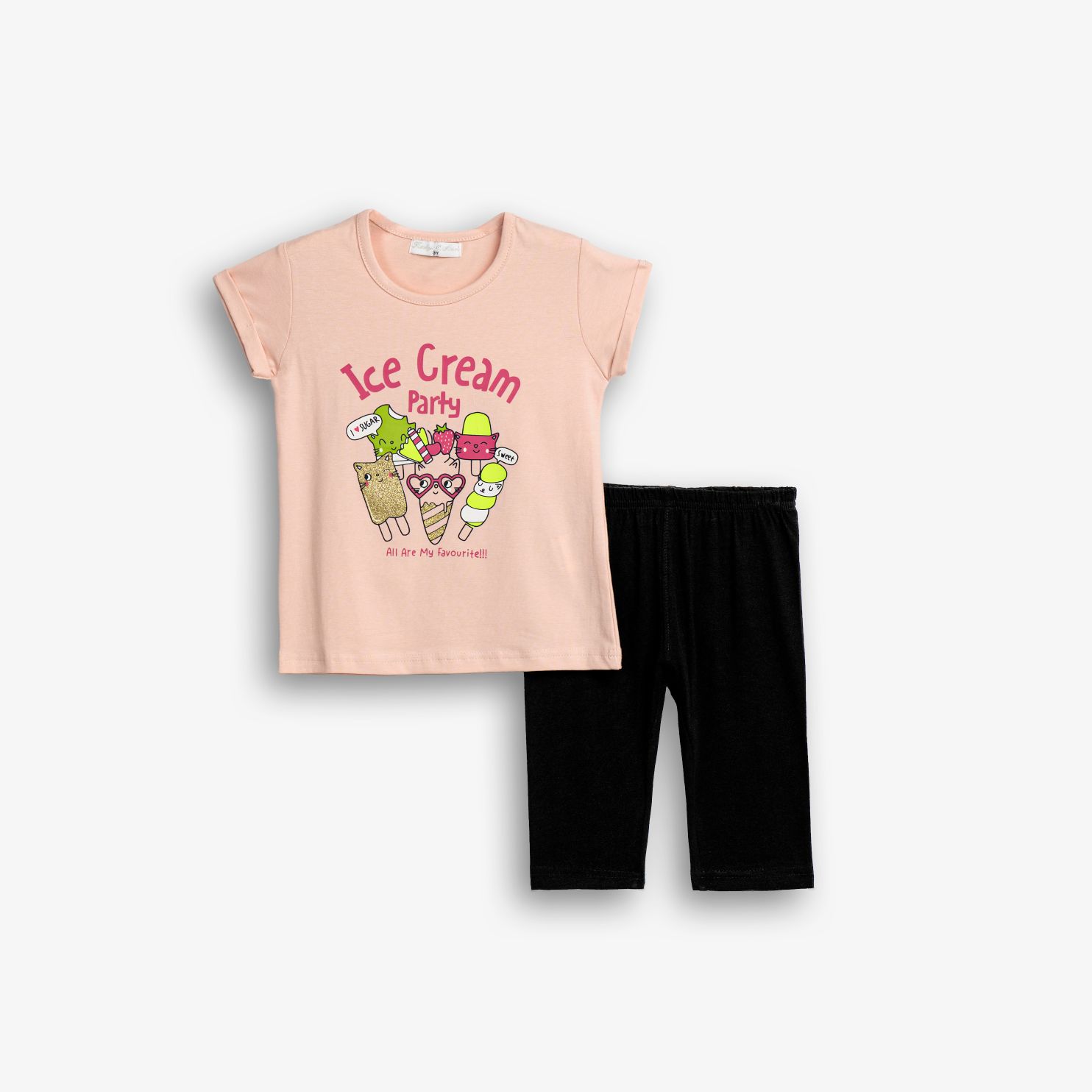 Μπλουζοφόρεμα με τύπωμα (ice cream party) και κολάν κάπρι κάλτσα λύκρα σε χρώμα ροζ πούδρας/μαύρο για κορίτσι 1-6 ετών