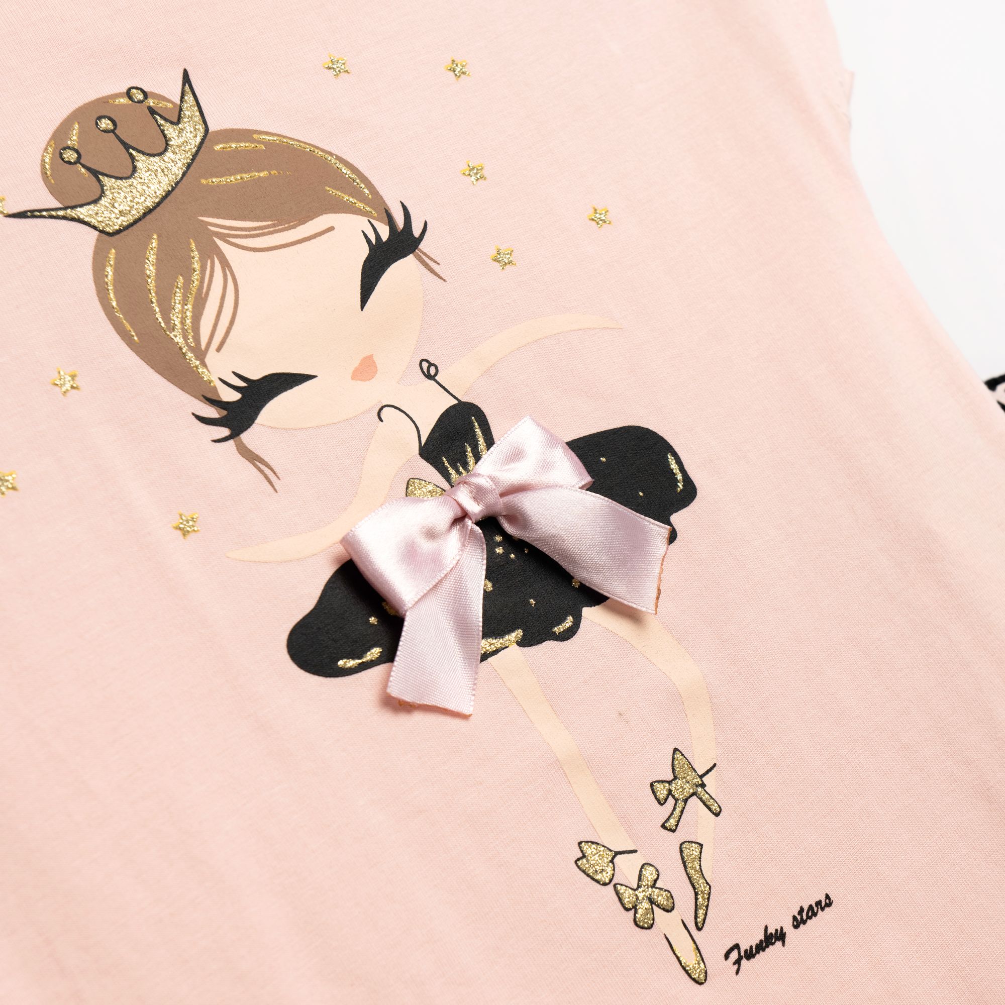 Μπλουζοφόρεμα με τύπωμα (μπαλαρίνα) και κολάν κάπρι κάλτσα λύκρα με τύπωμα allover σε χρώμα ροζ πούδρας/μαύρο για κορίτσι 1-6 ετών
