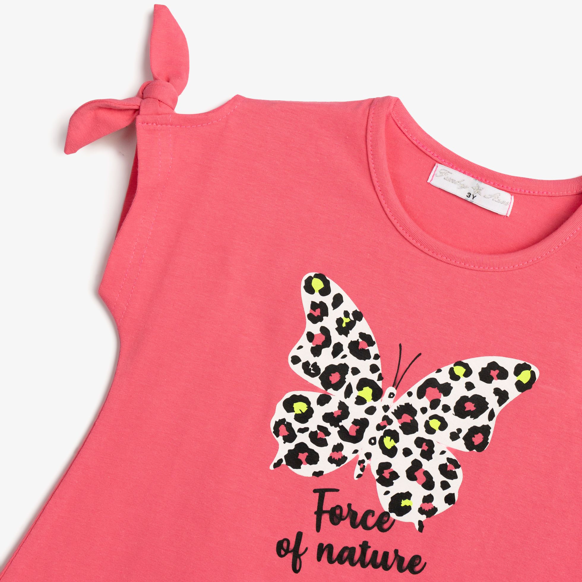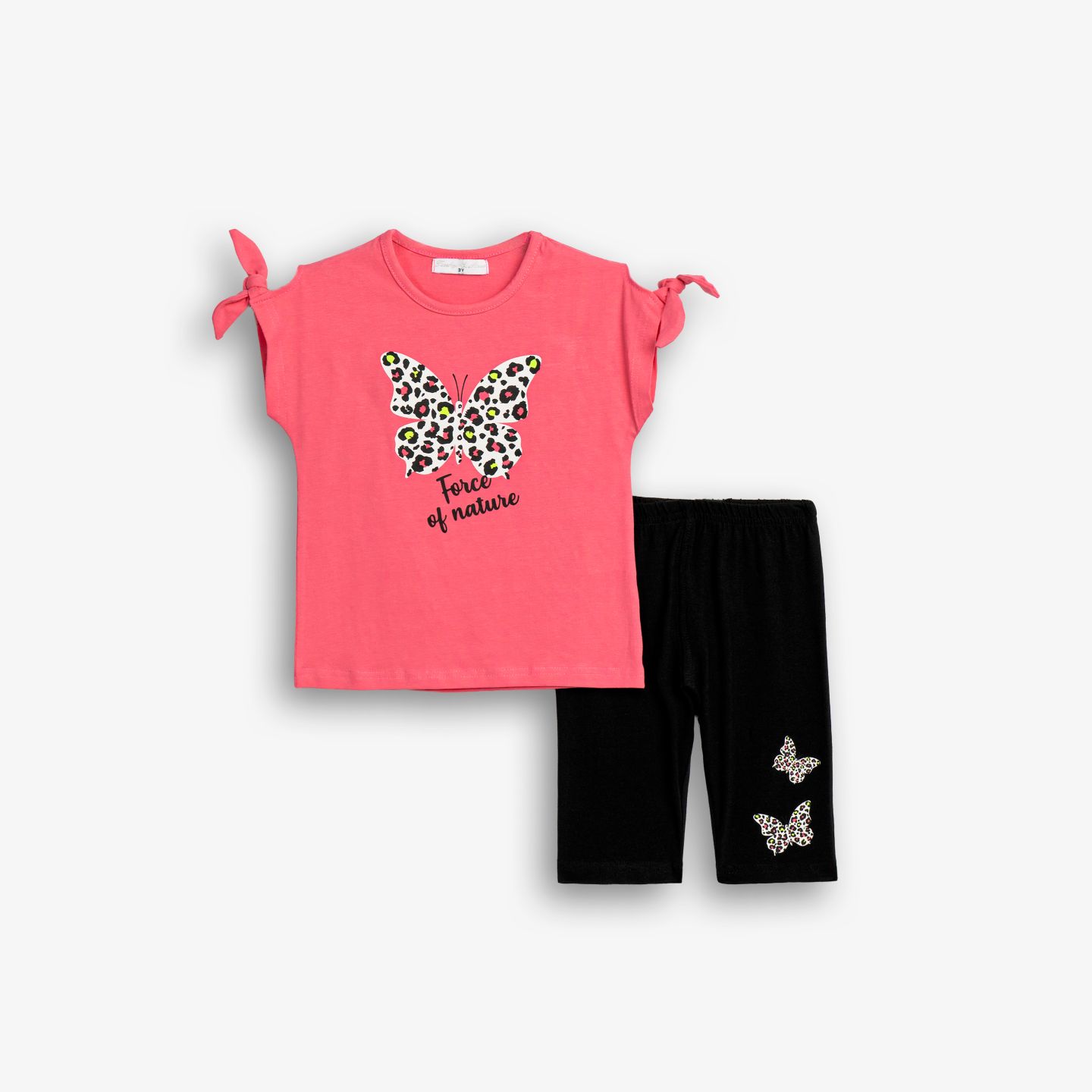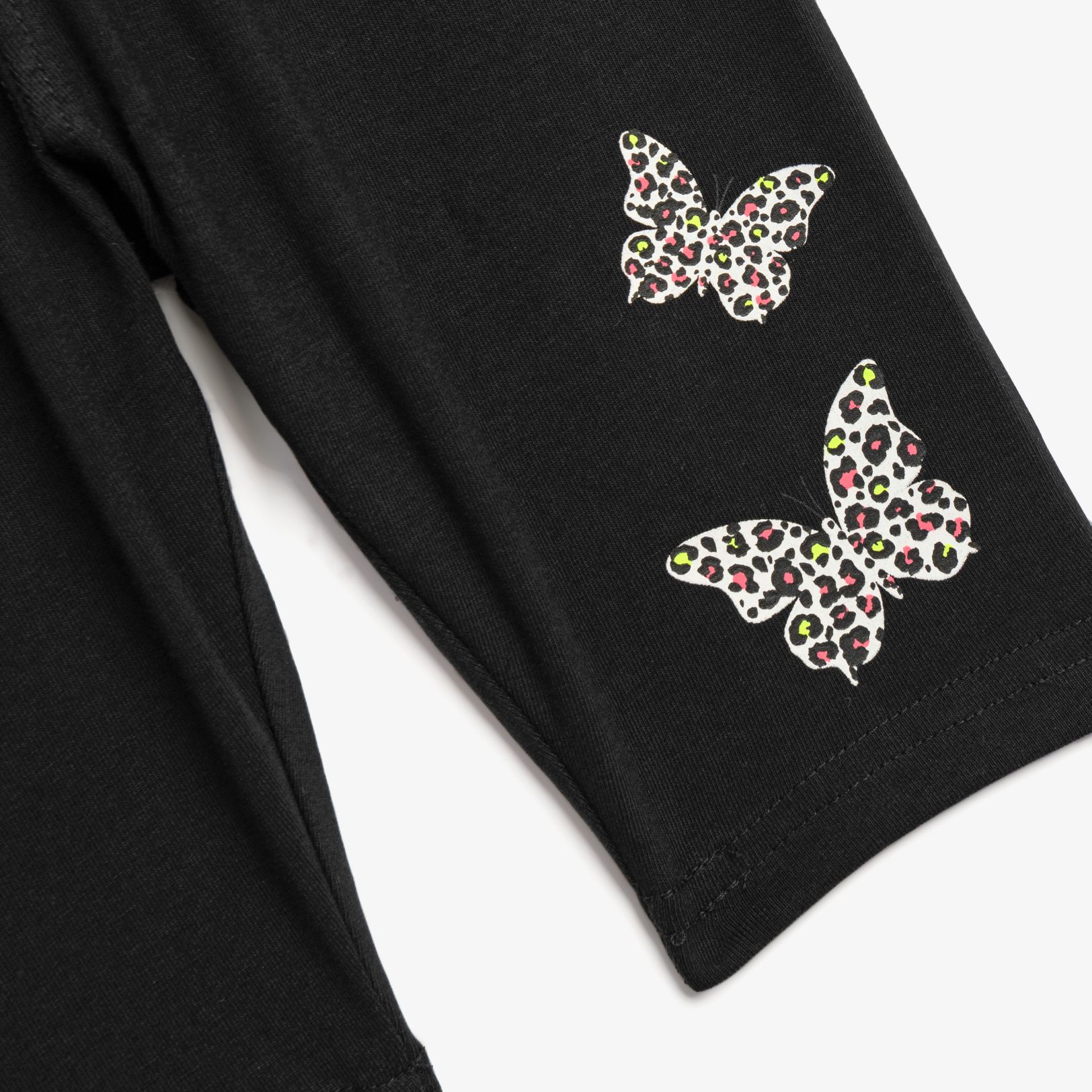 Μπλουζοφόρεμα με τύπωμα (πεταλούδα) και κολάν κάτω γόνατο κάλτσα λύκρα με τύπωμα σε χρώμα φλαμίνγκο/μαύρο για κορίτσι 1-6 ετών