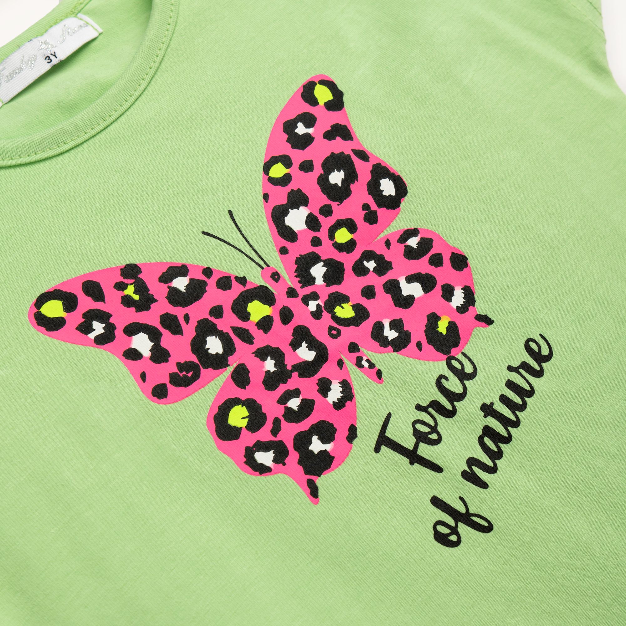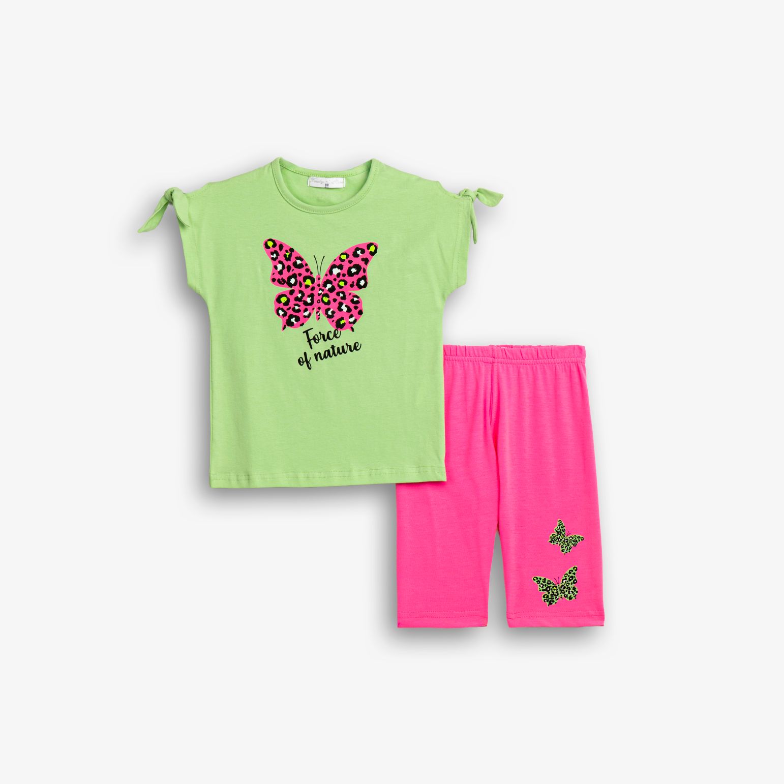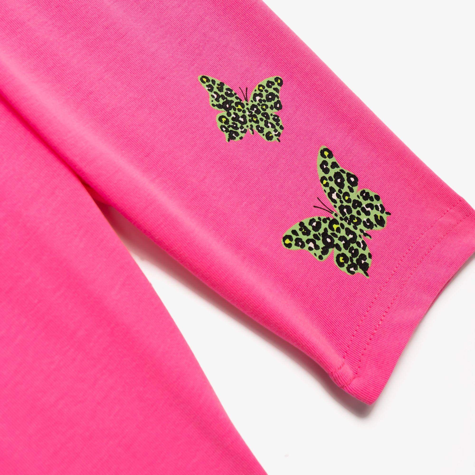 Μπλουζοφόρεμα με τύπωμα (πεταλούδα) και κολάν κάτω γόνατο κάλτσα λύκρα με τύπωμα σε χρώμα paradise green/φωσφορούχο ροζ για κορίτσι 1-6 ετών
