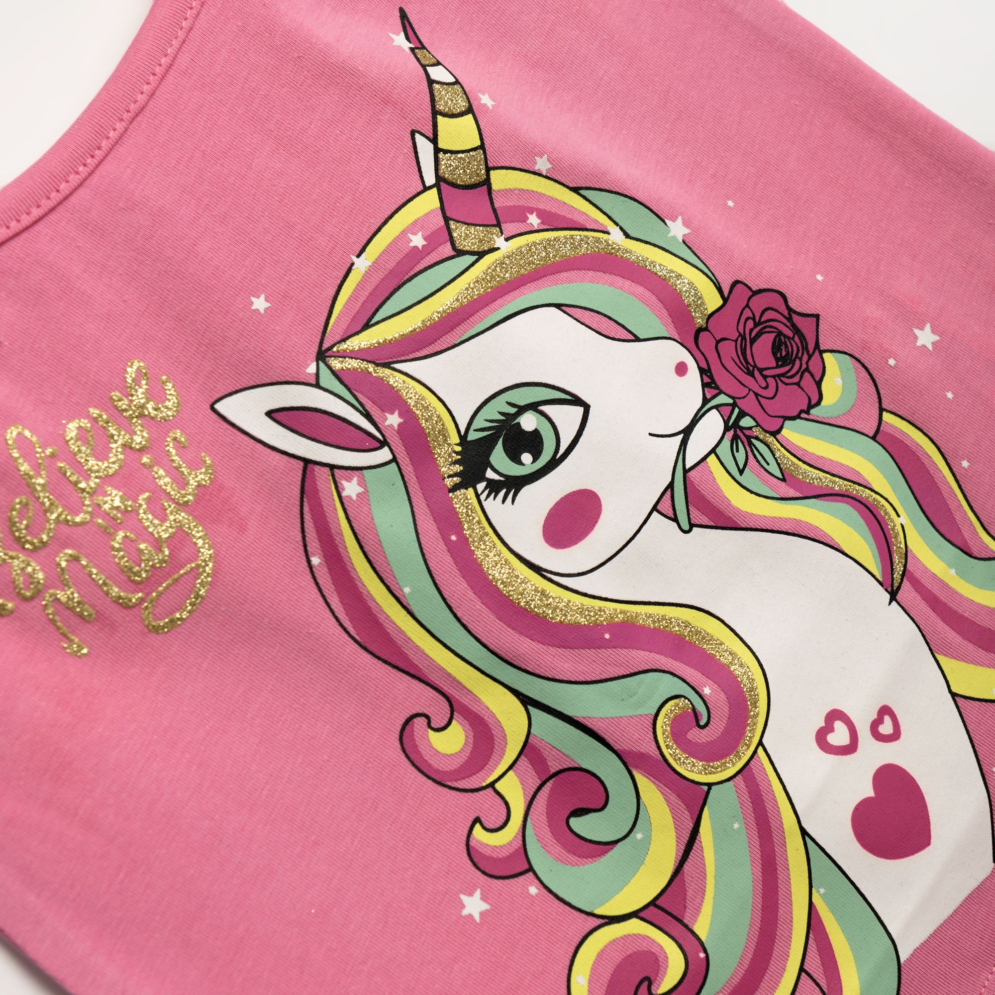 Σετ μπλούζα κάλτσα λύκρα με τύπωμα (μονόκερος) και σόρτς με τύπωμα σε χρώμα candy pink/φυστικί για κορίτσι 1-6 ετών