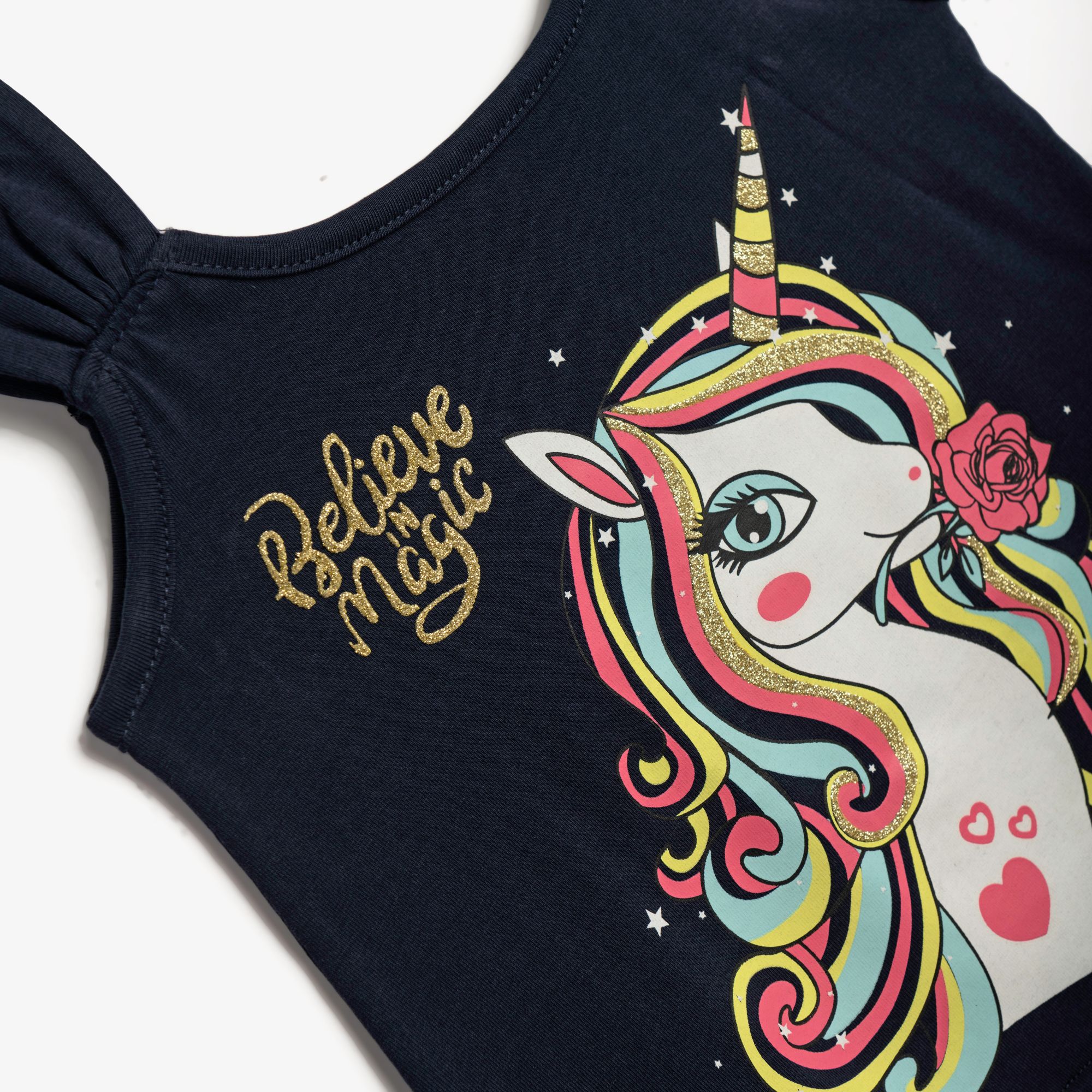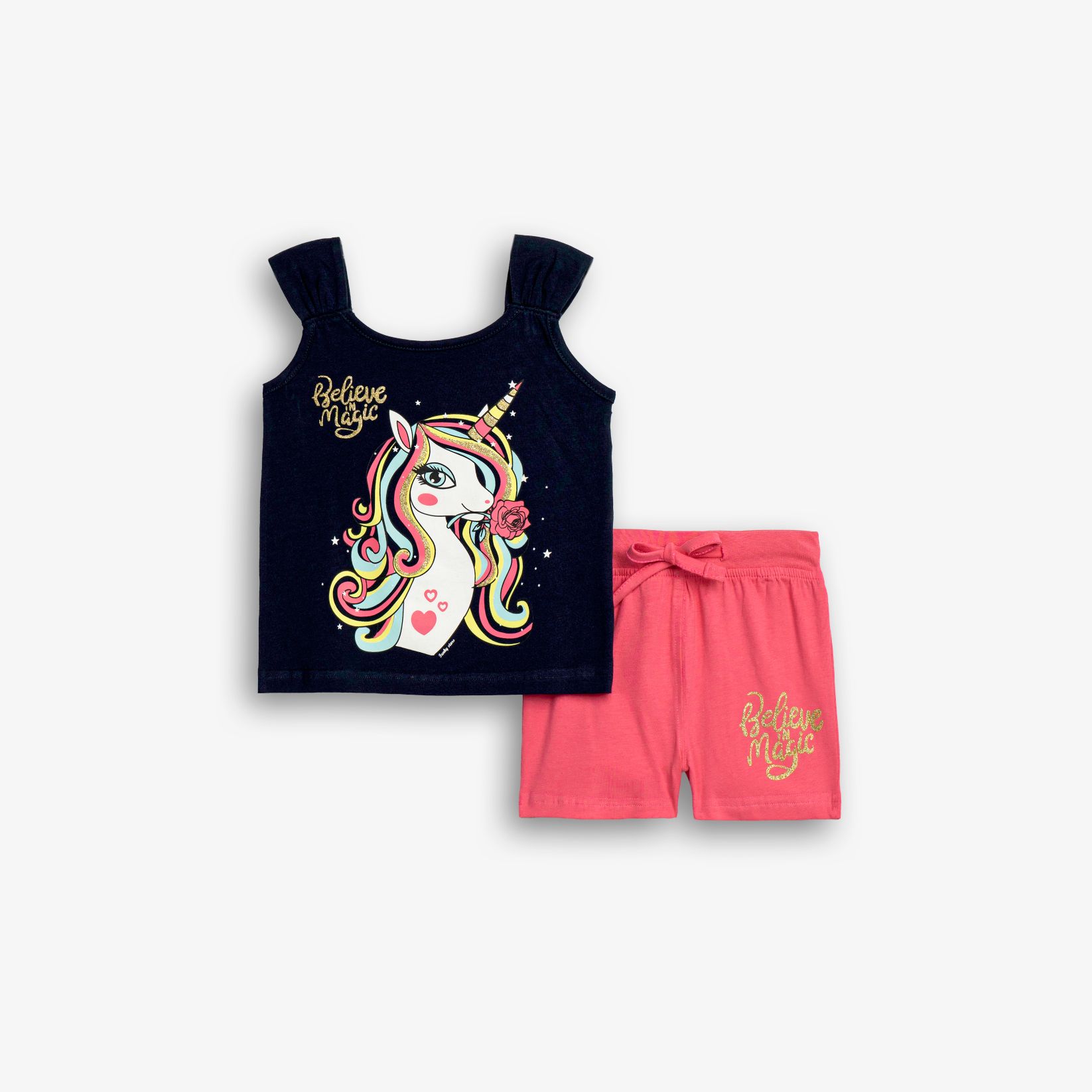 Σετ μπλούζα κάλτσα λύκρα με τύπωμα (μονόκερος) και σόρτς με τύπωμα σε χρώμα μπλέ/φλαμίνγκο για κορίτσι 1-6 ετών