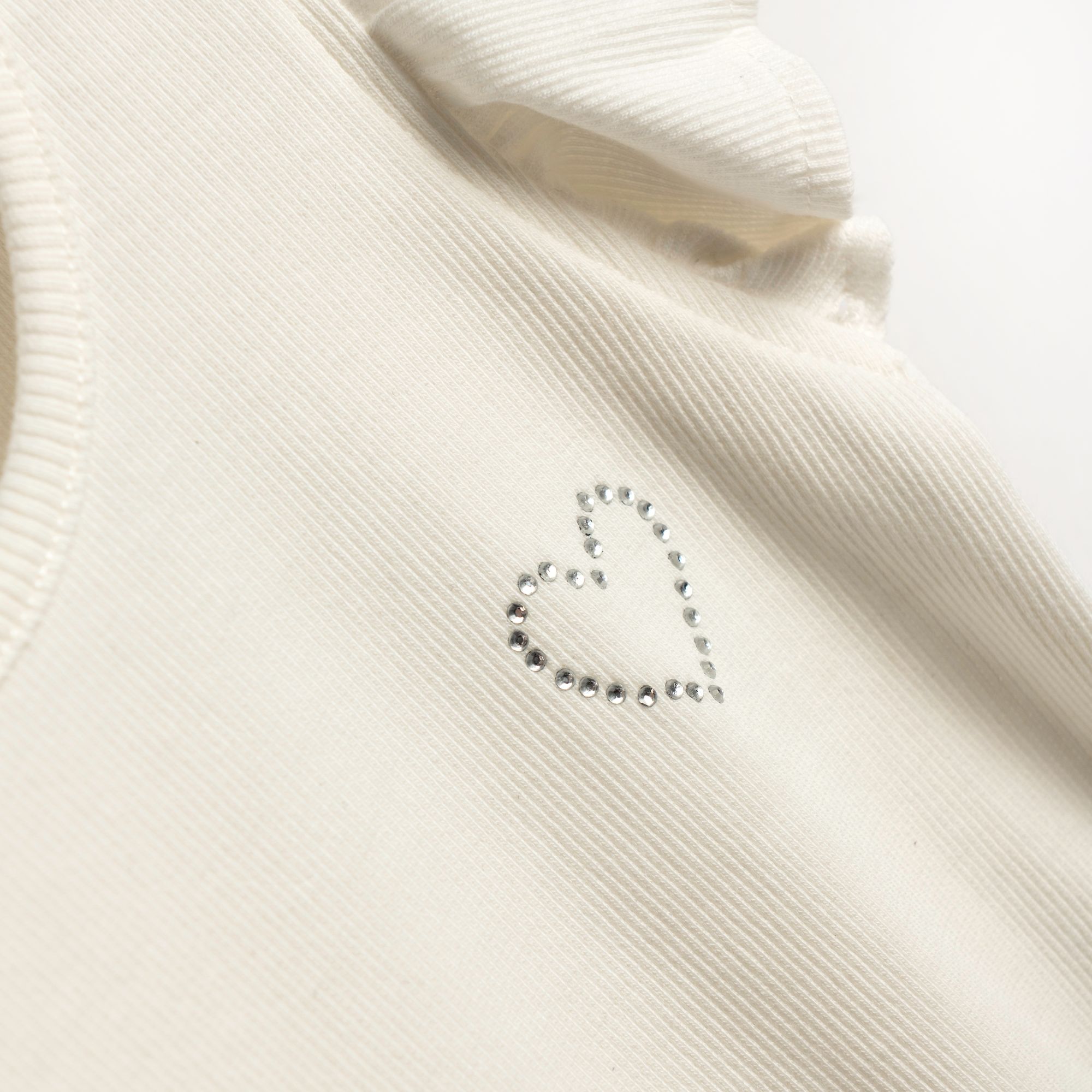 Σετ μπλούζα ριπ και σόρτς κάλτσα λύκρα με τύπωμα (καρδιες) allover σε χρώμα εκρού/ανθρακί για κορίτσι 1-6 ετών