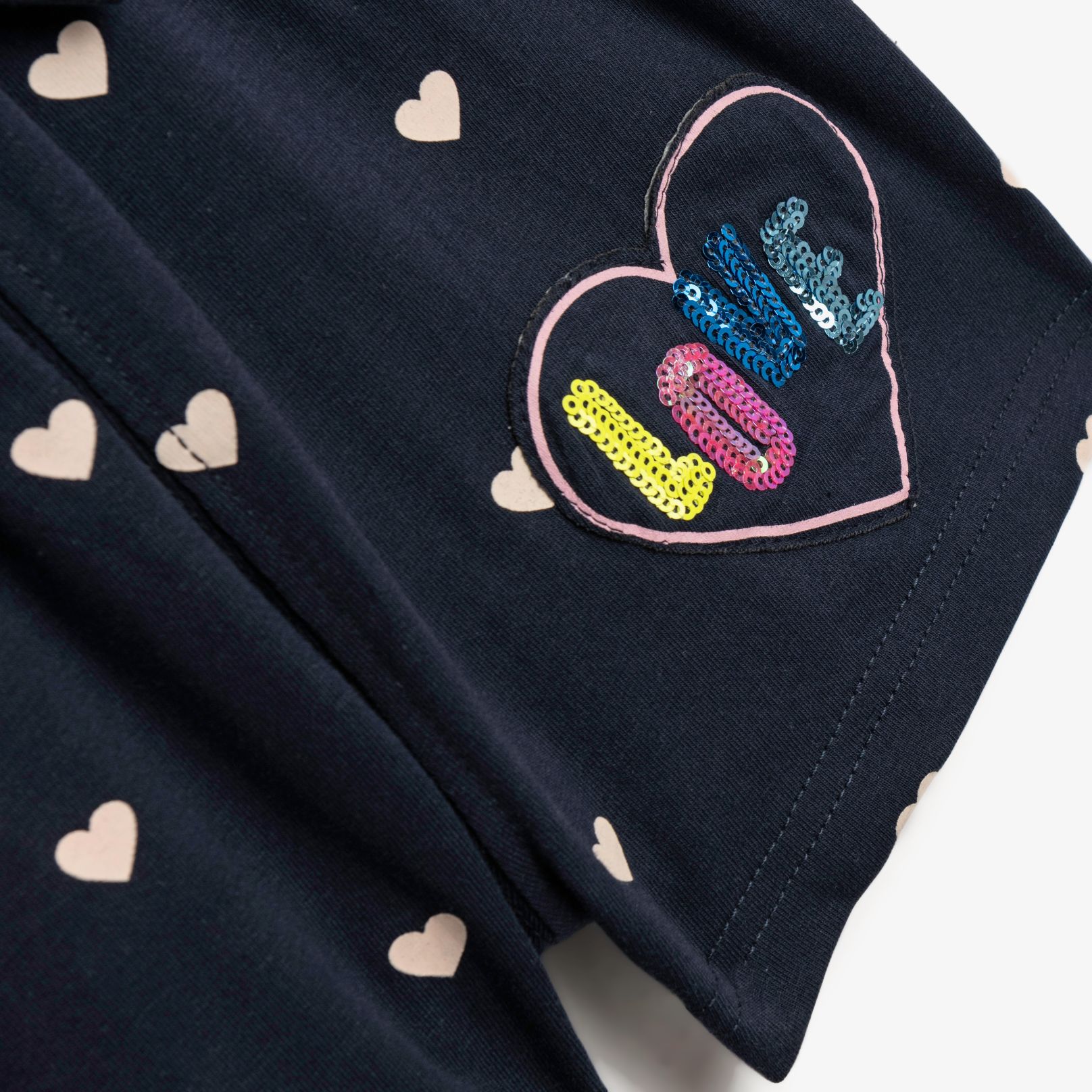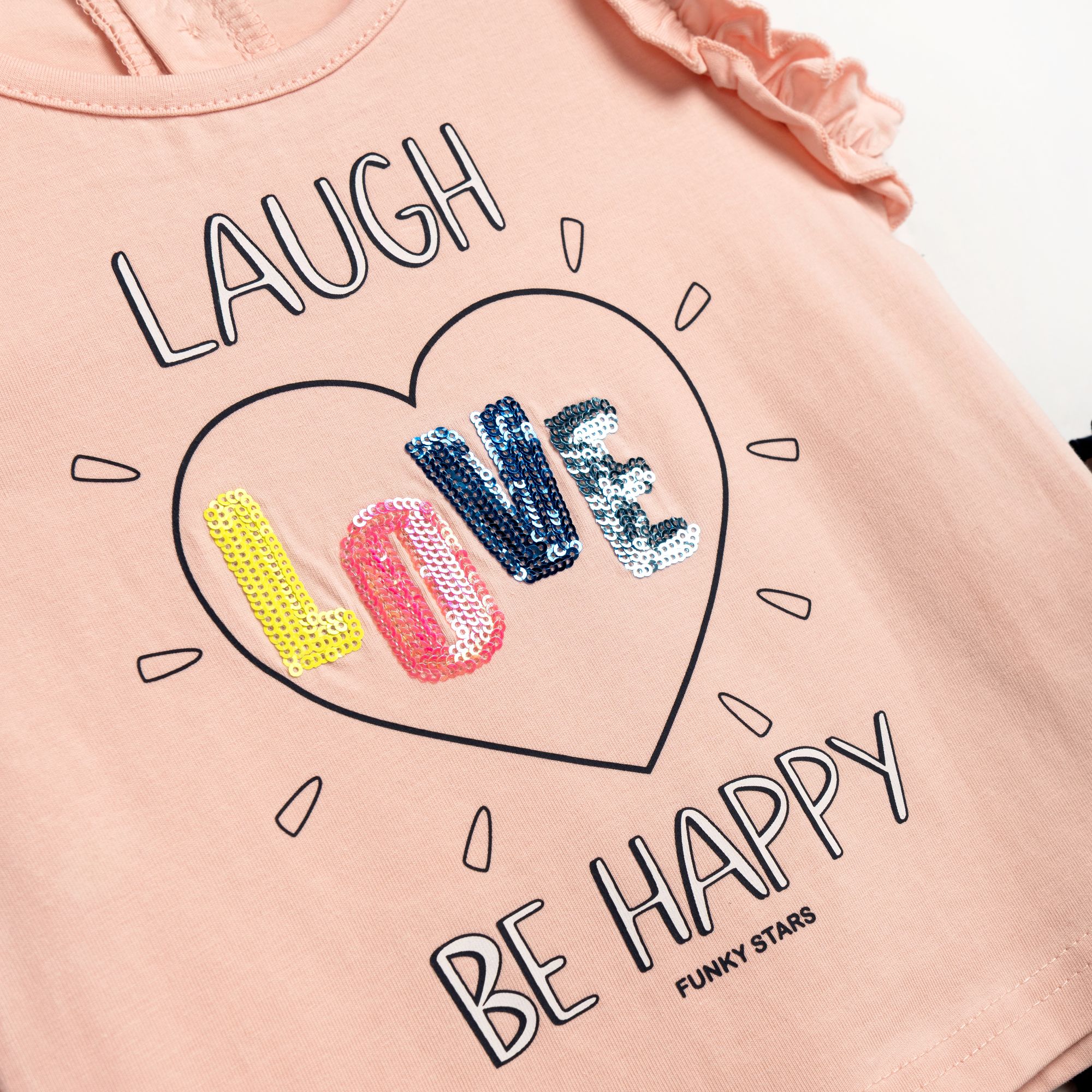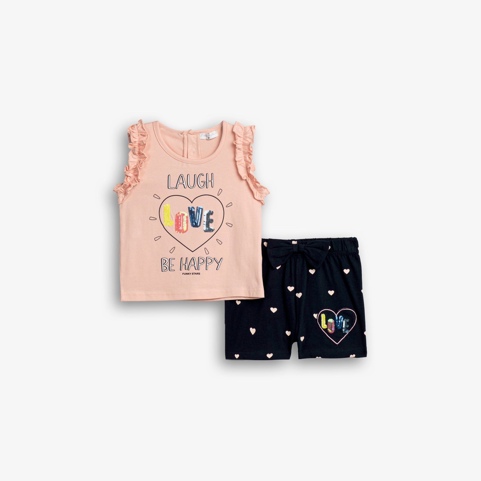 Σετ μπλούζα καλτσα λύκρα με τύπωμα (love) και σόρτς με τύπωμα allover σε χρώμα ροζ πούδρας/μπλέ για κορίτσι 1-6 ετών