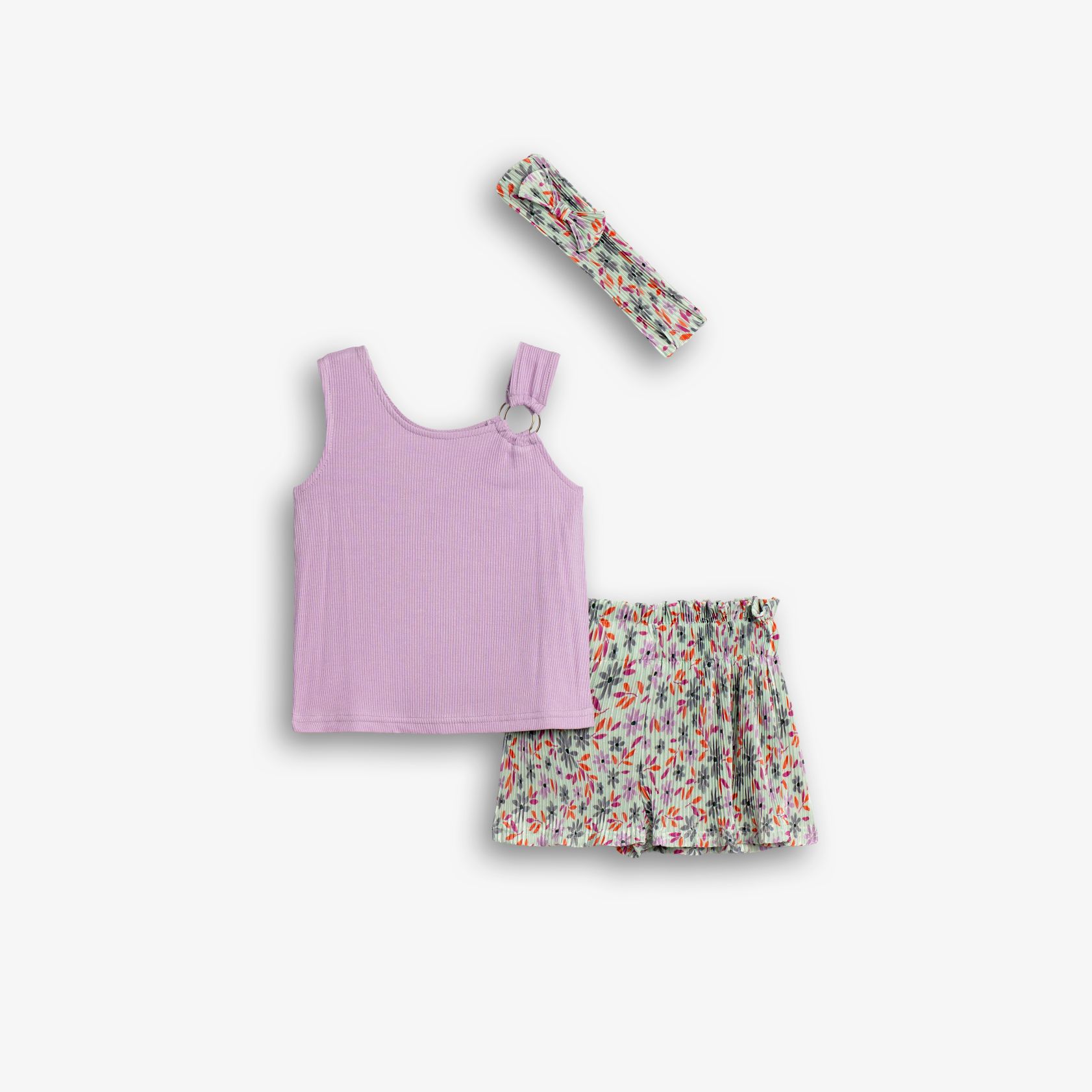 Σετ μπλούζα με σόρτς και κορδέλα και τσάντα σε χρώμα λιλά/τύπος για κορίτσι 1-6 ετών