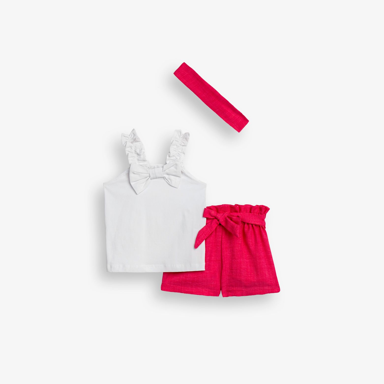 Σετ μπλούζα με σόρτς και κορδέλα σε χρώμα λευκό/τύπος για κορίτσι 1-6 ετών