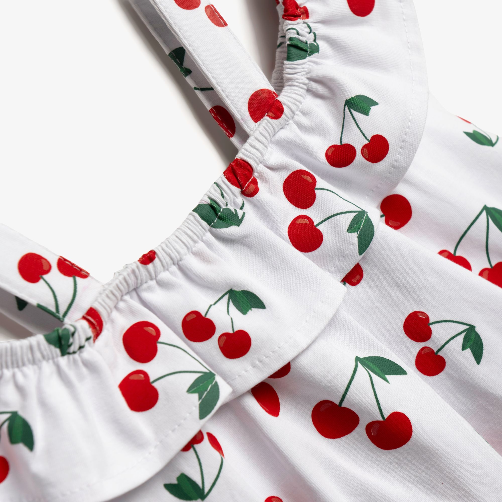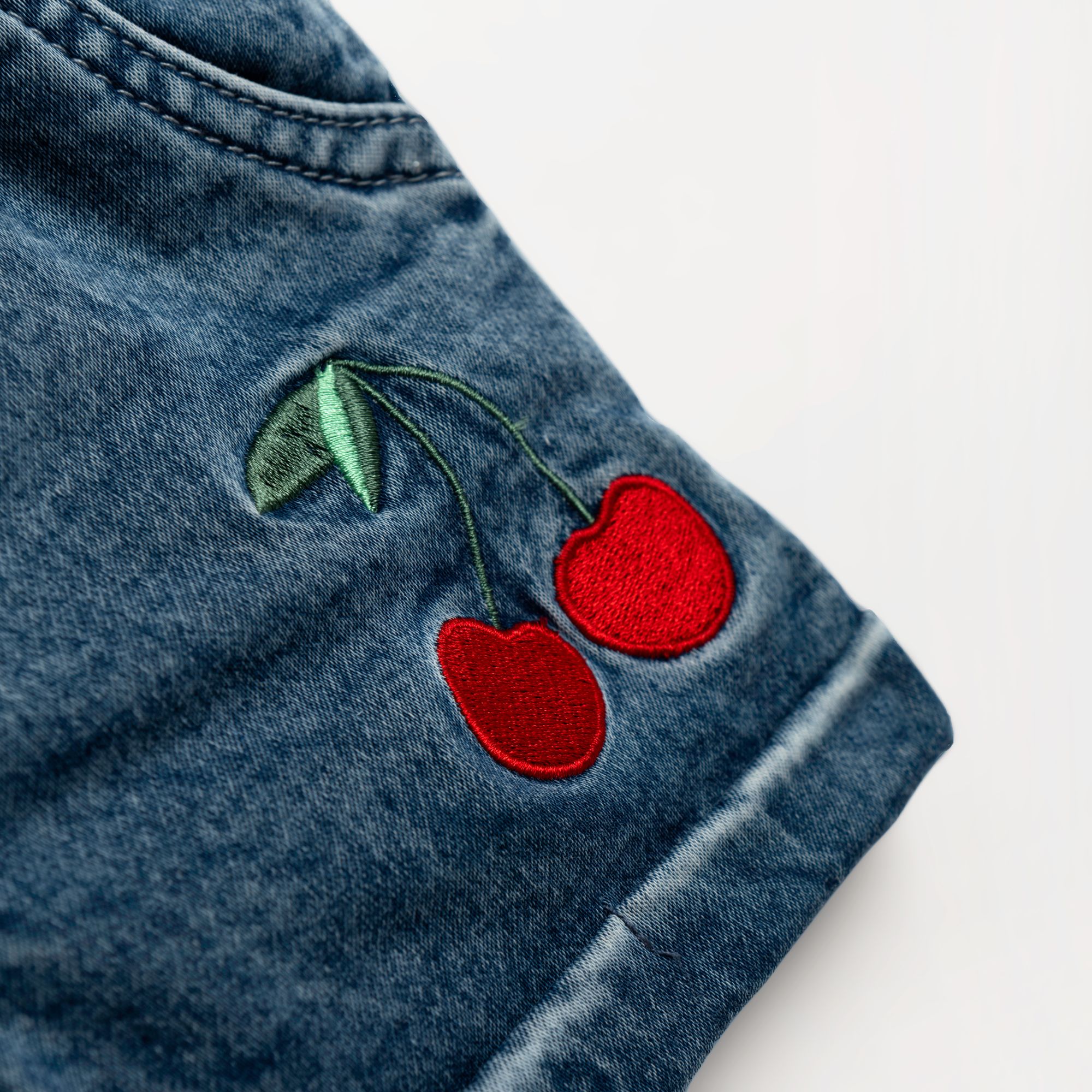 Σετ μπλούζα κάλτσα λύκρα με τύπωμα (κεράσια) allover και σόρτς τζίν λύκρα σε χρώμα λευκό/μπλέ τζίν για κορίτσι 1-6 ετών