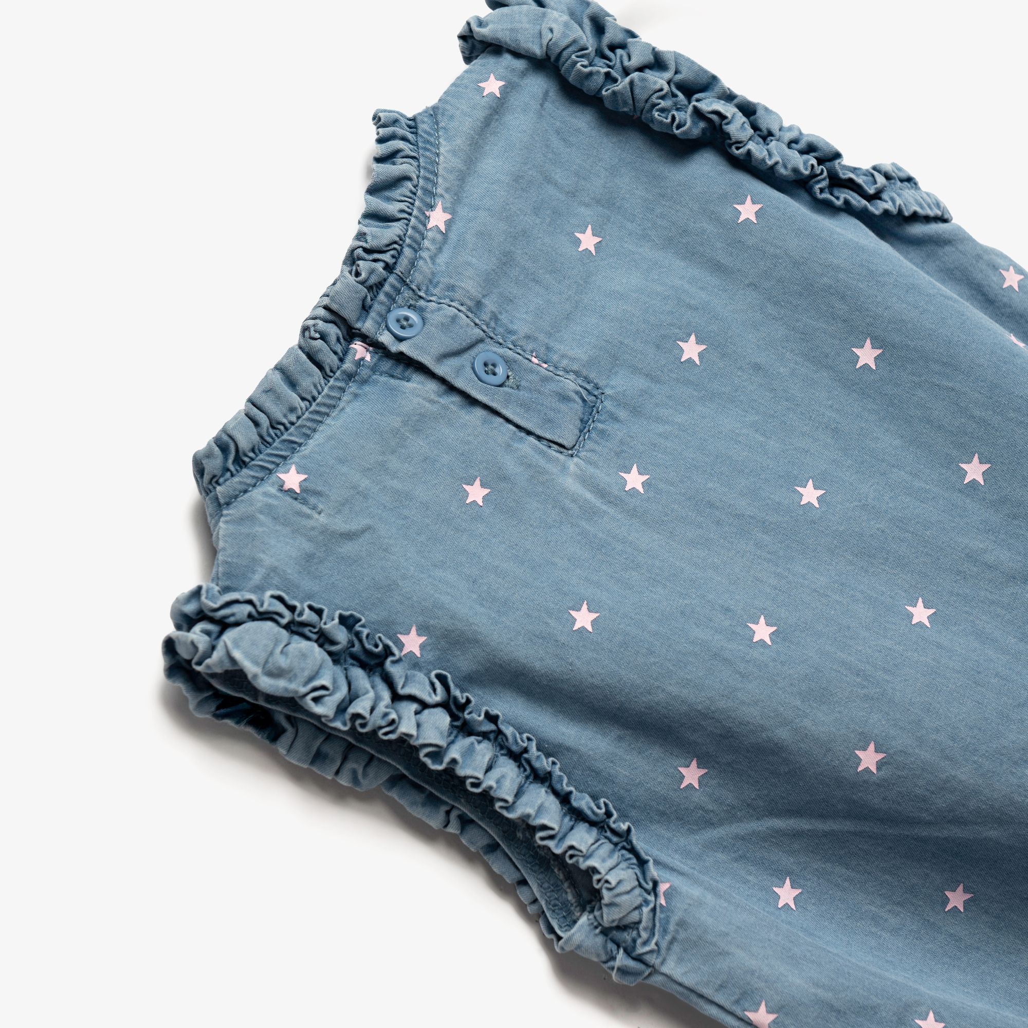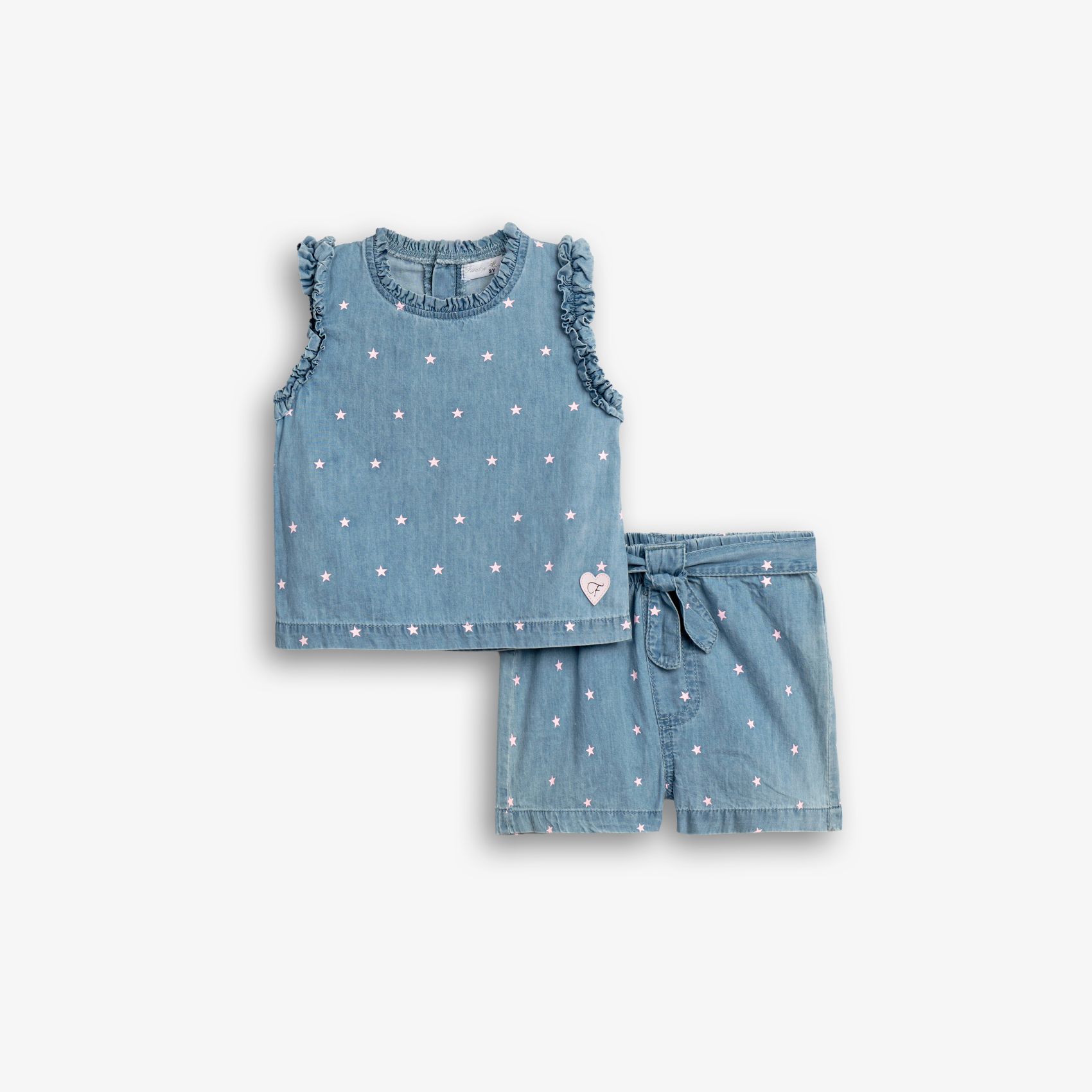Σετ μπλούζα λεπτό μαλακό με τύπωμα (αστεράκια) allover και σόρτς λεπτό μαλακό με τύπωμα allover σε χρώμα τζίν/τζίν για κορίτσι 1-6 ετών
