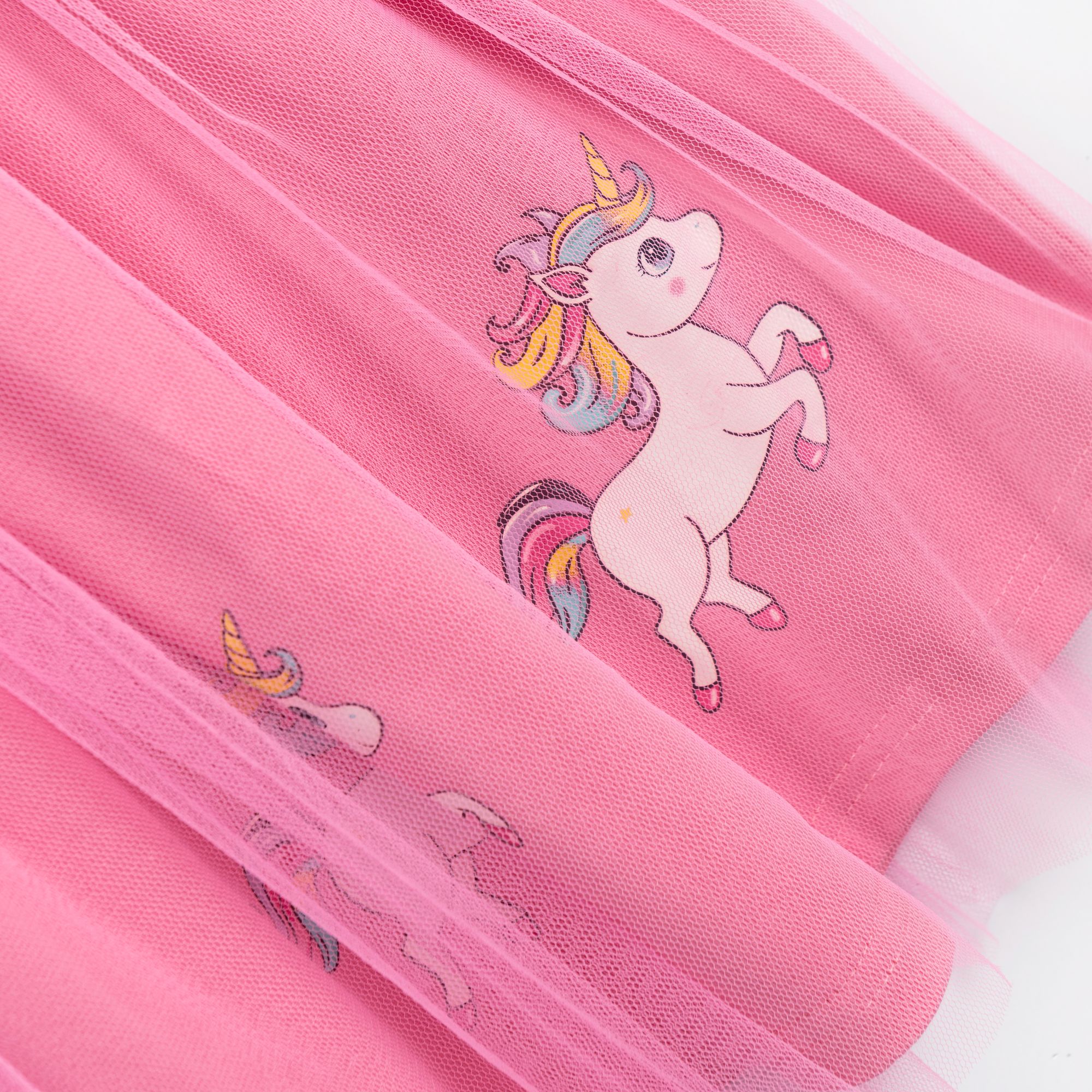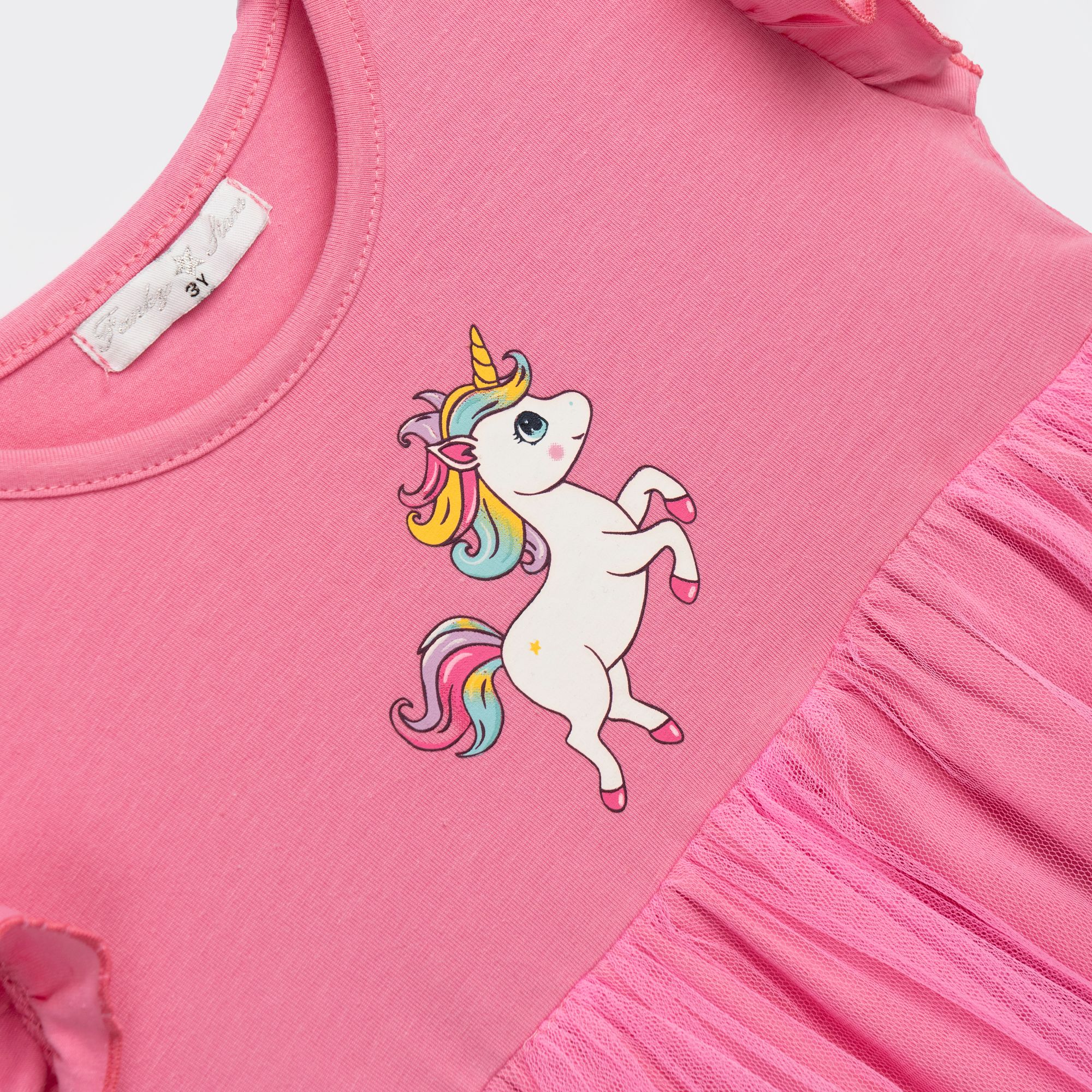 Φόρεμα κάλτσα λύκρα με τύπωμα (μονόκερο) και τούλι σε χρώμα candy pink για κορίτσι 1-6 ετών