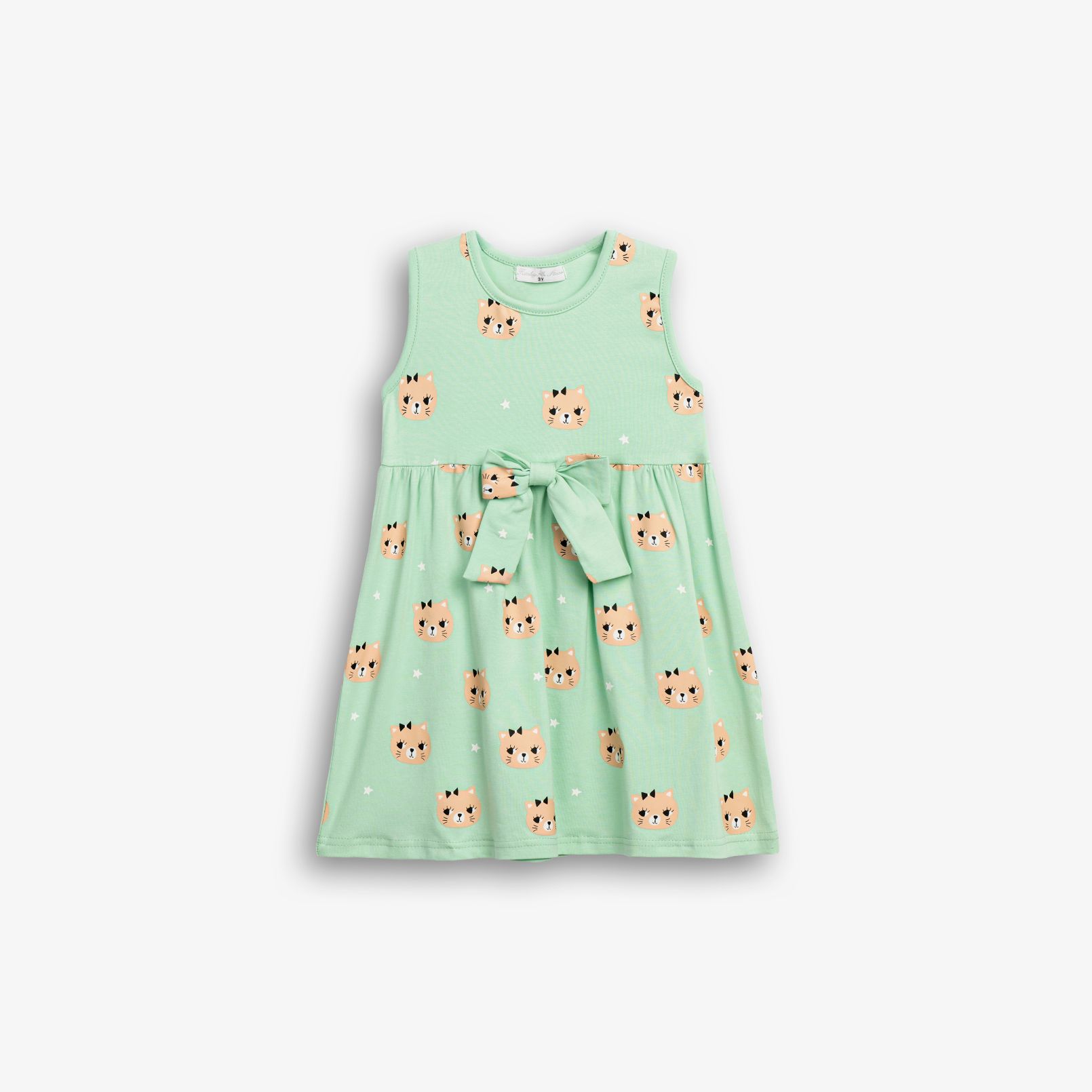 Φόρεμα κάλτσα λύκρα με τύπωμα (γάτες) allover σε χρώμα μέντα για κορίτσι 1-6 ετών