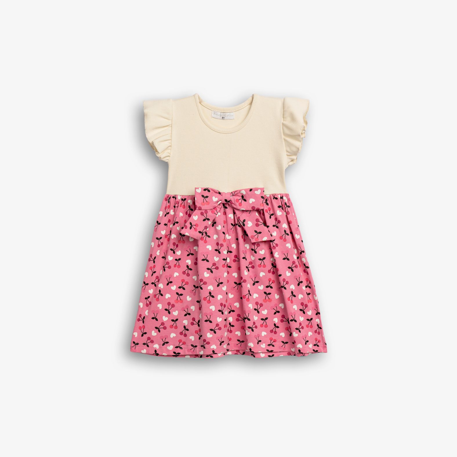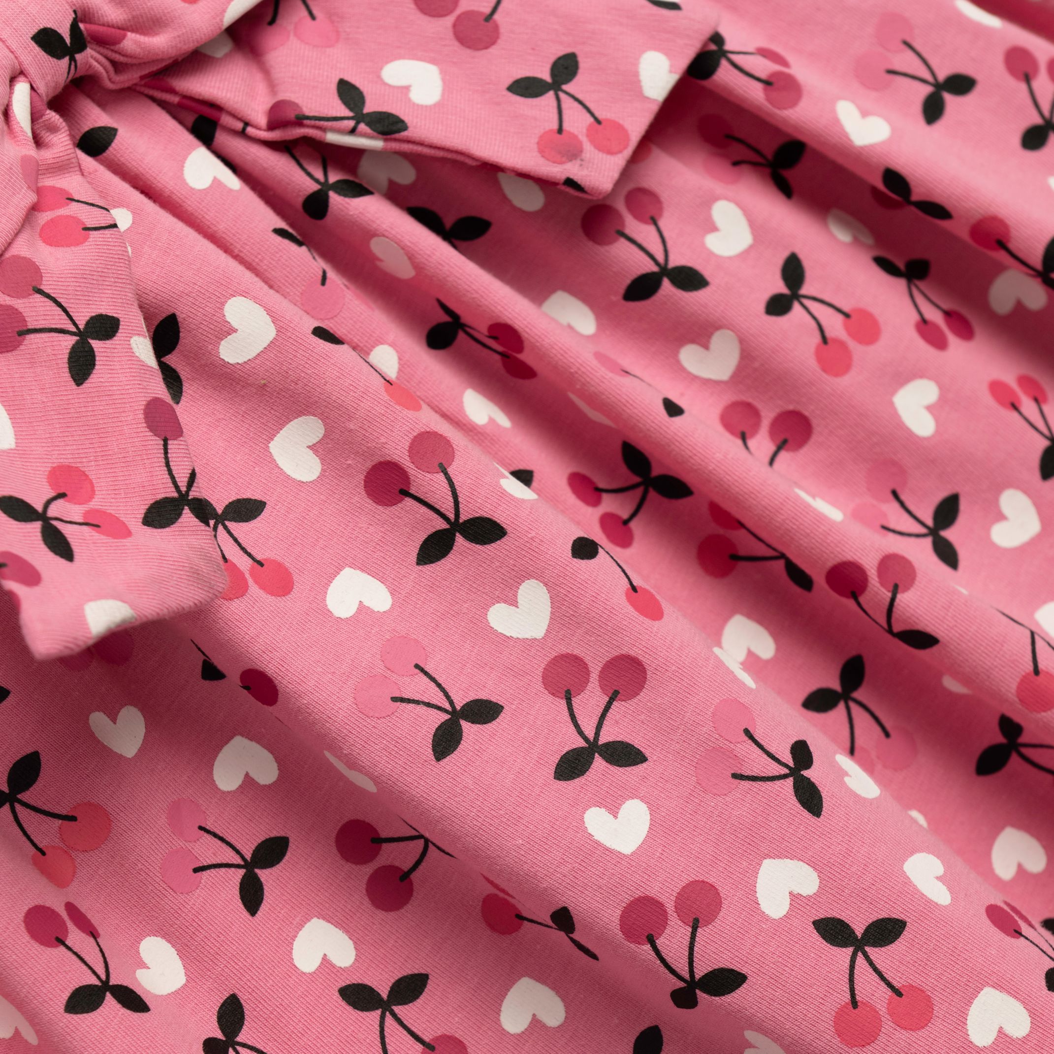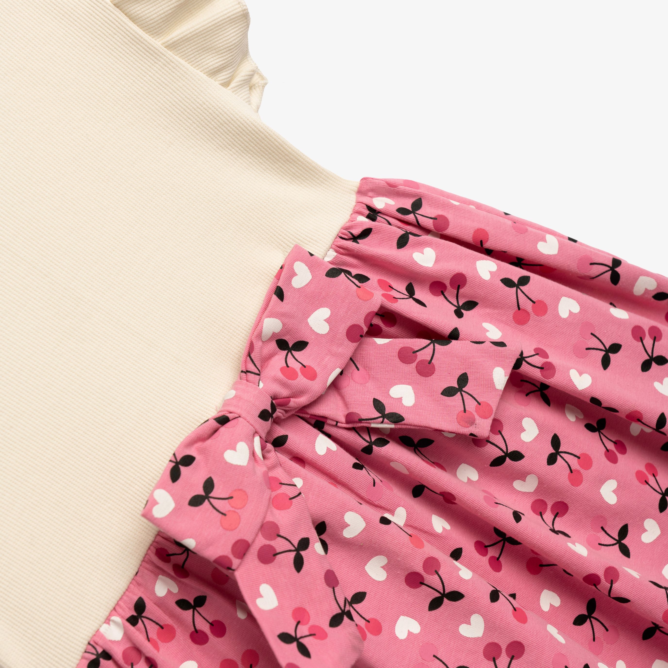 Φόρεμα κάλτσα λύκρα και ριπ με τύπωμα (κεράσια) allover σε χρώμα εκρού-candy pink για κορίτσι 1-6 ετών