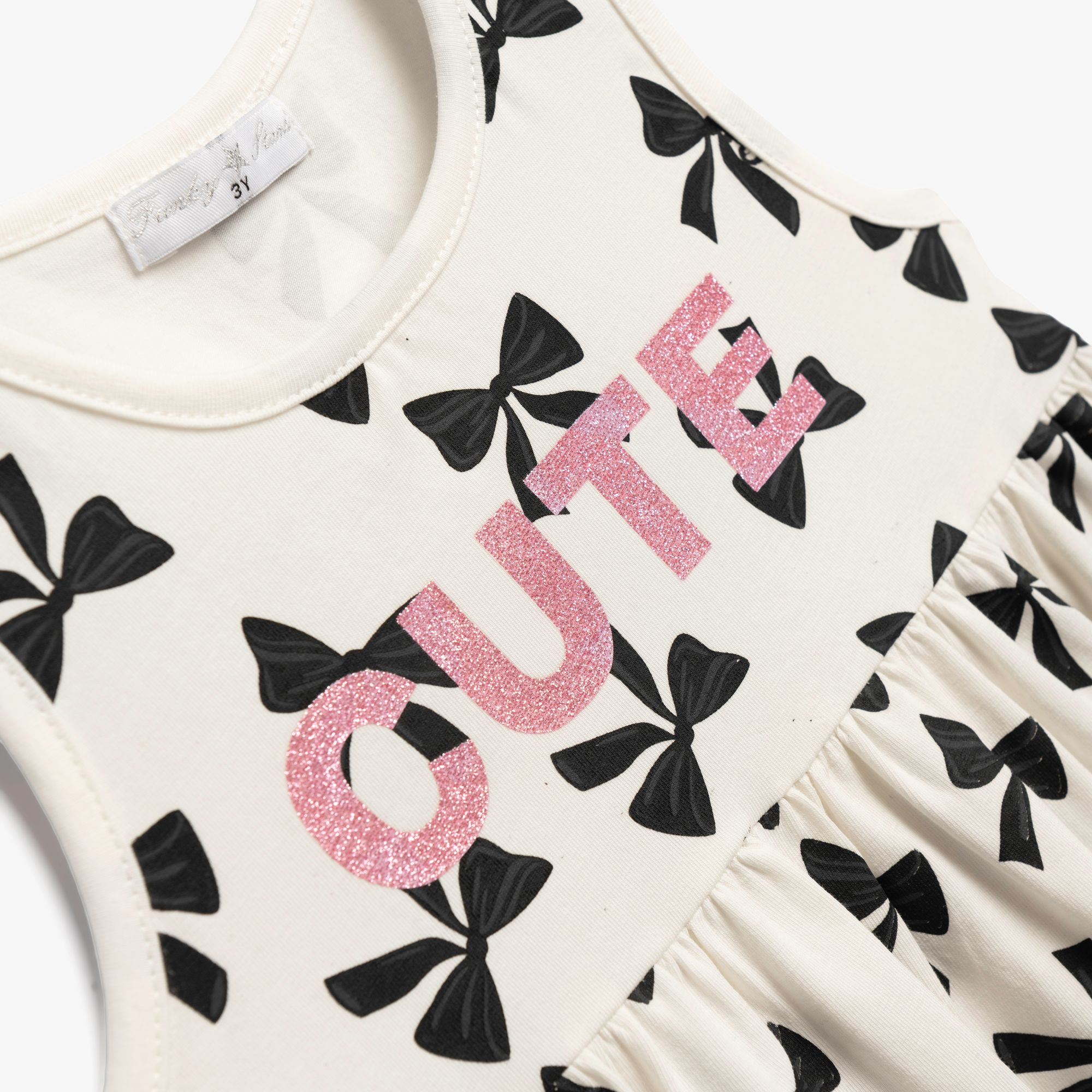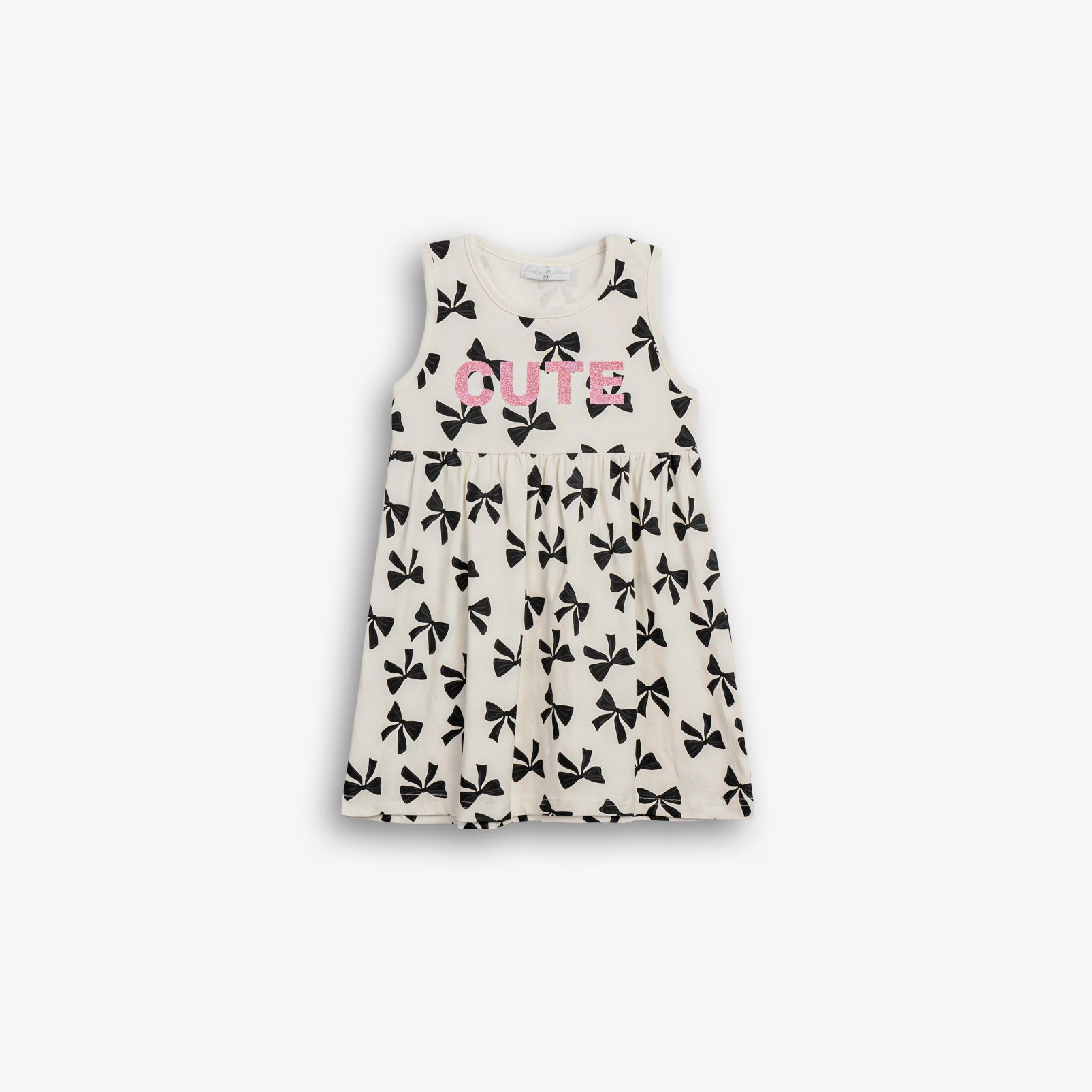 Φόρεμα κάλτσα λύκρα με τύπωμα (κορδέλες) allover σε χρώμα εκρού για κορίτσι 1-6 ετών