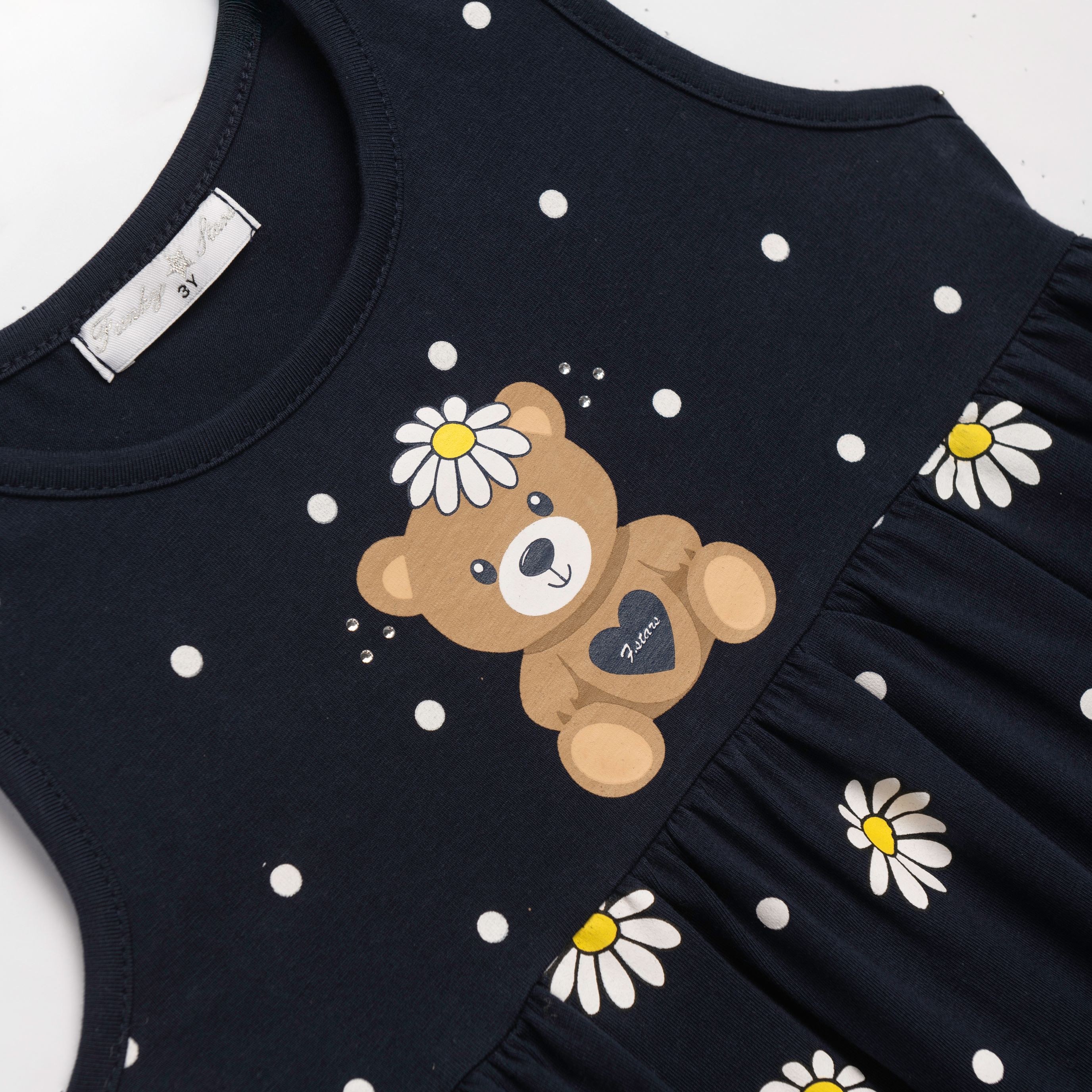 Φόρεμα κάλτσα λύκρα με τύπωμα (χαμομήλι) allover σε χρώμα μπλέ για κορίτσι 1-6 ετών