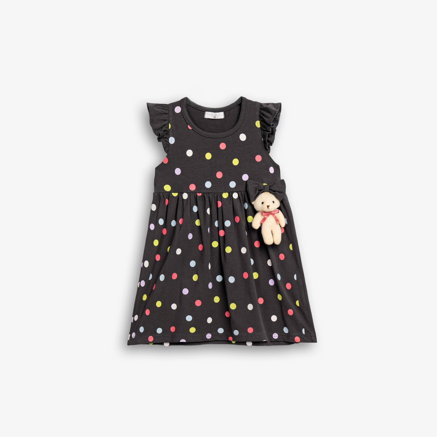 Φόρεμα κάλτσα λύκρα με τύπωμα (πουά) allover σε χρώμα ανθρακί για κορίτσι 1-6 ετών