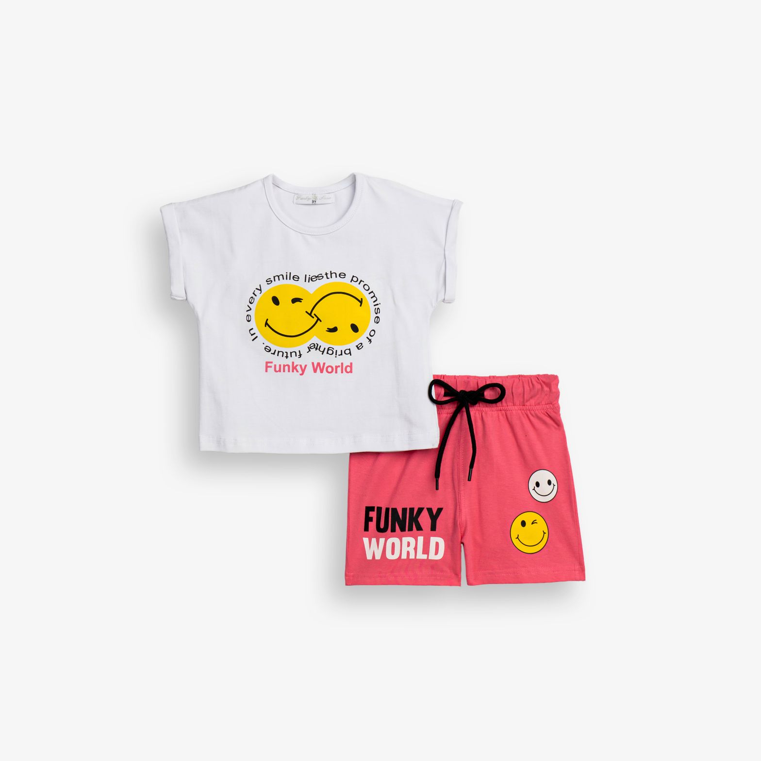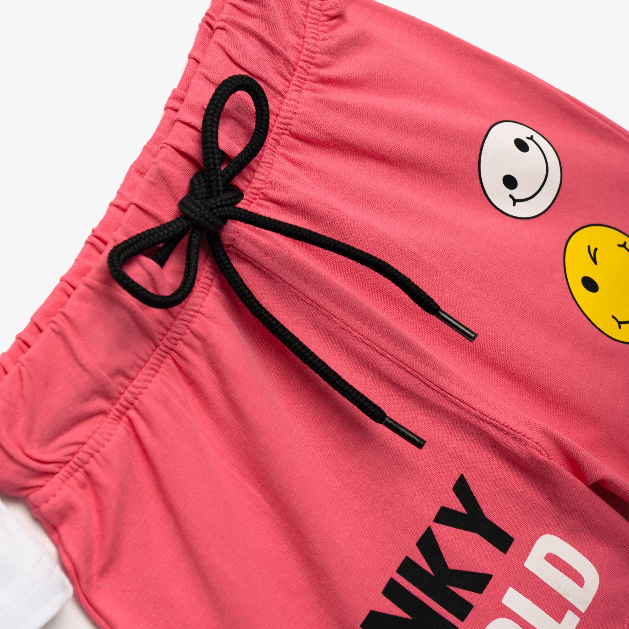 Σετ μπλούζα κάλτσα λύκρα με τύπωμα (φάτσες) και βερμούδα με τύπωμα σε χρώμα λευκό/φλαμίνγκο για κορίτσι 1-6 ετών