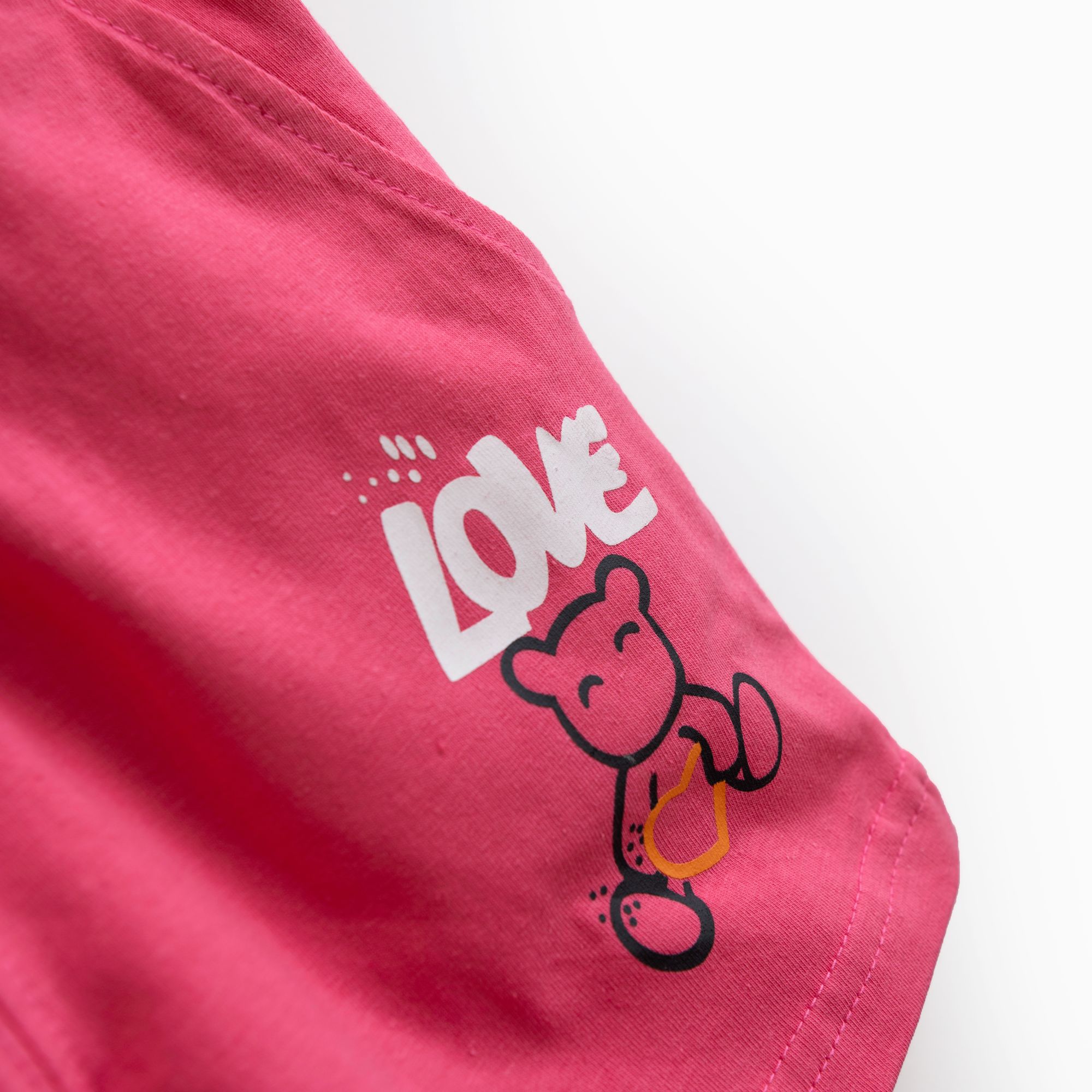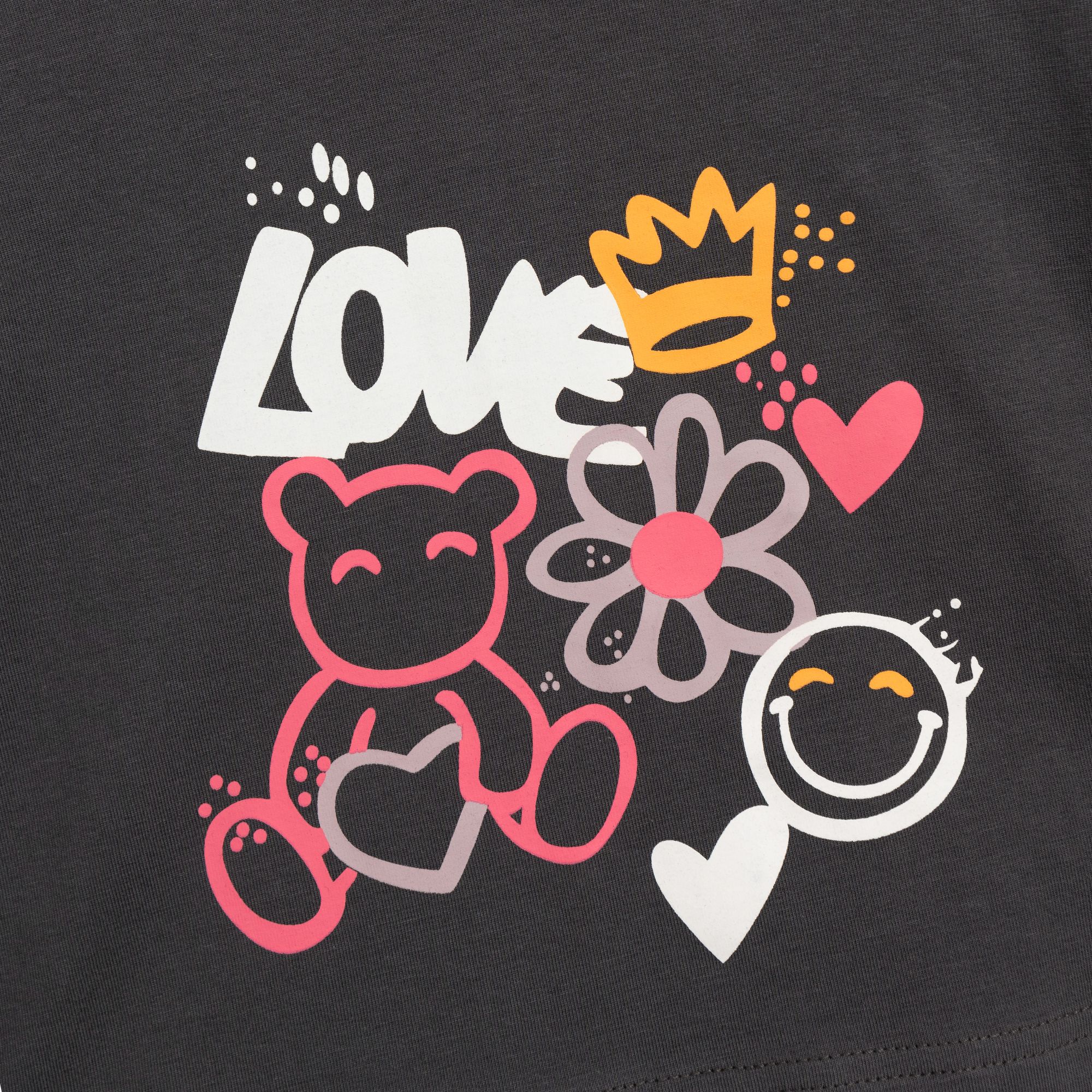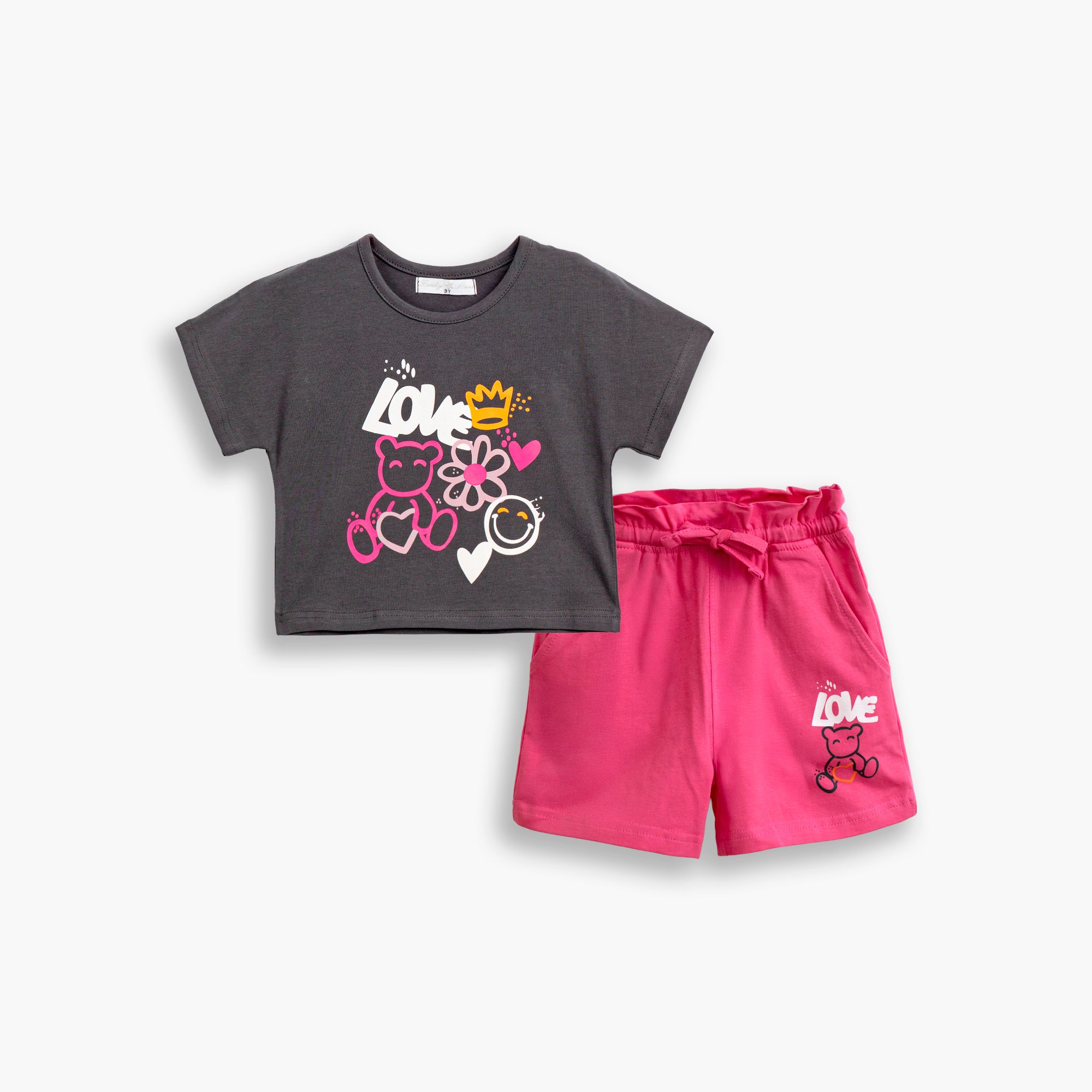 Σετ μπλούζα κάλτσα λύκρα με τύπωμα (διάφορα σχέδια) και βερμούδα με τύπωμα σε χρώμα ανθρακί/φλαμίνγκο ροζ για κορίτσι 1-6 ετών