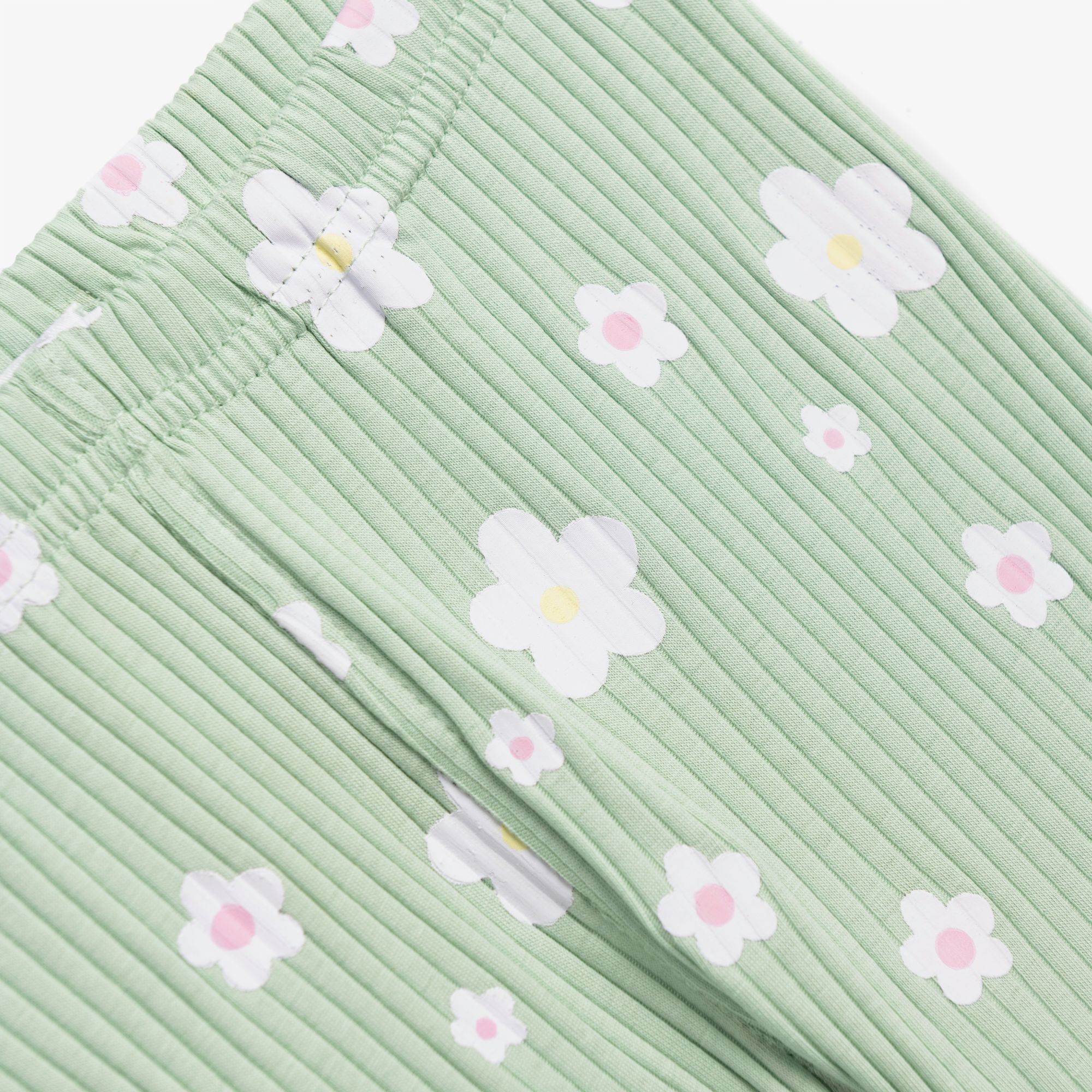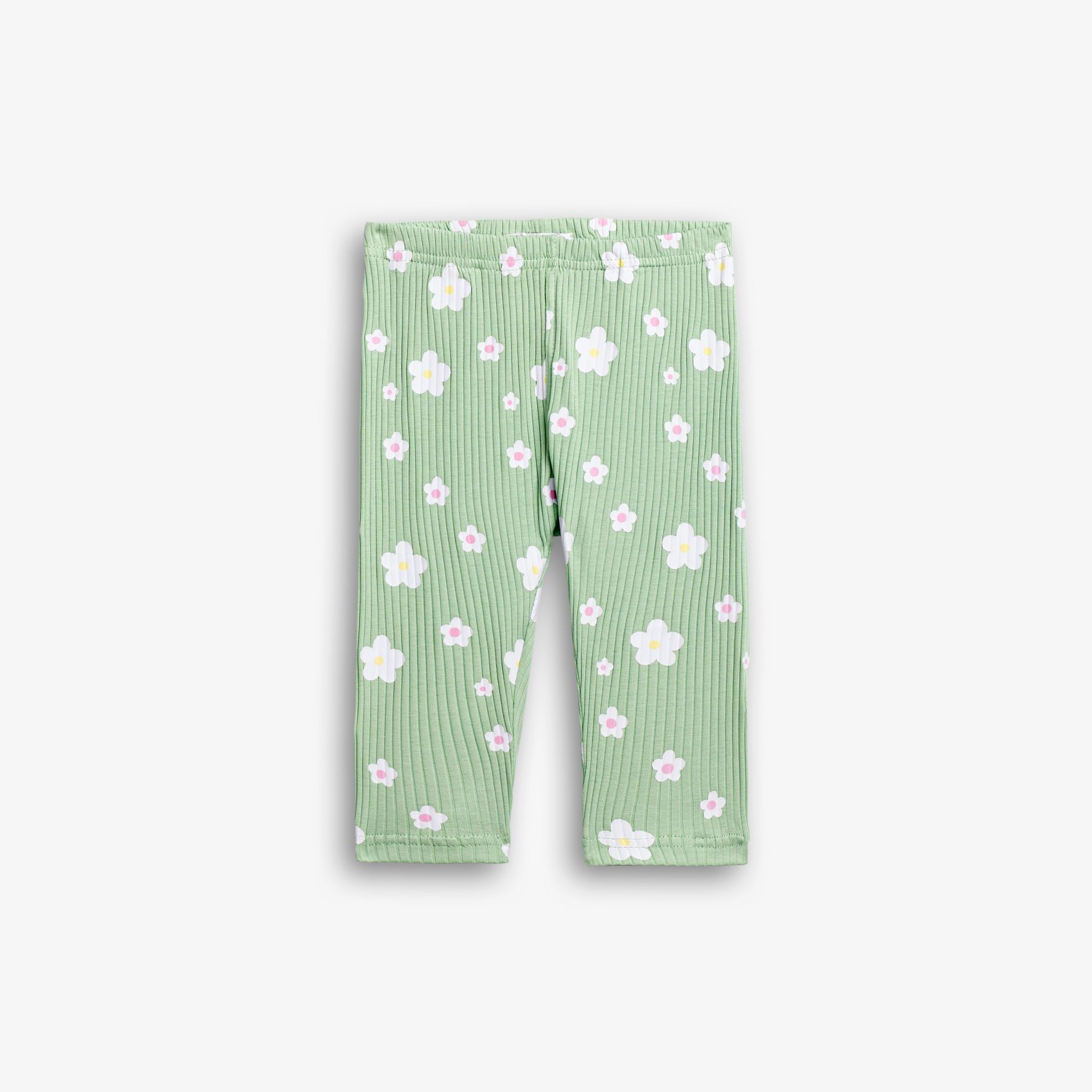 Κολάν κάπρι κάλτσα με τύπωμα (λουλούδια) allover σε χρώμα φυστικί για κορίτσι 1-6 ετών