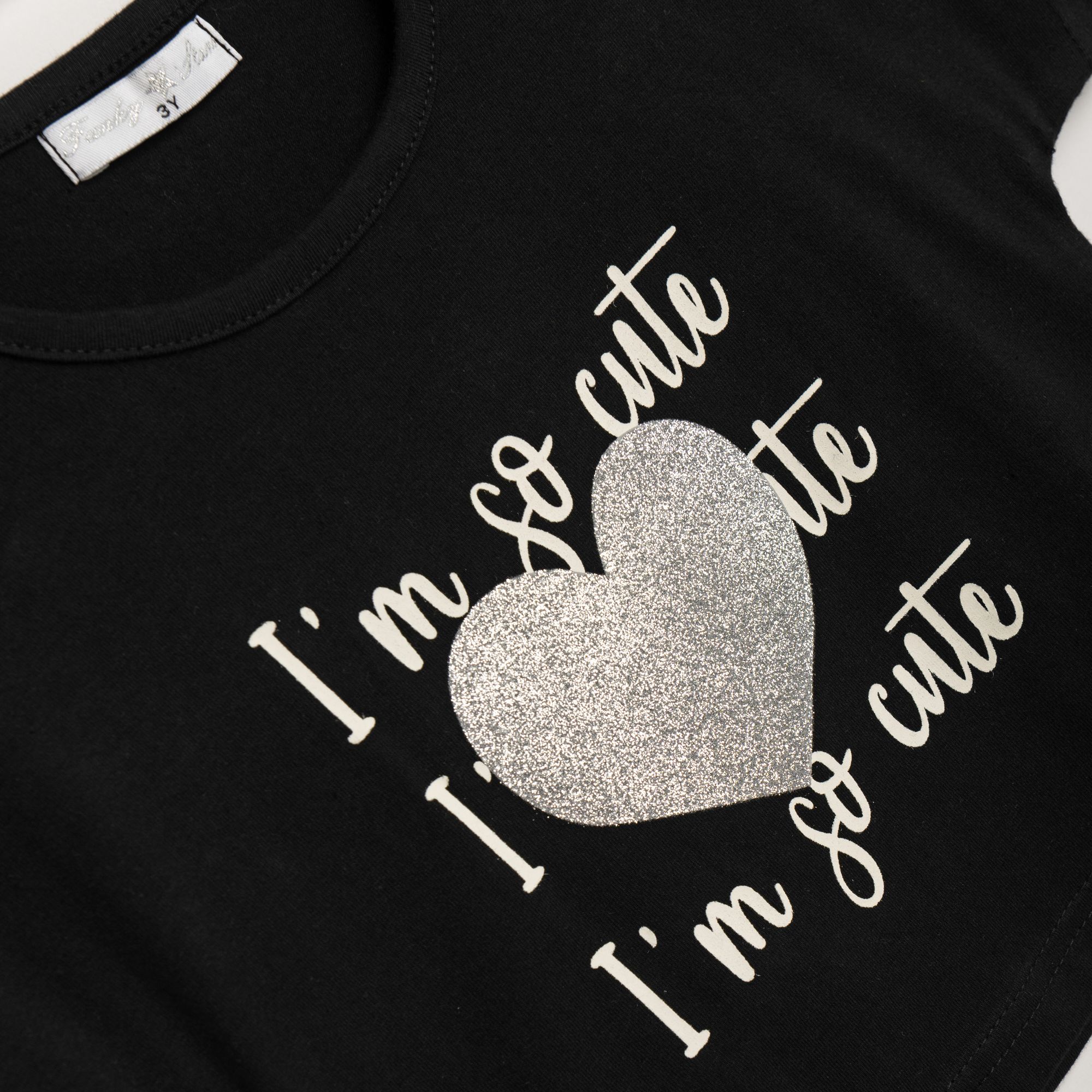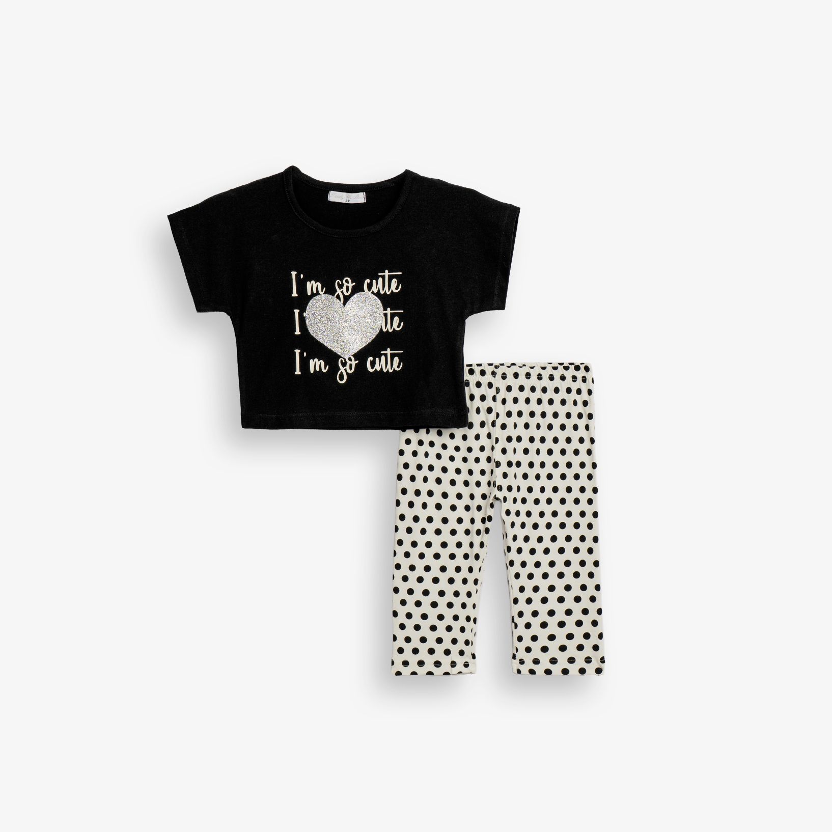 Σετ μπλούζα με τύπωμα (καρδιά) και κολάν κάπρι κάλτσα λύκρα με τύπωμα allover σε χρώμα μαύρο/εκρού για κορίτσι 1-6 ετών