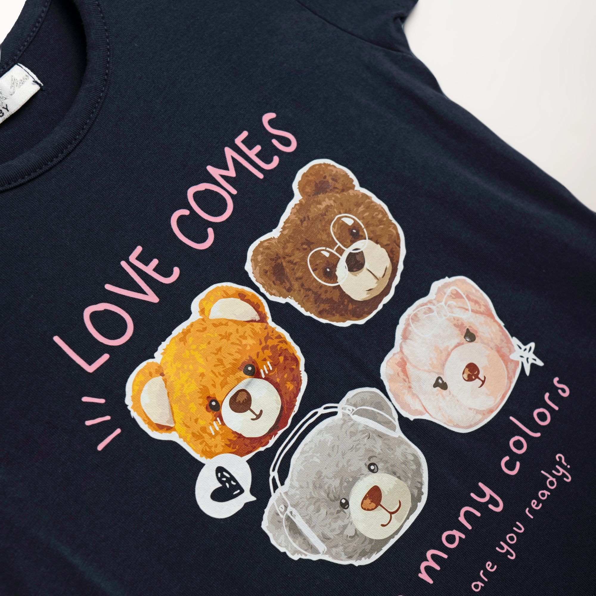 Σετ μπλούζα με τύπωμα (αρκουδάκια) και κολάν κάπρι κάλτσα με τύπωμα allover σε χρώμα μπλέ/candy pink για κορίτσι 1-6 ετών