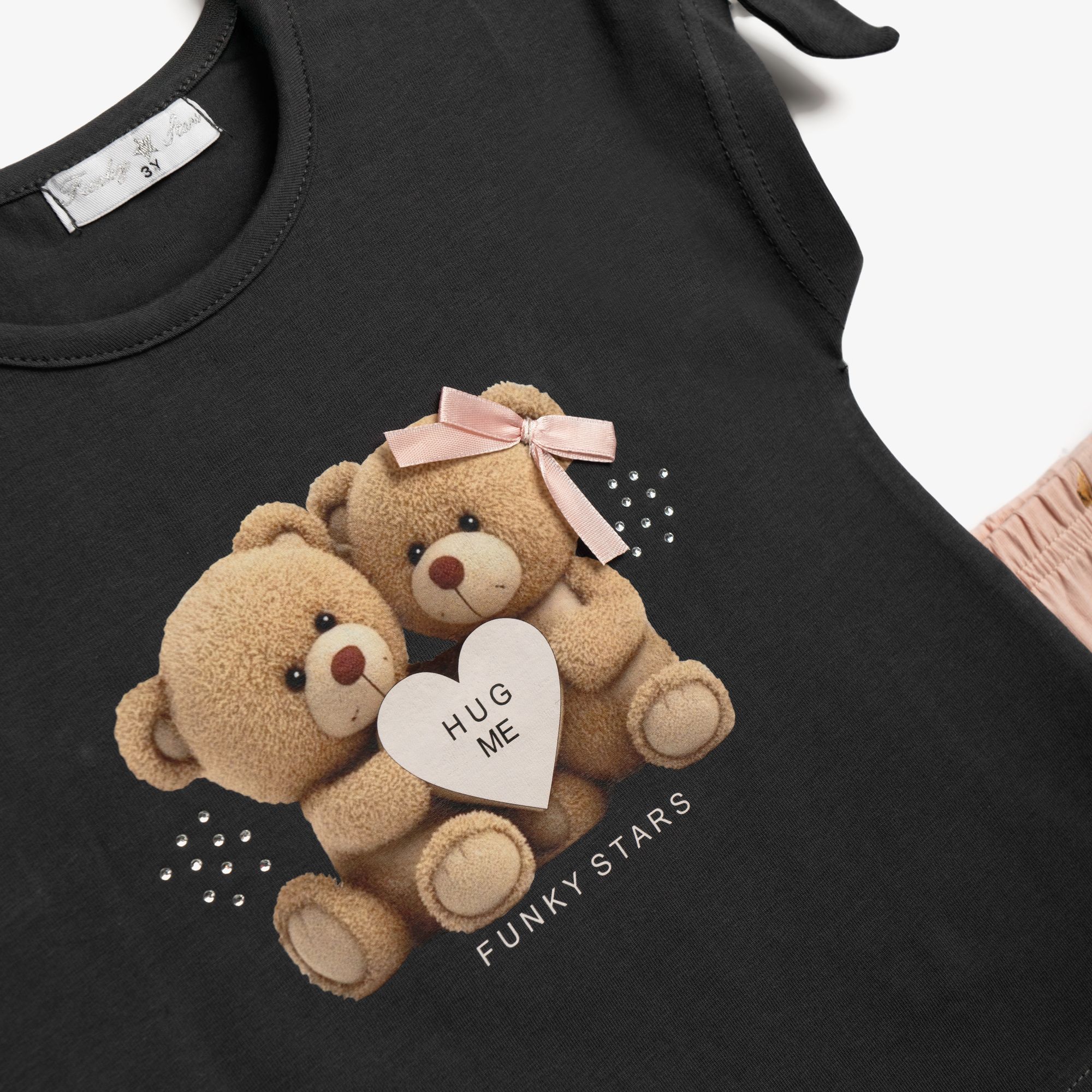 Σετ μπλούζα με τύπωμα (αρκουδάκια) και κολάν κάπρι κάλτσα με τύπωμα allover σε χρώμα ανθρακί/ροζ πούδρας για κορίτσι 1-6 ετών