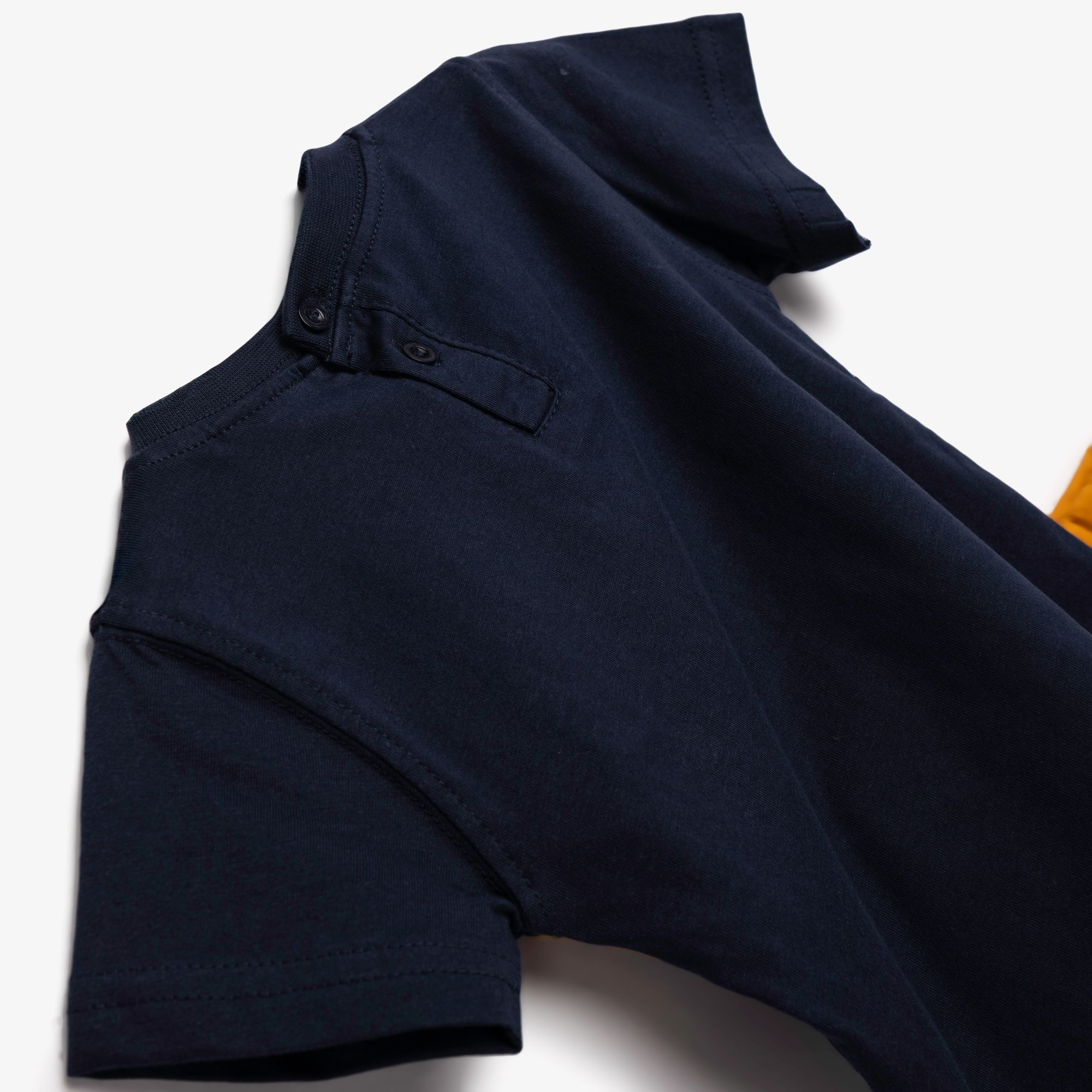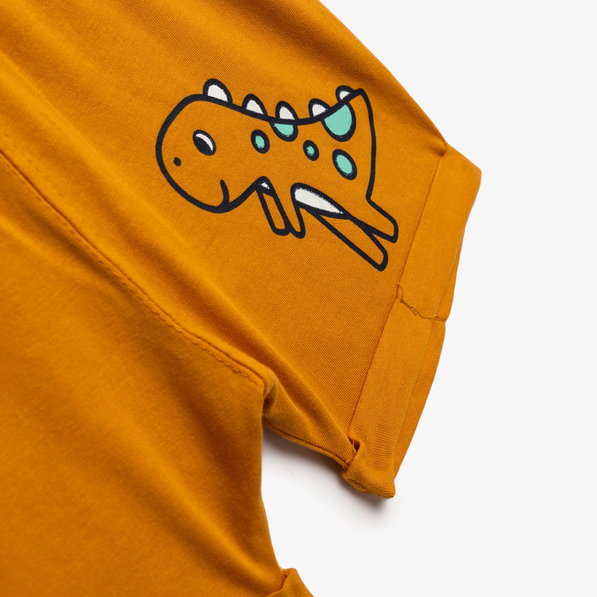 Σετ μπλούζα μακό με τύπωμα (δεινοσαυράκια) και σόρτς με τύπωμα σε χρώμα μπλέ/τζίντζερ για αγόρι μηνών