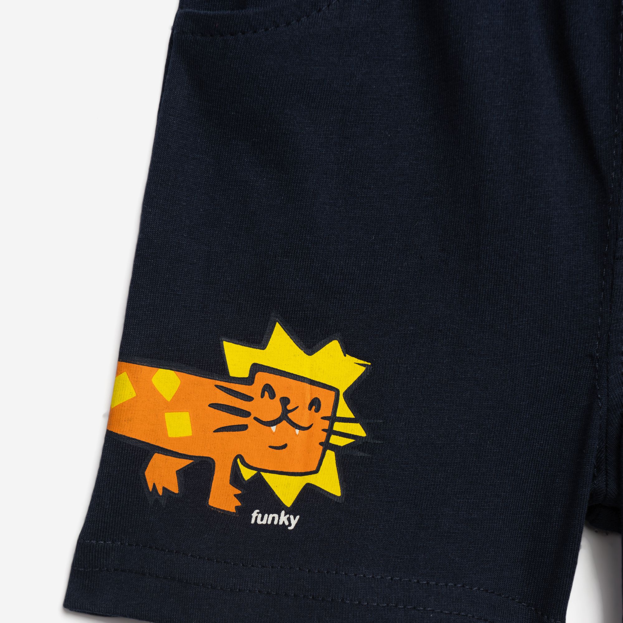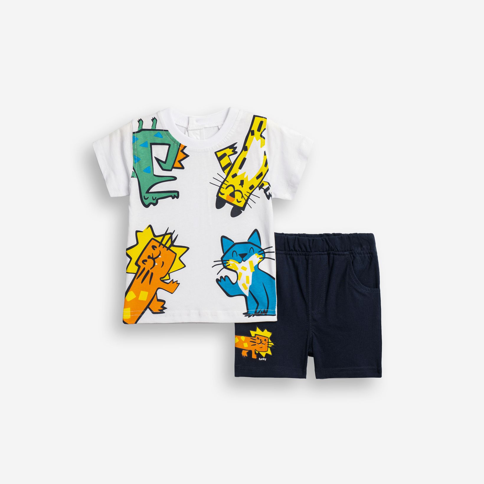 Σετ μπλούζα μακό με τύπωμα (ζωάκια) και σόρτς με τύπωμα σε χρώμα λευκό/μπλέ για αγόρι μηνών