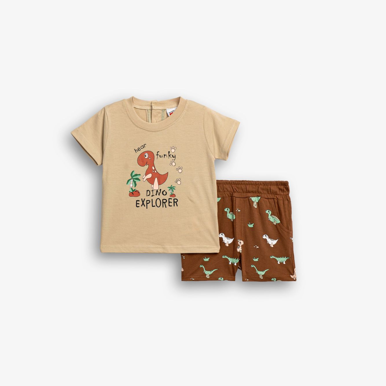 Σετ μπλούζα μακό με τύπωμα (δεινόσαυρος) και σόρτς με τύπωμα allover σε χρώμα πάγος/κανέλα για αγόρι μηνών