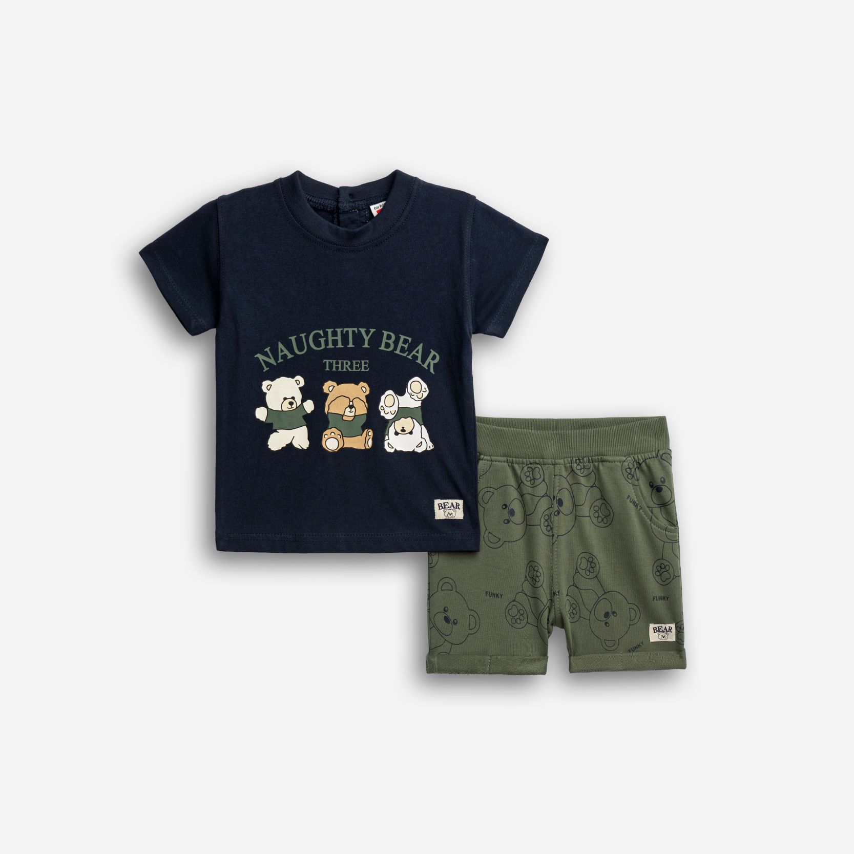 Σετ μπλούζα με τύπωμα (αρκουδάκια) και βερμούδα φούτερ με τύπωμα allover σε χρώμα μπλέ/χακί για αγόρι μηνών