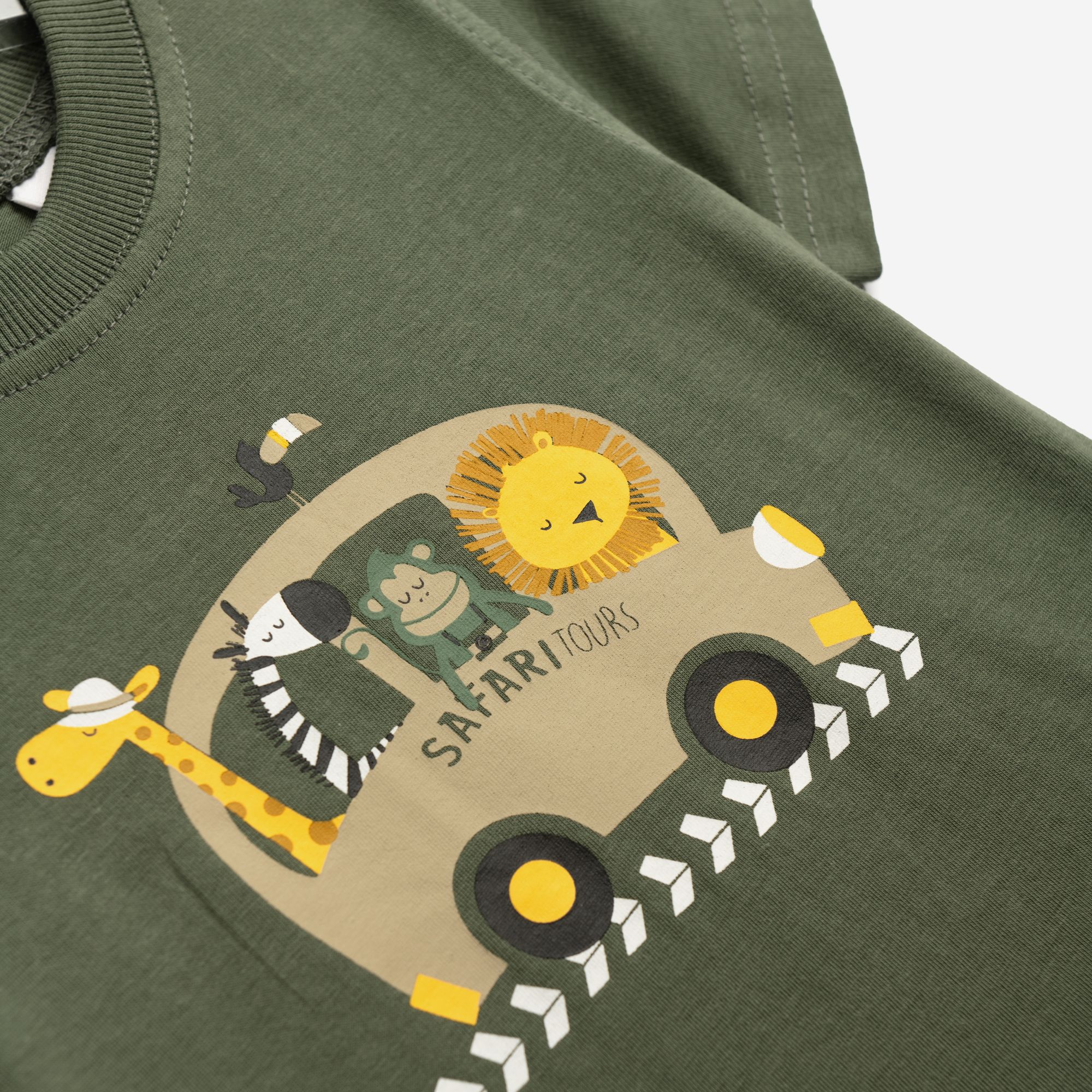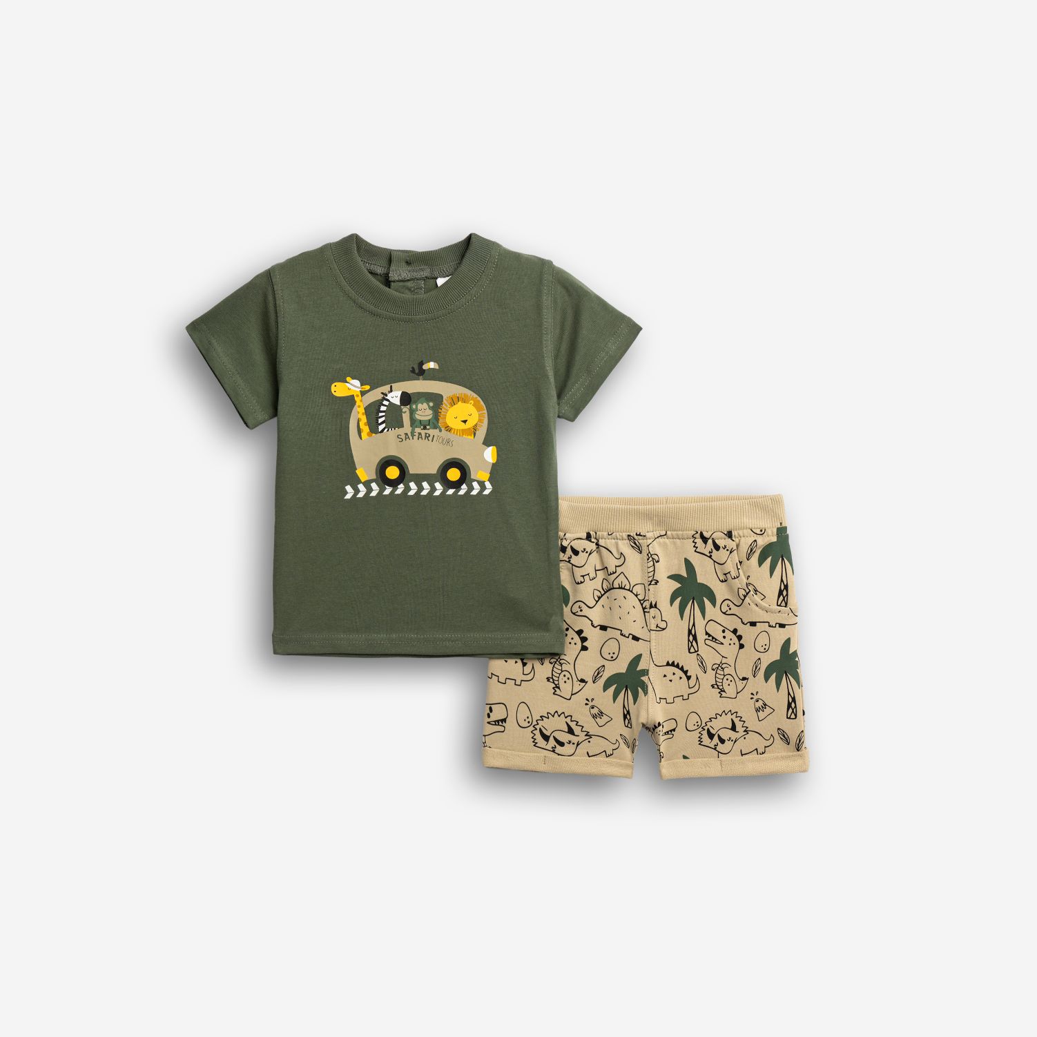 Σετ μπλούζα με τύπωμα (safari tours) και βερμούδα φούτερ με τύπωμα allover σε χρώμα χακί/μπέζ άμμου για αγόρι μηνών