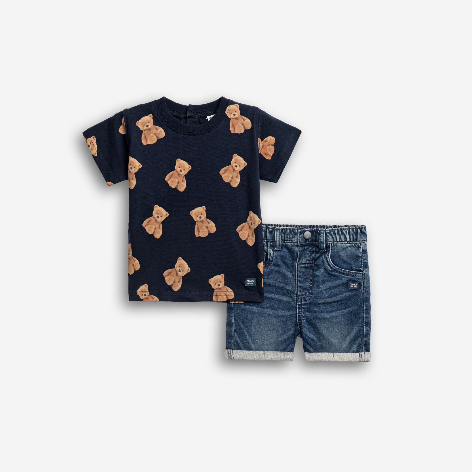 Σετ μπλούζα με τύπωμα (αρκουδάκια) allover και βερμούδα φούτερ τζίν σε χρώμα μπλέ/μπλέ τζίν για αγόρι μηνών