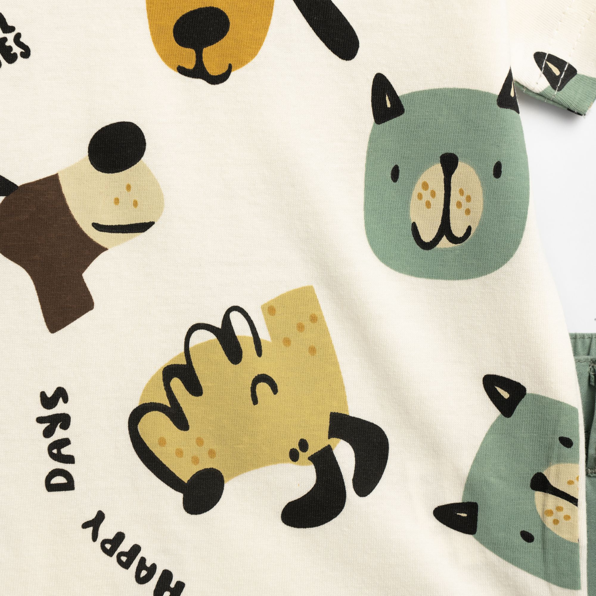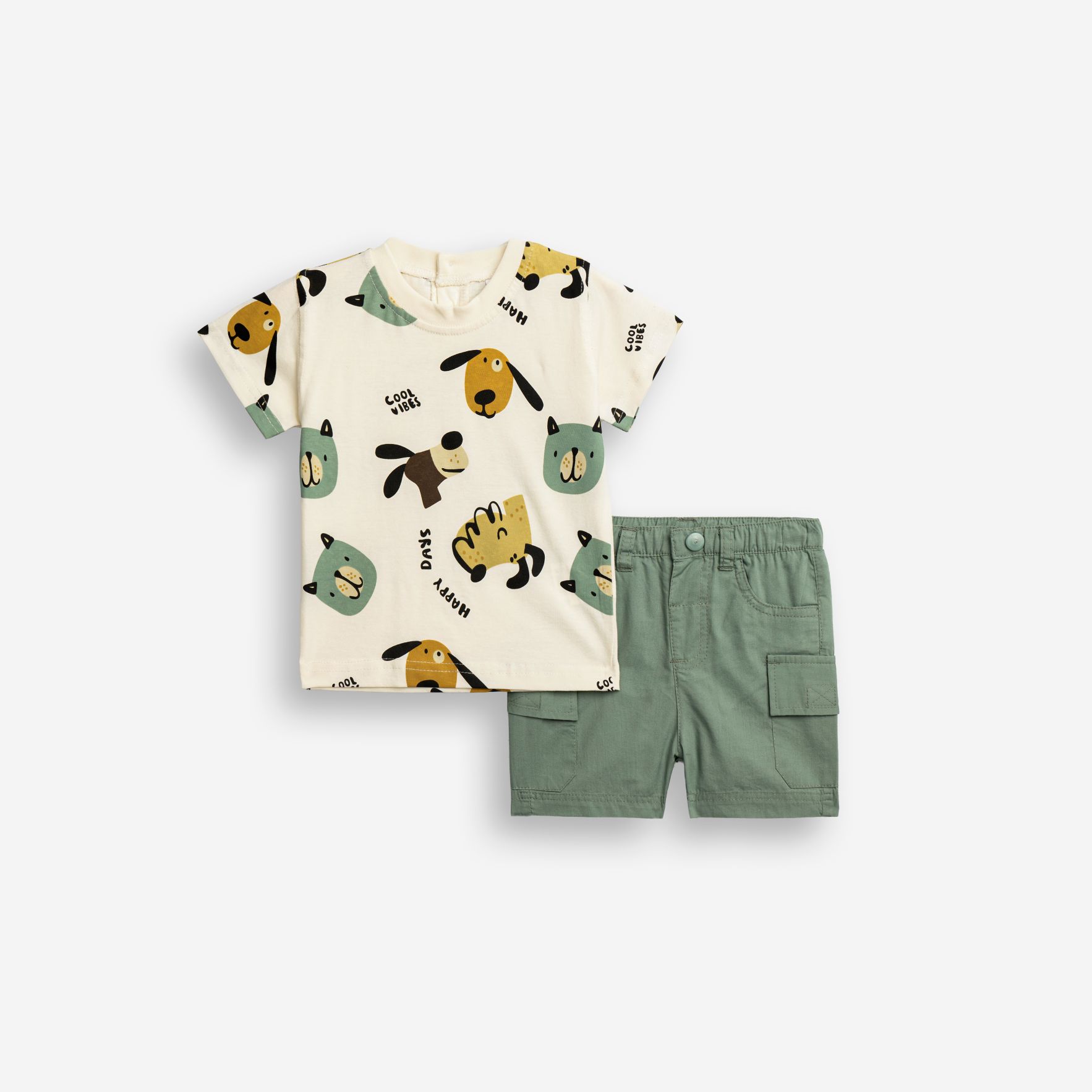 Σετ μπλούζα με τύπωμα (ζωάκια) allover και βερμούδα σταθερή με τσέπες σε χρώμα εκρού/ανοιχτό χακί για αγόρι μηνών