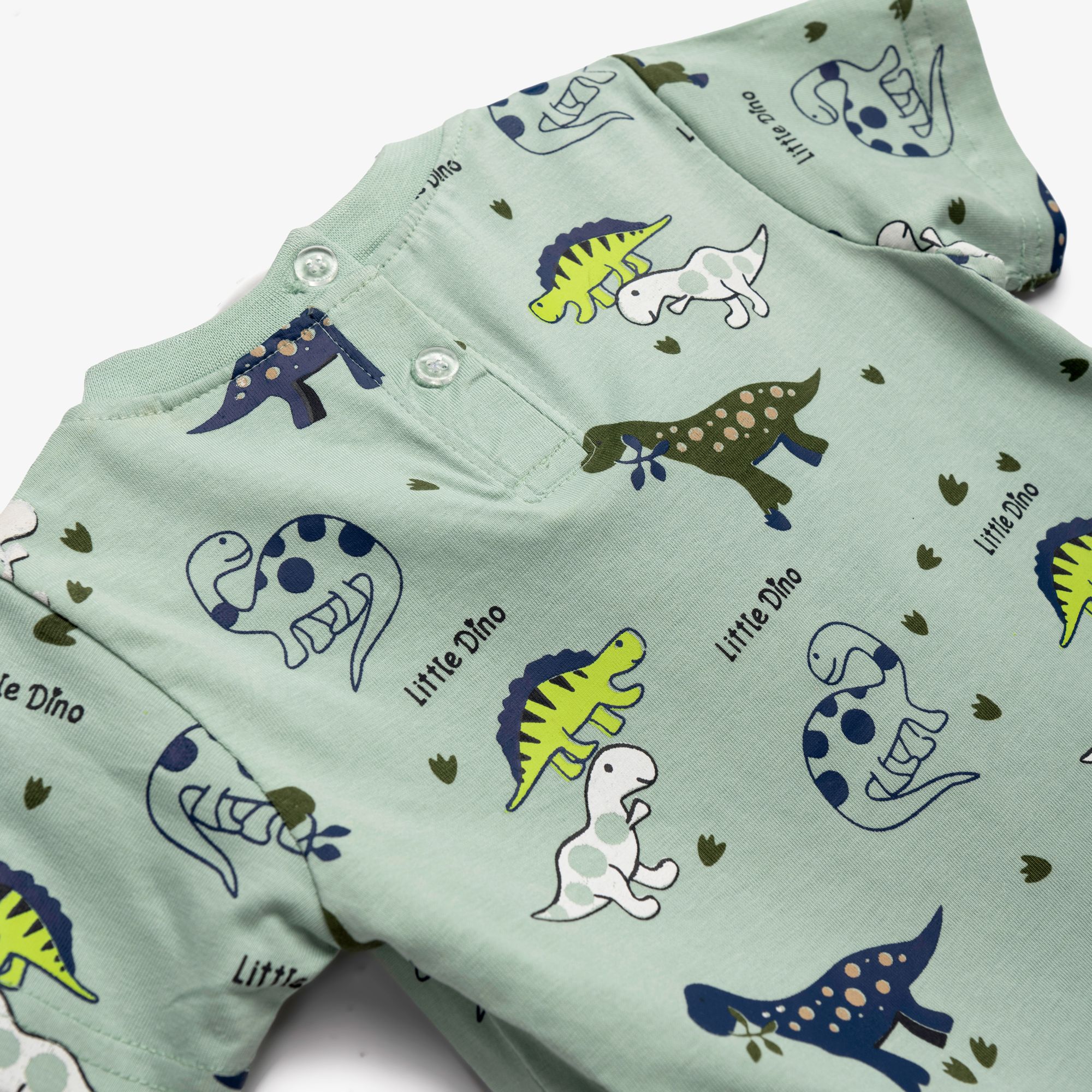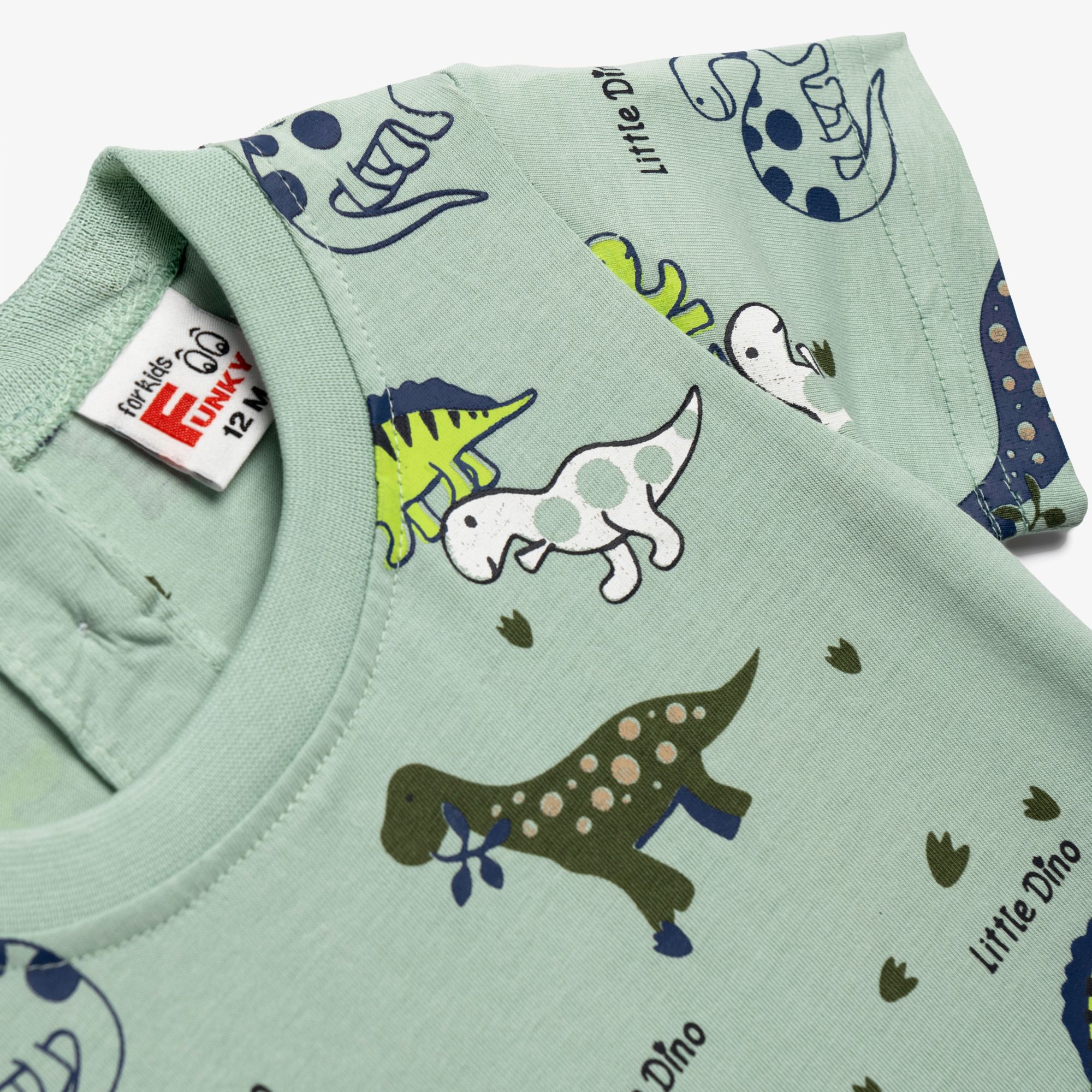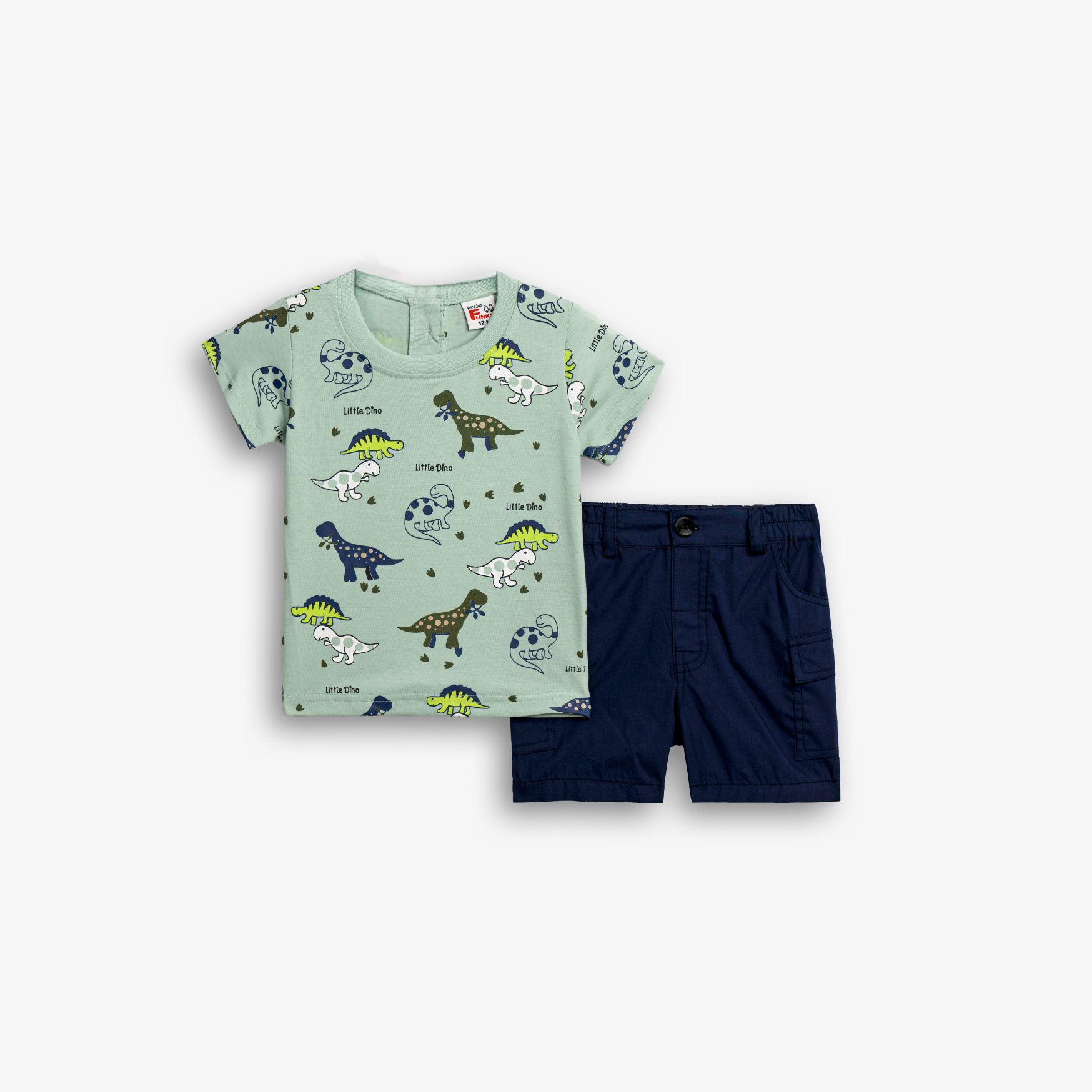 Σετ μπλούζα με τύπωμα (δεινόσαυροι) allover και βερμούδα σταθερή με τσέπες σε χρώμα φυστικί/ραφ για αγόρι μηνών