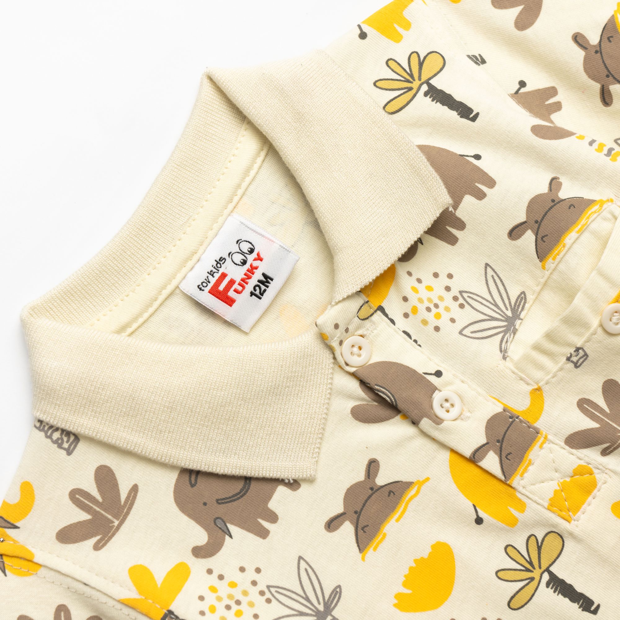 Σετ μπλούζα με τύπωμα (ζωάκια) allover και βερμούδα σταθερή με τσέπες σε χρώμα βανίλια/αμύγδαλο για αγόρι μηνών
