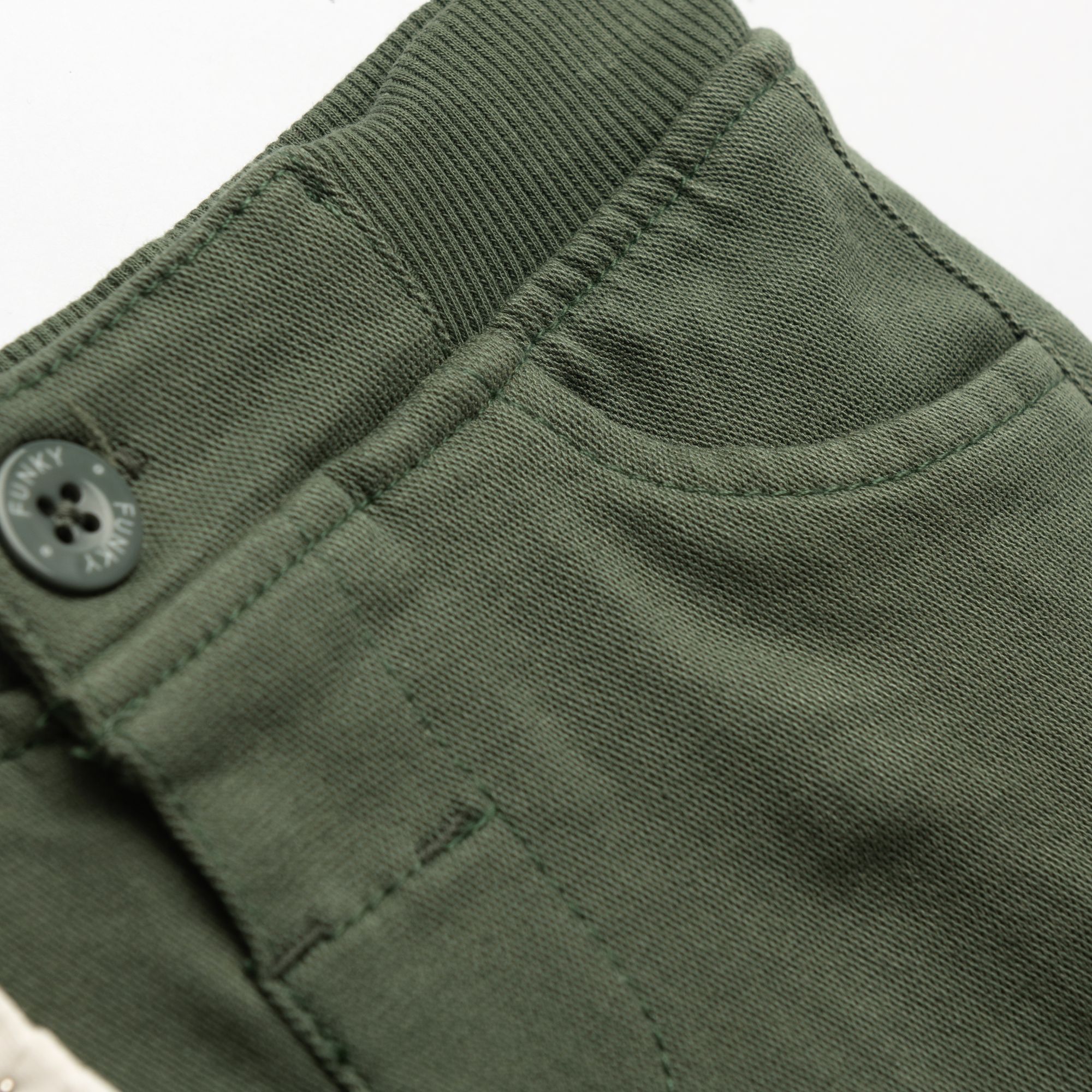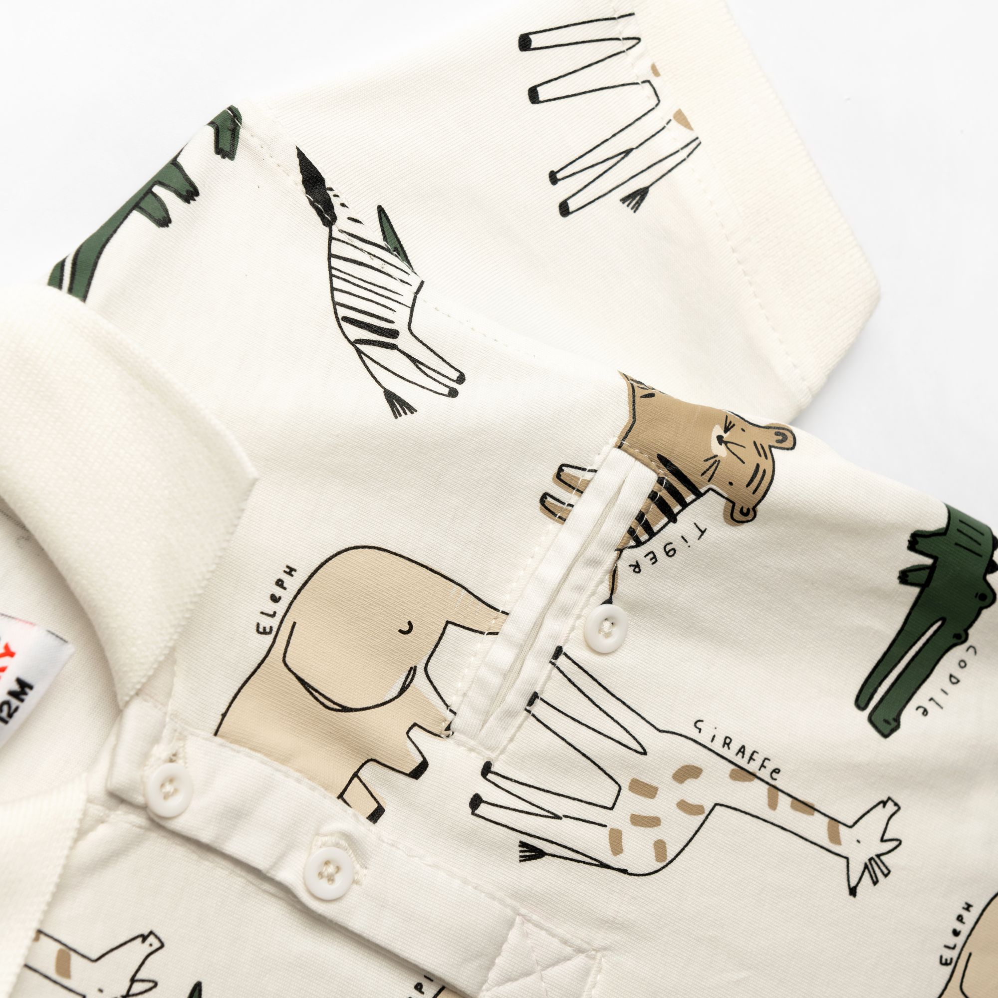 Σετ μπλούζα κοντομάνικη πόλο κάλτσα με τύπωμα (ζωάκια) και παντελόνι λύκρα σε χρώμα εκρού/χακί για αγόρι μηνών