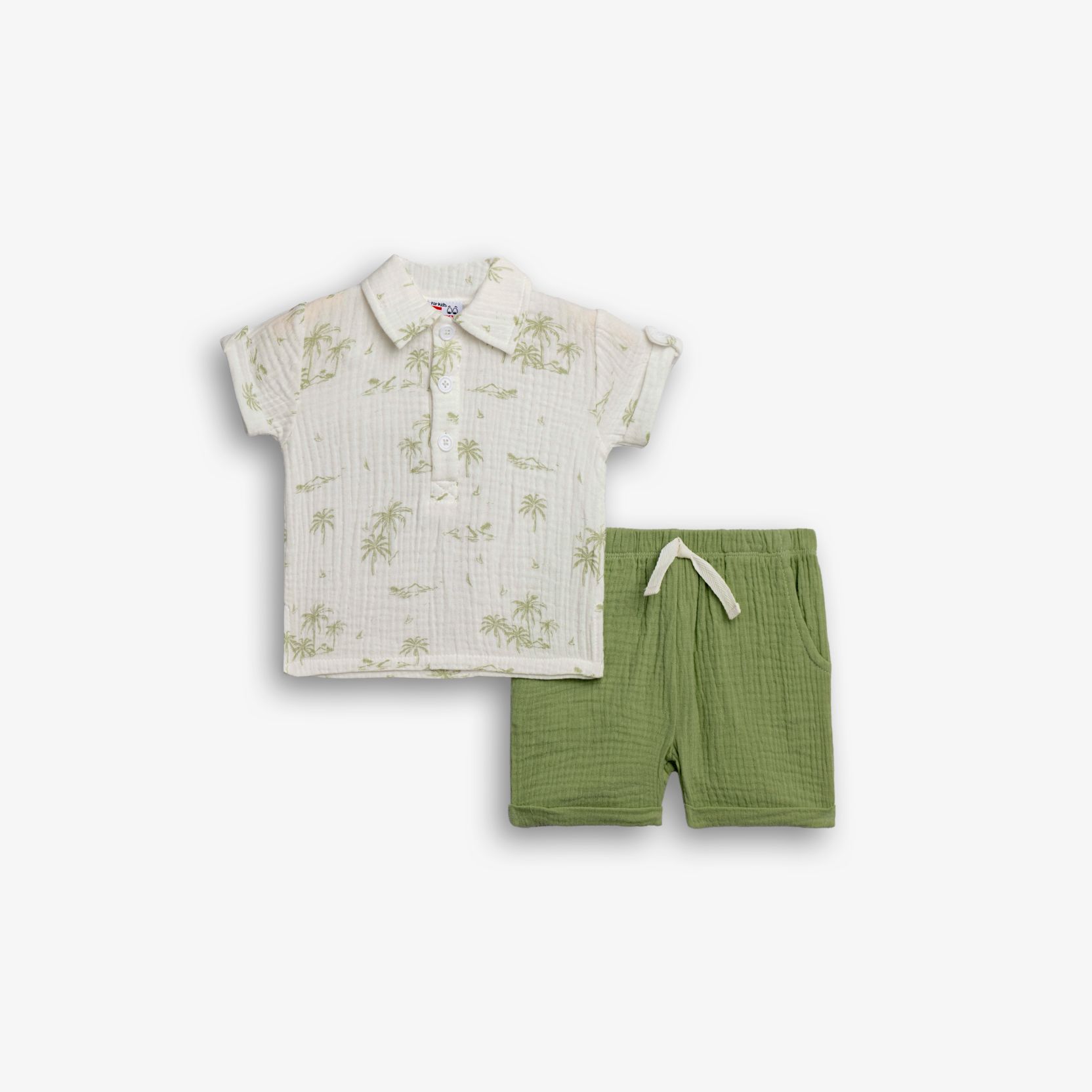 Σετ κοντομάνικο πόλο με τύπωμα (ζωάκια) και βερμούδα και σε χρώμα εκρού/χακί για αγόρι μηνών