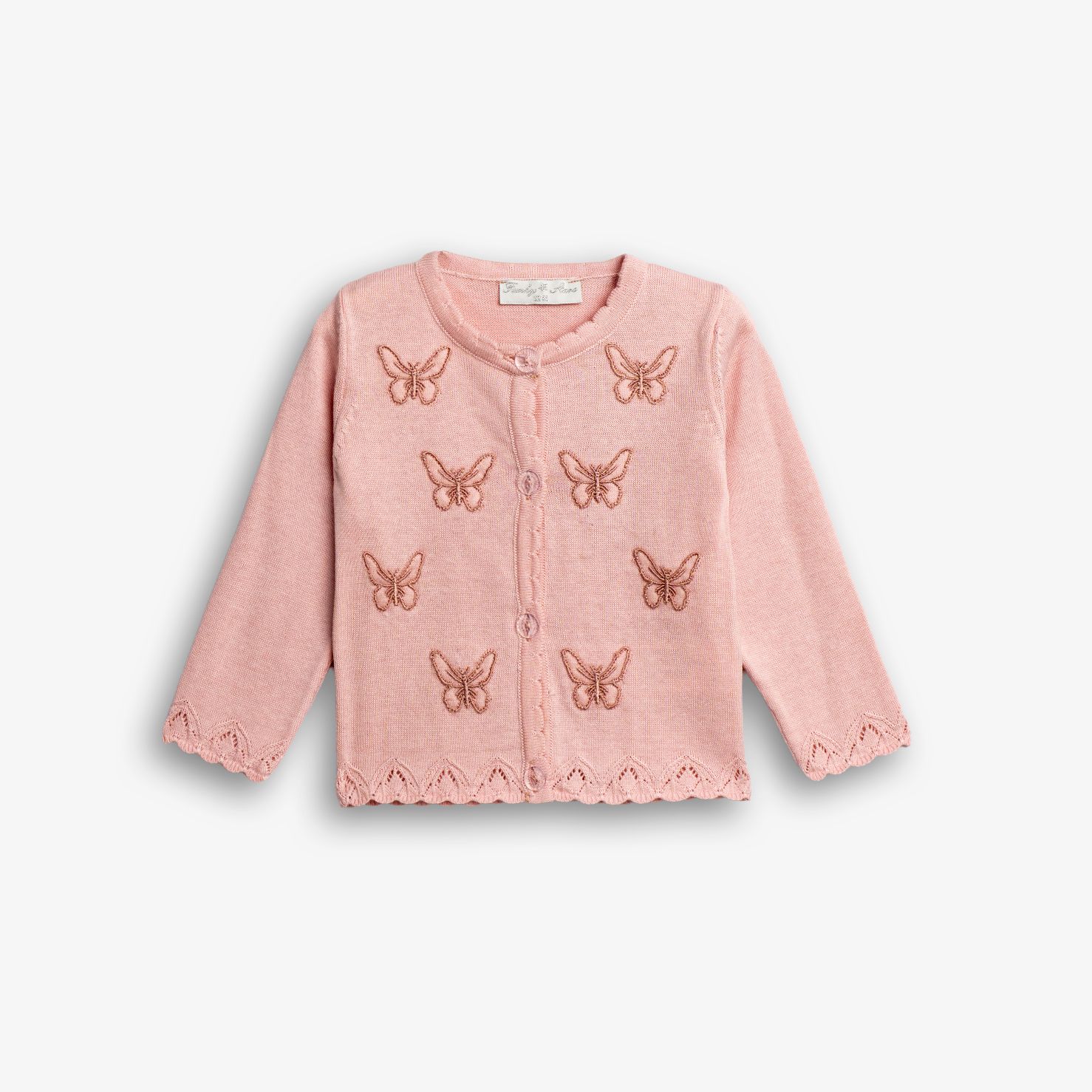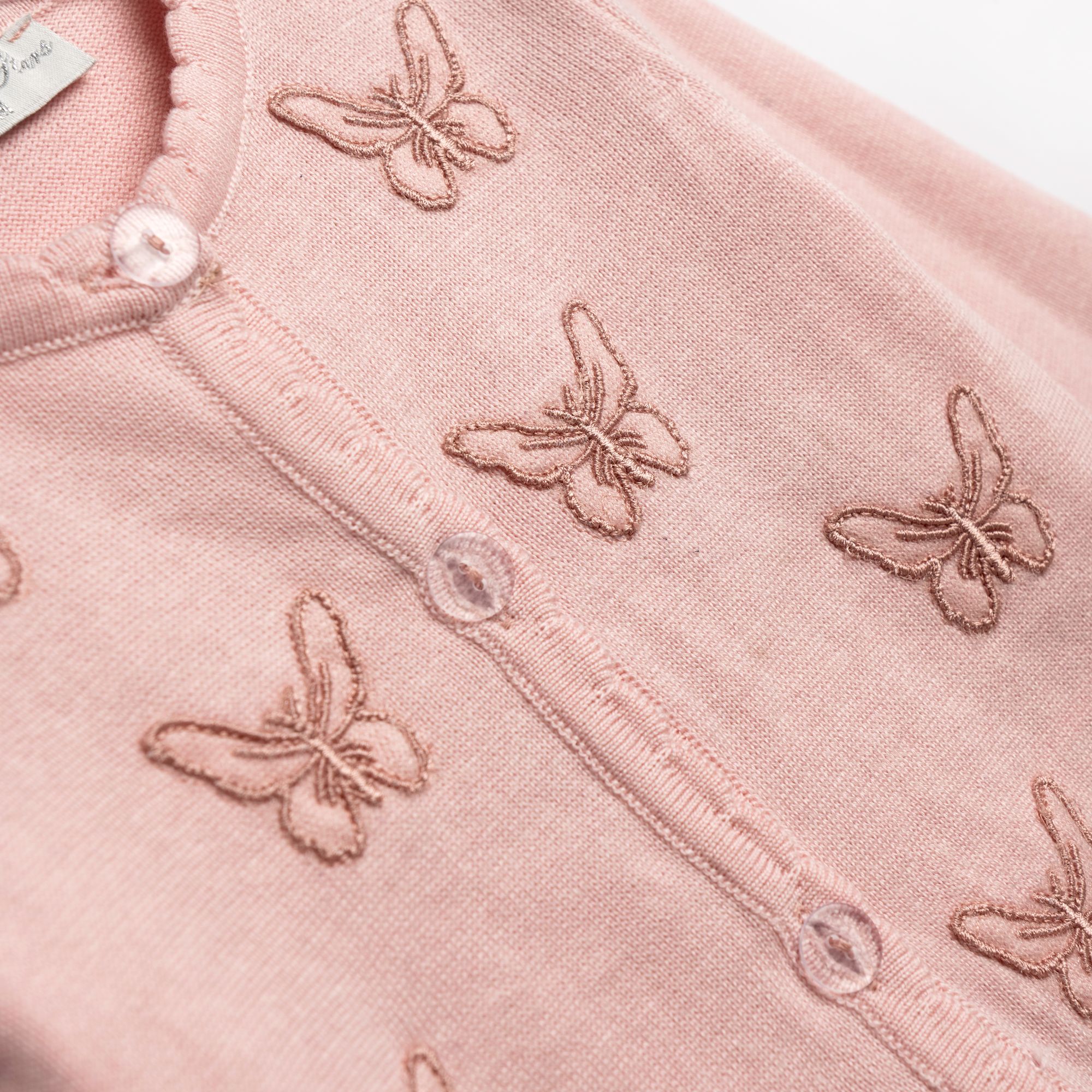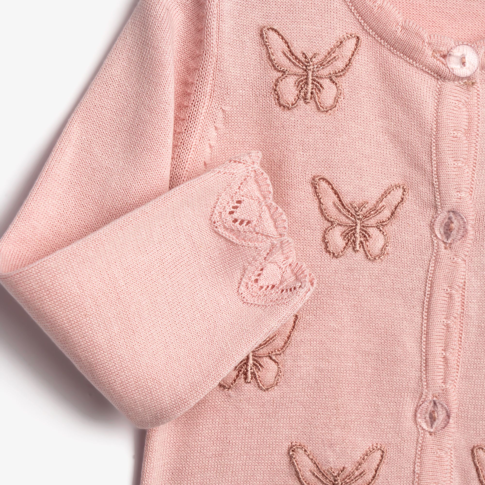 Ζακέτα πλεκτή με ανάγλυφο σχέδιο (πεταλούδες) σε χρώμα ανοιχτό ροζ για κορίτσι μηνών