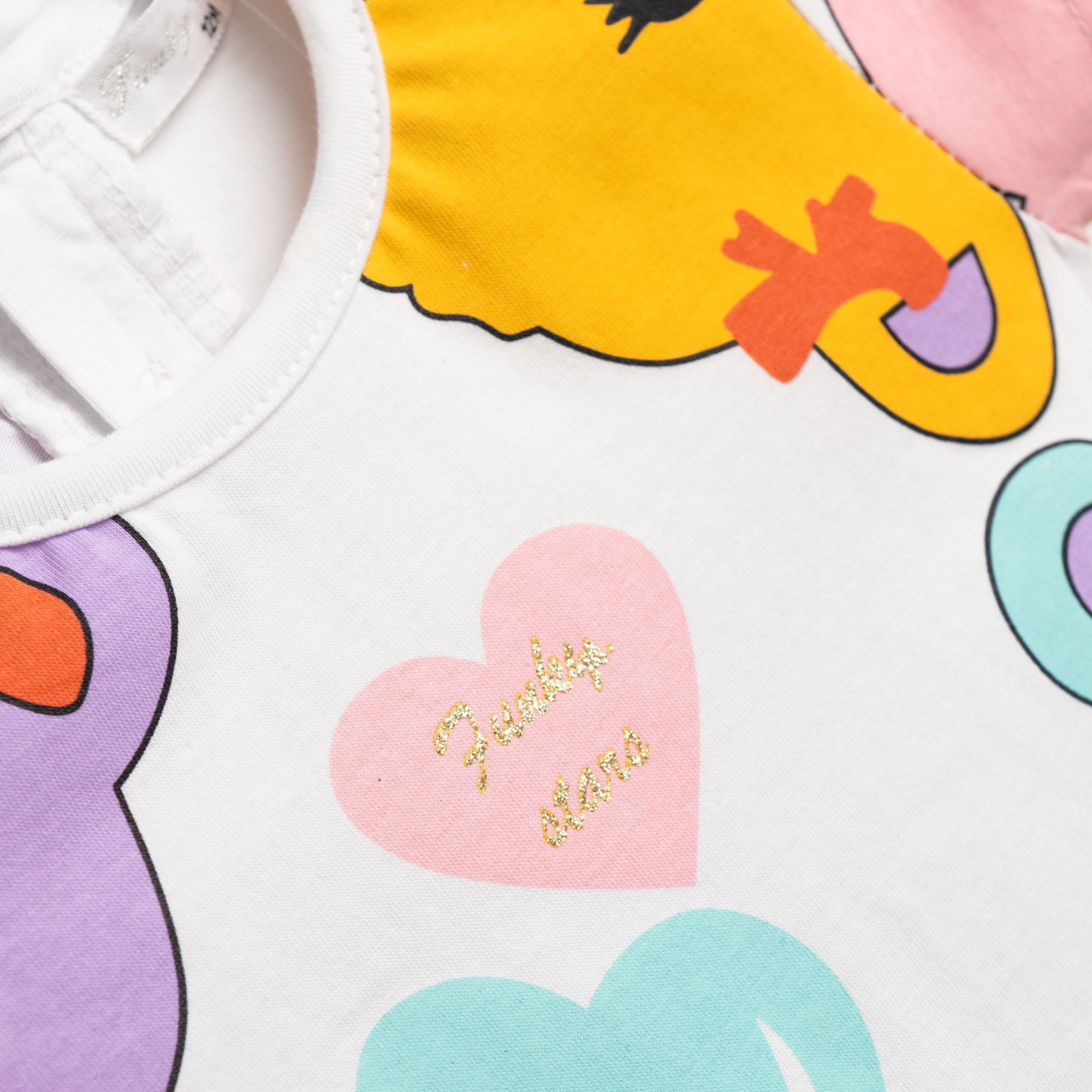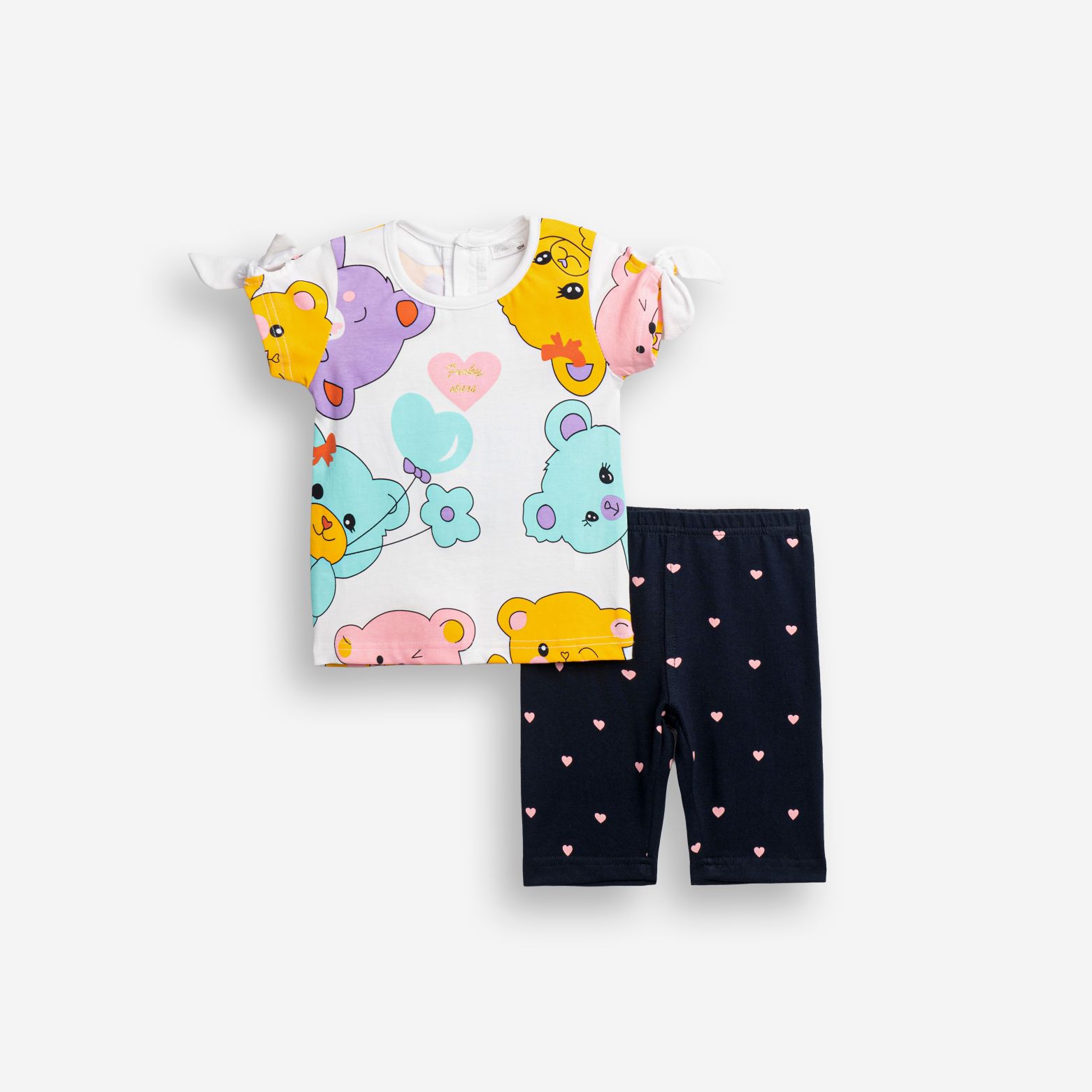 Μπλουζοφόρεμα κάλτσα λύκρα με τύπωμα (αρκουδάκια) allover και κολάν κάπρι με τύπωμα allover σε χρώμα λευκό/μπλέ για κορίτσι μηνών