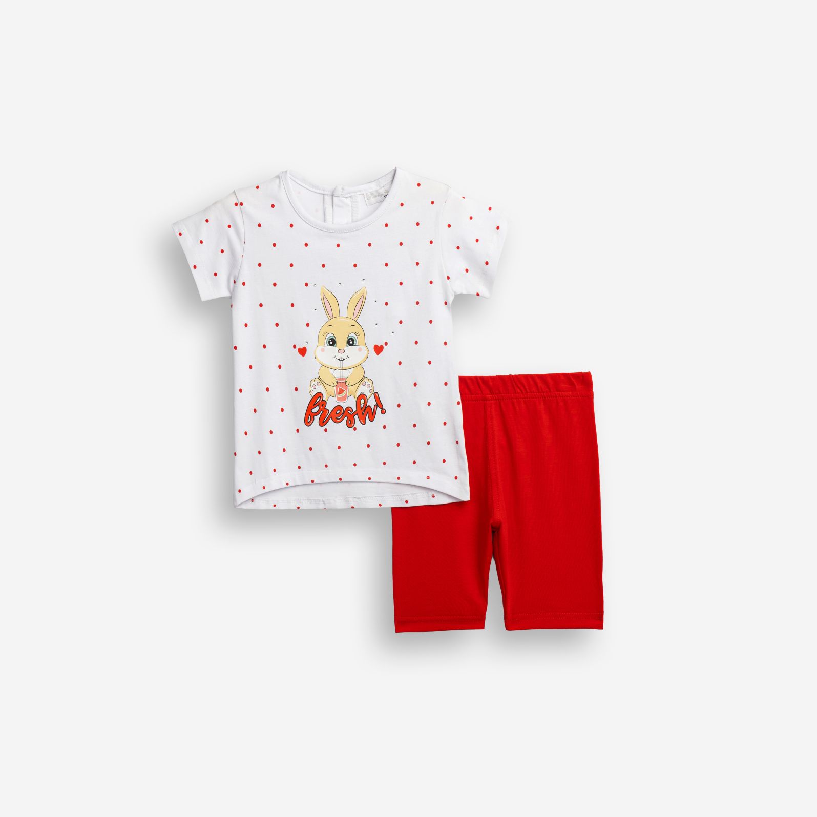 Μπλουζοφόρεμα κάλτσα λύκρα με τύπωμα (κουνελάκι) allover και κολάν κάπρι σε χρώμα λευκό/κόκκινο για κορίτσι μηνών