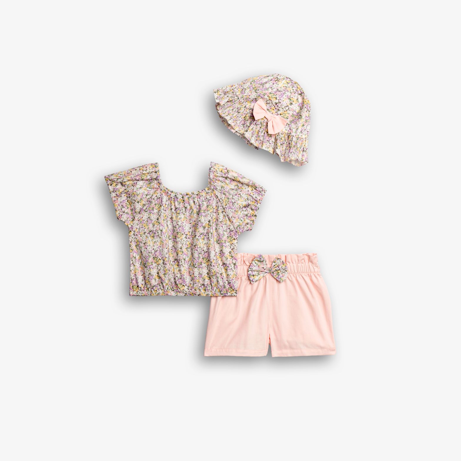 Σετ μπλούζα με τύπωμα (λουλούδια) allover και σόρτς και καπέλο σε χρώμα τύπος για κορίτσι μηνών