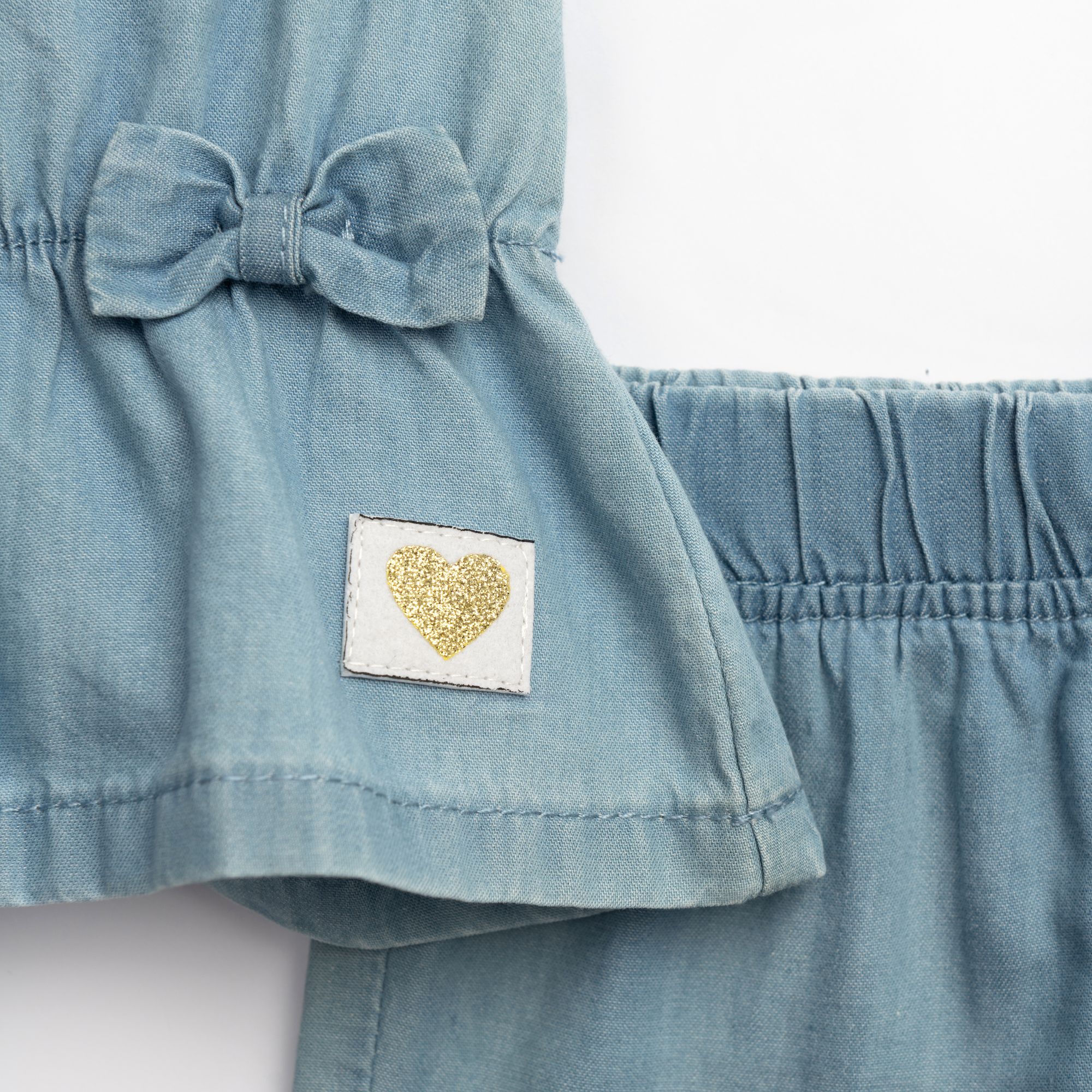 Σετ μπλούζα τζίν λεπτό μαλακό και σόρτς τζίν λεπτό μαλακό σε χρώμα μπλέ τζίν/μπλέ τζίν για κορίτσι μηνών