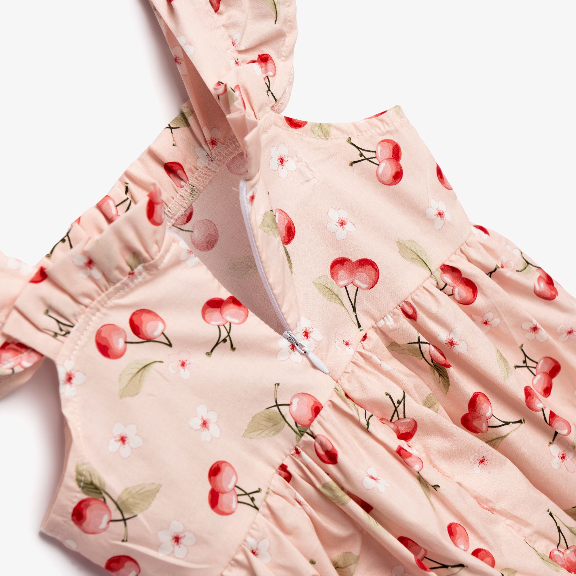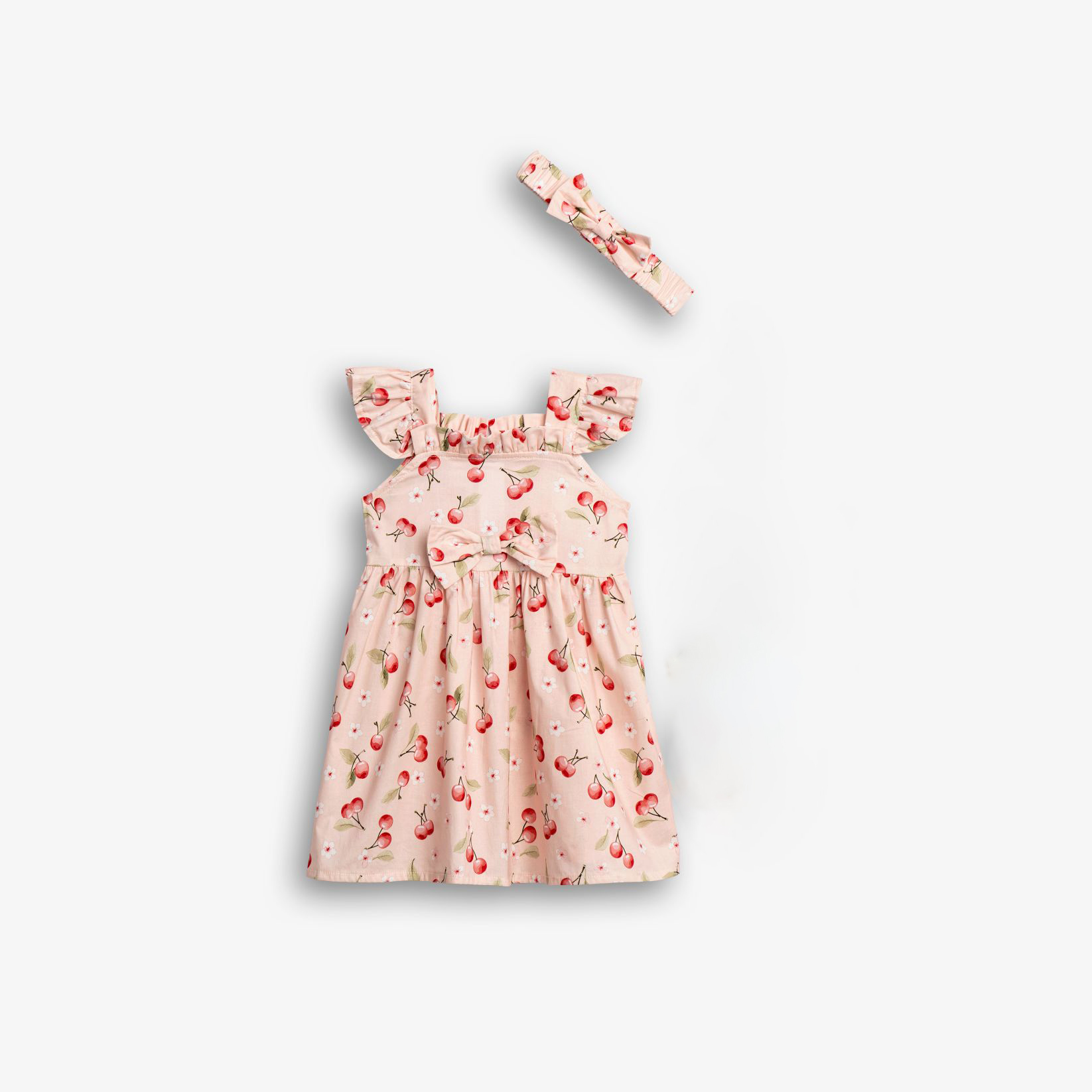 Φόρεμα με τύπωμα (κεράσια) allover και κορδέλα σε χρώμα τύπος για κορίτσι μηνών