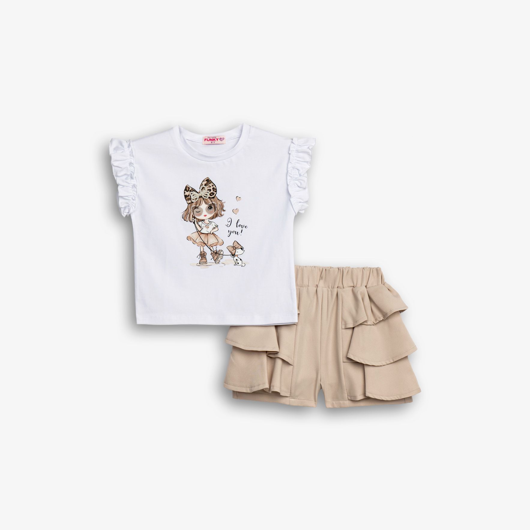 Σετ μπλούζα με τύπωμα (κοριτσάκι) και σόρτς σε χρώμα τύπος για κορίτσι 1-6 ετών