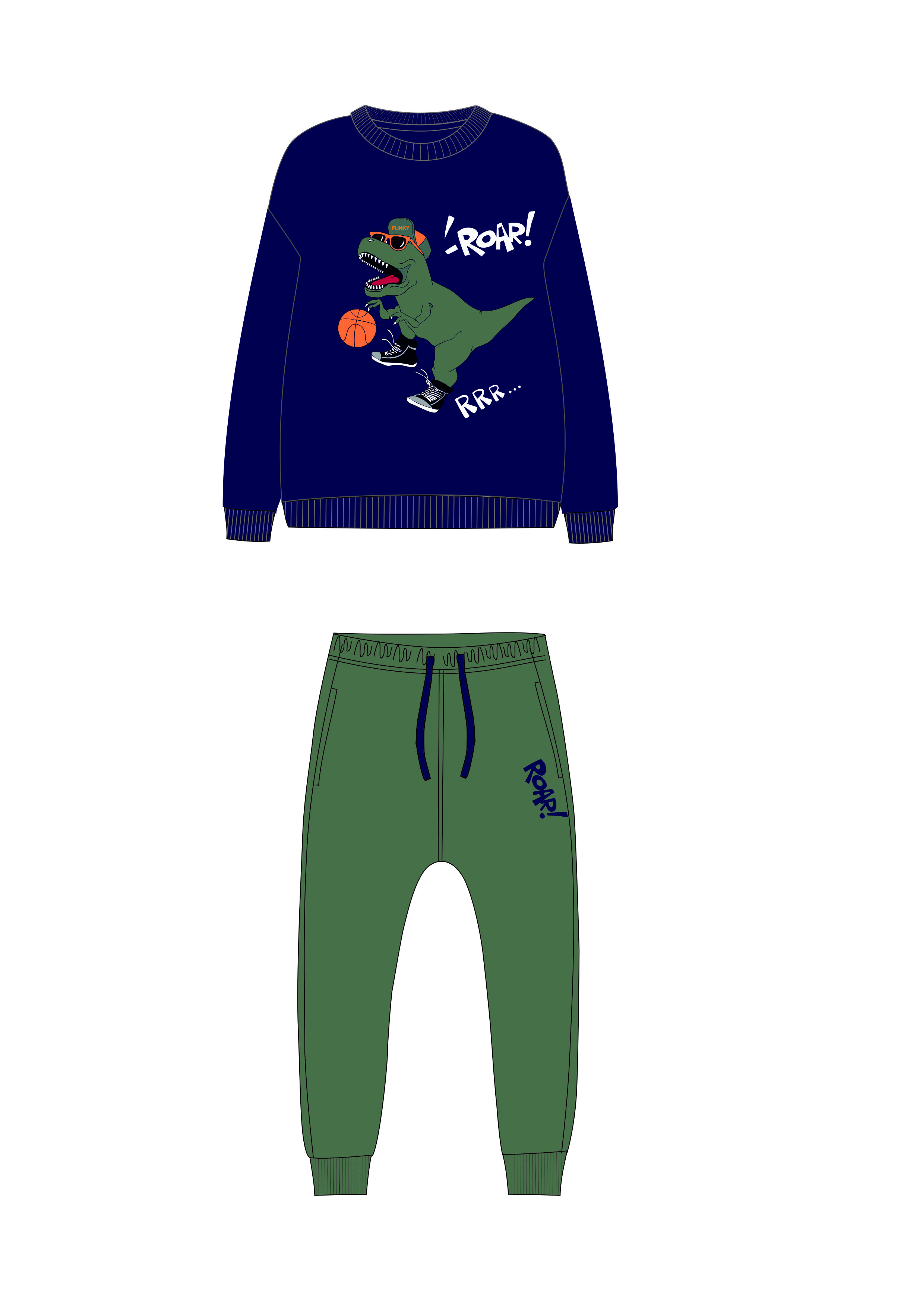 Φόρμα φούτερ για αγόρι αγόρι 2-6 ετών σε χρώμα μπλε/χακί με τύπωμα στη μπλούζα
