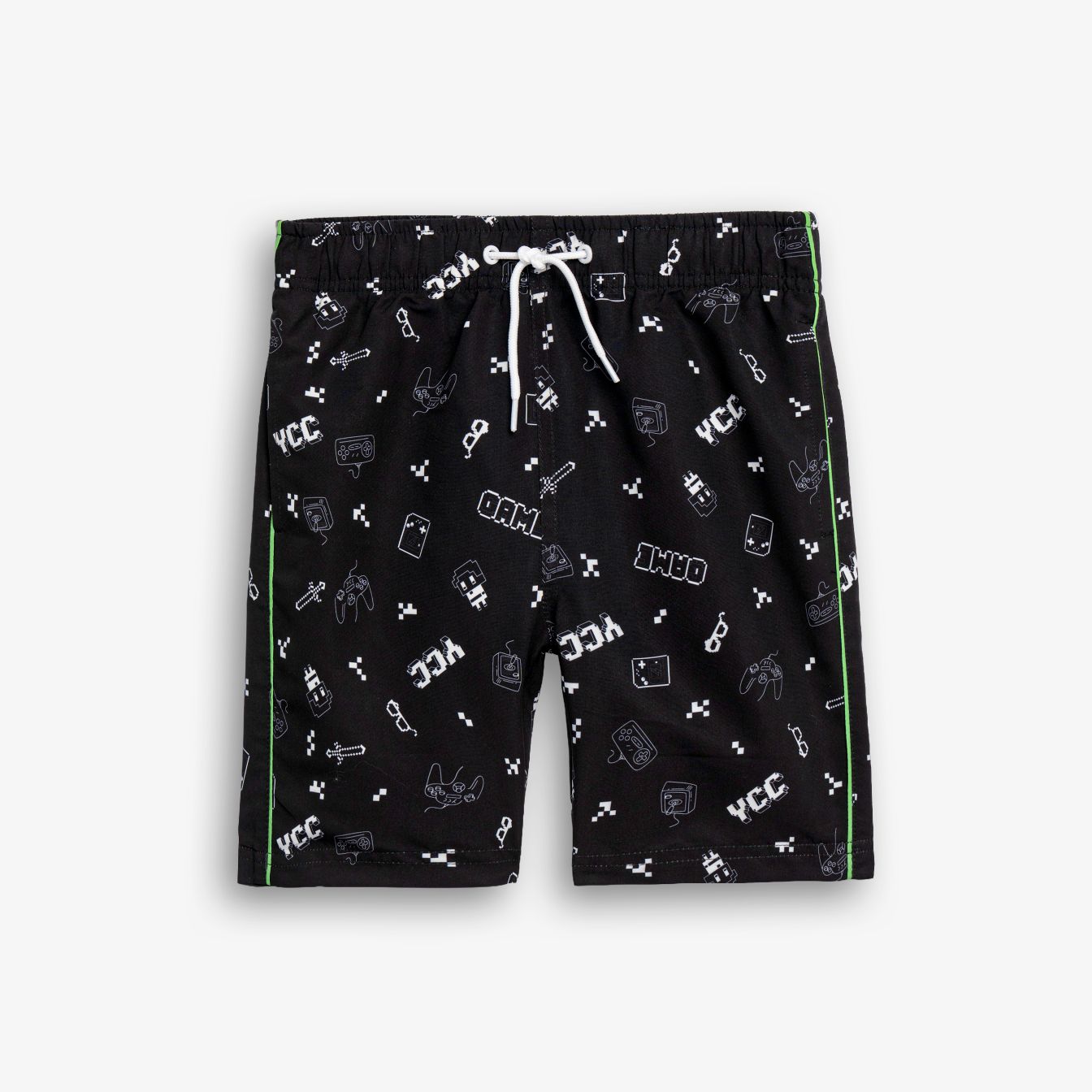 Swimwear corduroy with printing (game) allover in color black for boys 6-16 years