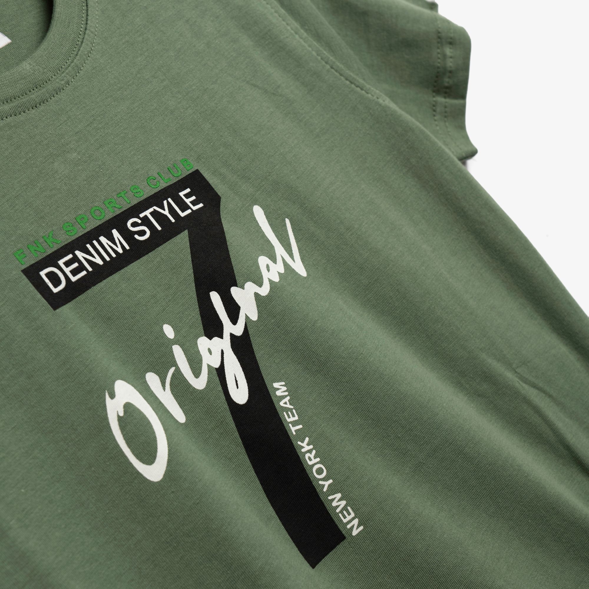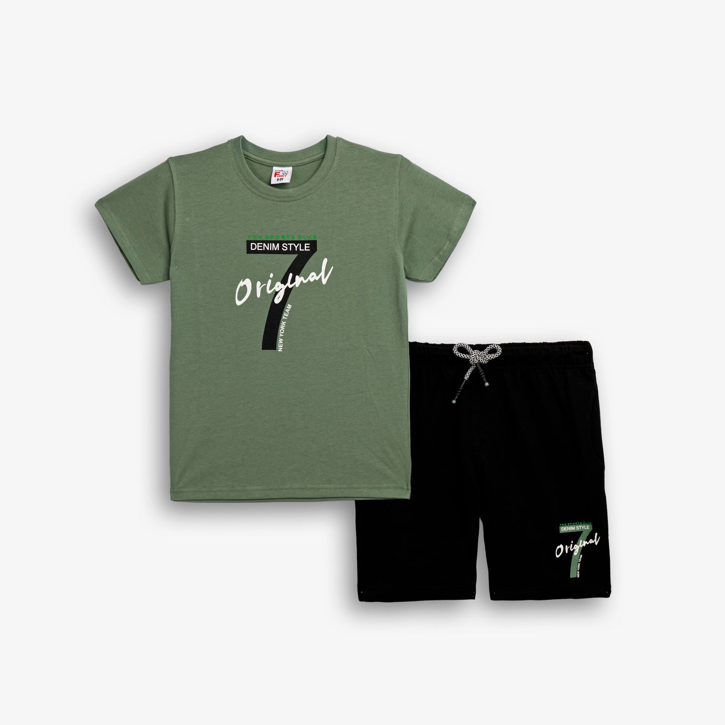 Set T-shirt with printing (number 7) and corduroy fleece with printing in color garden/black with printing for boys 6-16 years