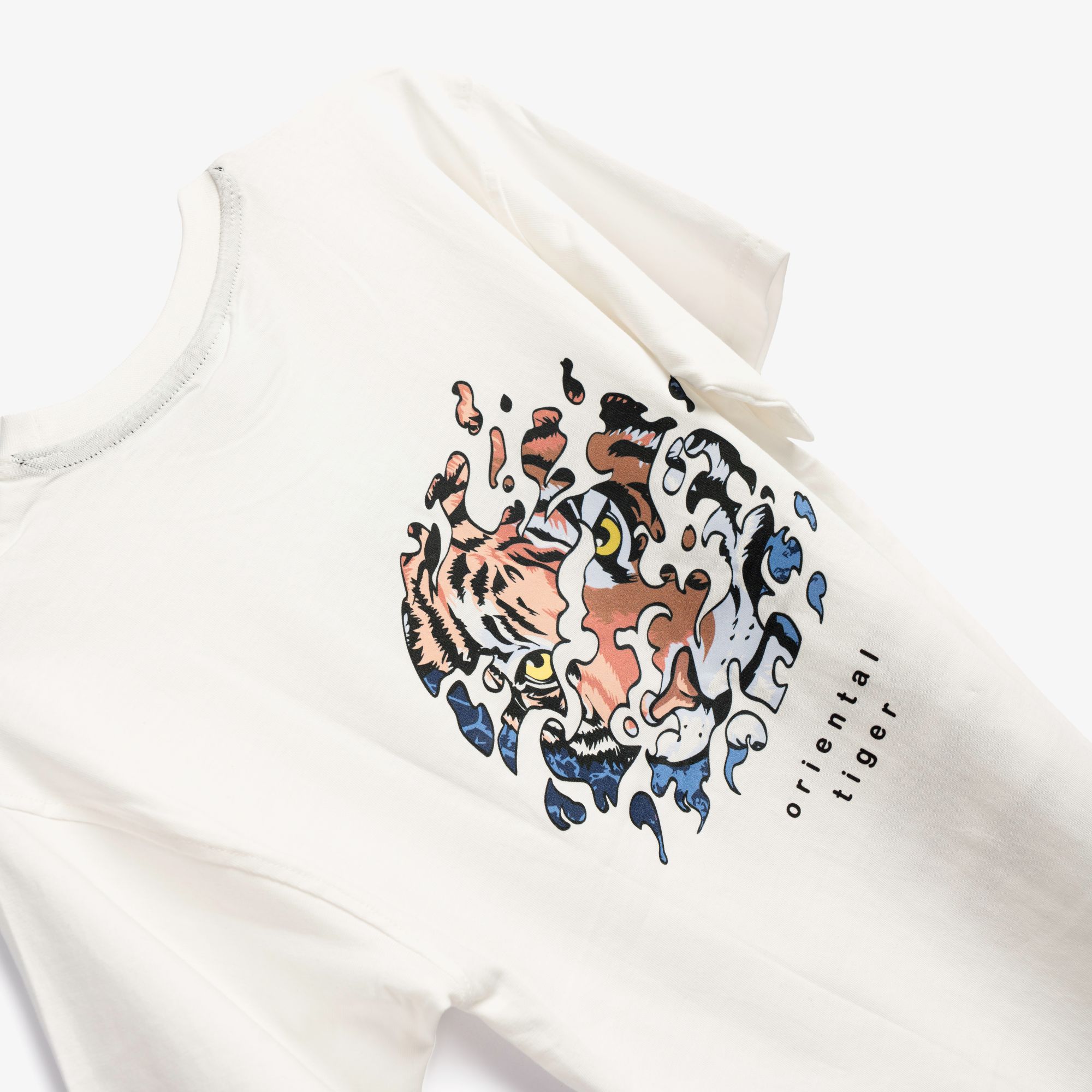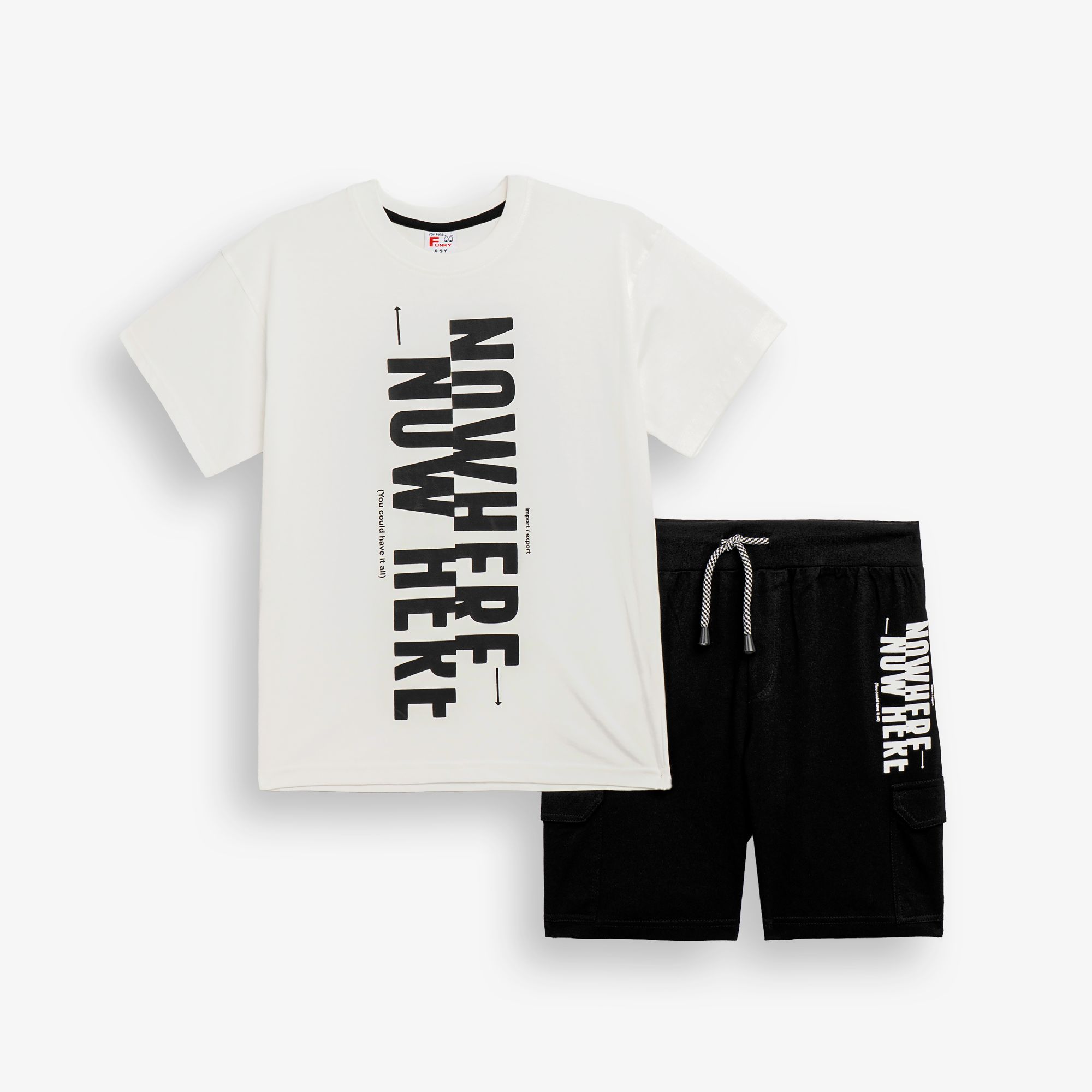 Set T-shirt with printing (nowhere and tiger) and corduroy fleece with printing in color ecru/black with printing for boys 6-16 years