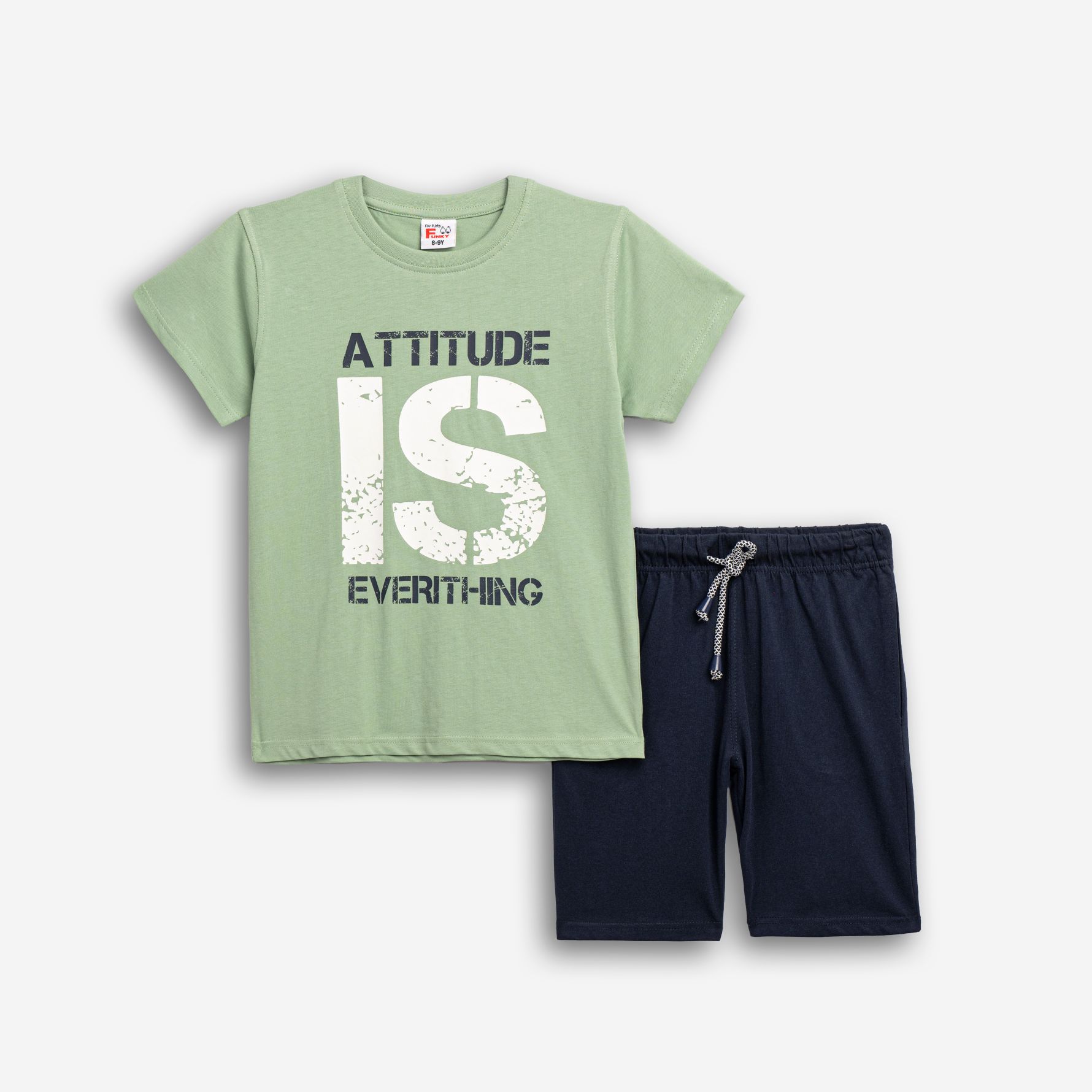 Set T-shirt with printing (attitude) and corduroy fleece in color grass/blue with printing for boys 6-16 years