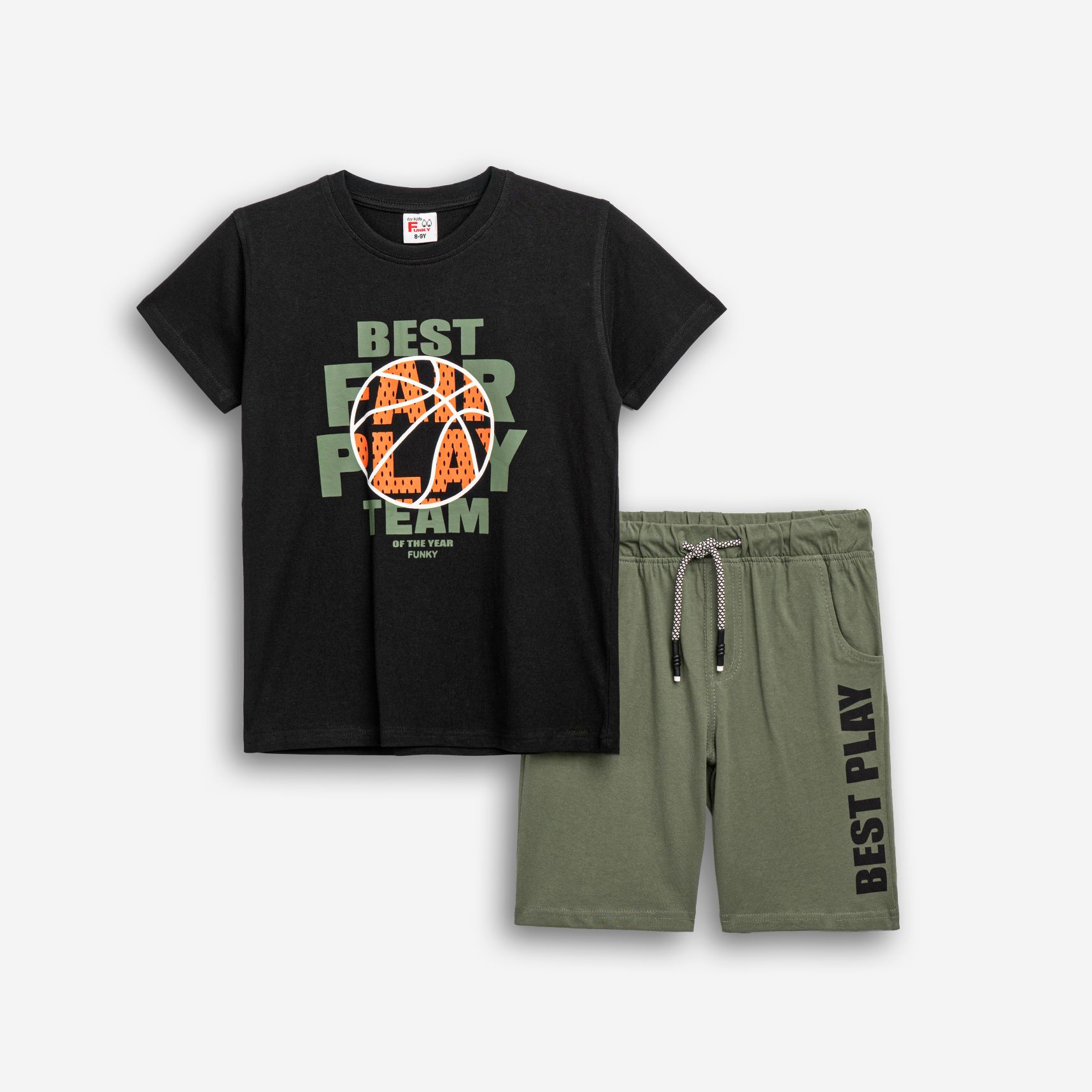 Set T-shirt with printing (best play) and corduroy fleece with printing in color black/khaki with printing for boys 6-16 years