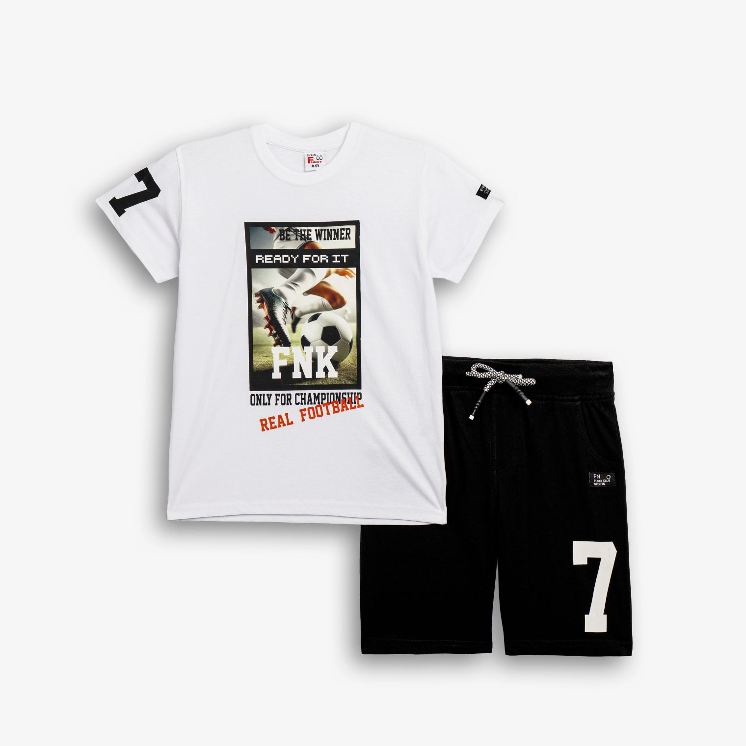 Set T-shirt with printing (real football) and corduroy fleece with printing in color white/black with printing for boys 6-16 years