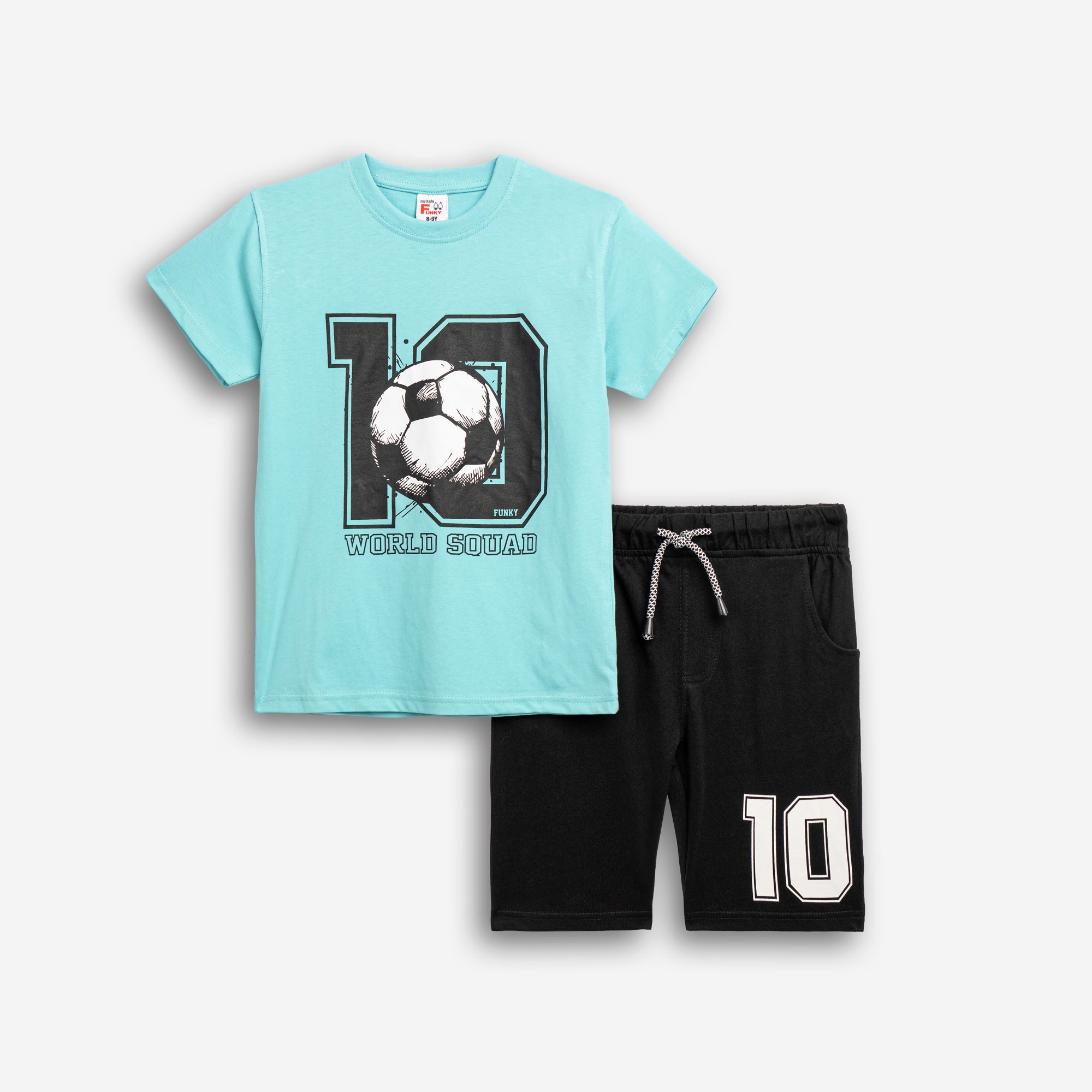 Set T-shirt with printing (world squad 10) and corduroy fleece with printing in color turqoise/black with printing for boys 6-16 years
